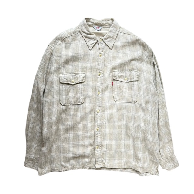 90s Levi’s “Levi Strauss & Co.” Open Collar Heavy Flannel Shirt 【L】