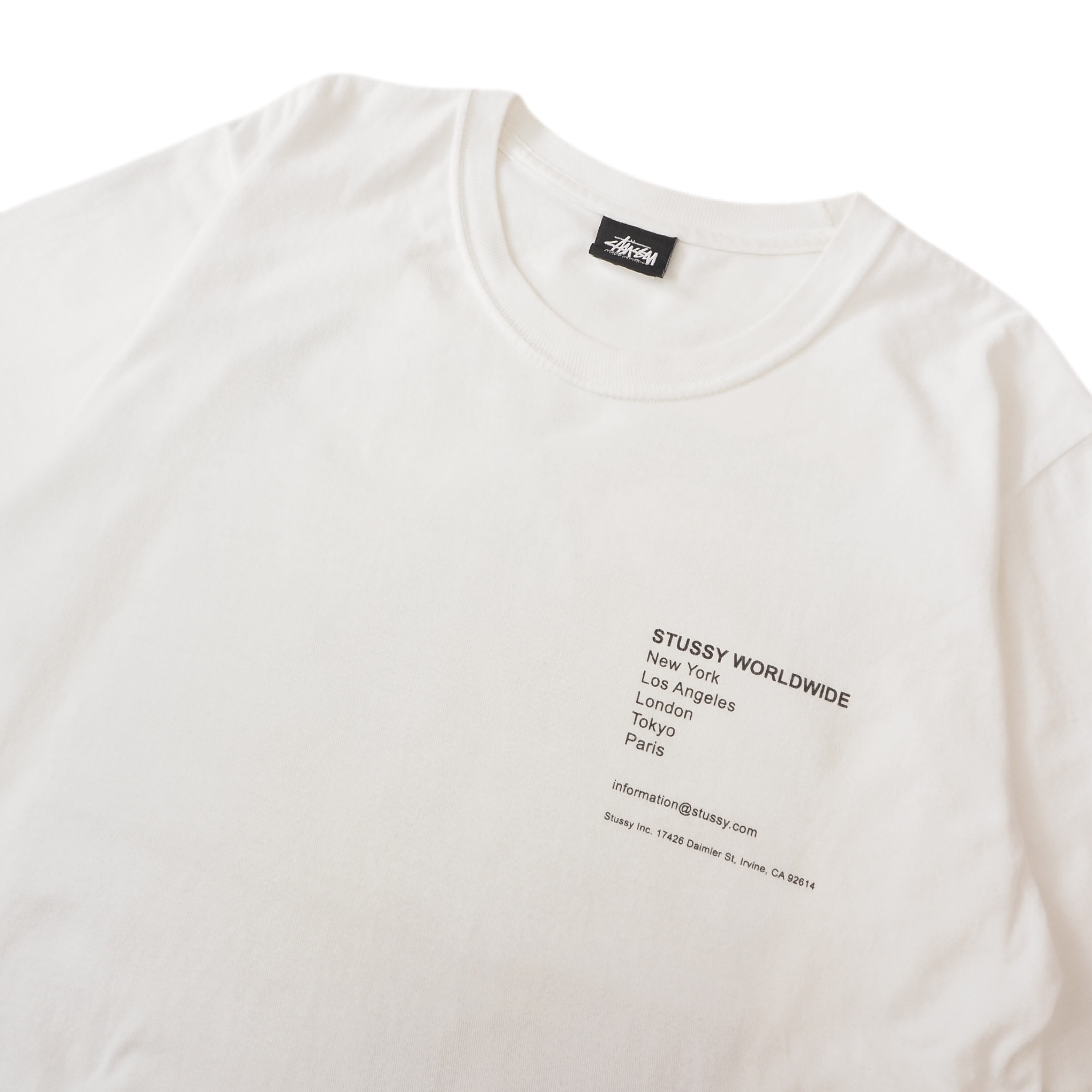 Stussyの”Private Viewing and Gallery Tour” Tシャツ。アートとカルチャーを融合させたデザインが特徴の一着。フロントにはシンプルなStüssyのロゴ、バックにはギャラリーツアーをテーマにした印象的なグラフィックが施されています。ストリートファッションとしてはもちろん、アートやクリエイティブなカルチャーに関心のある方にもおすすめです。