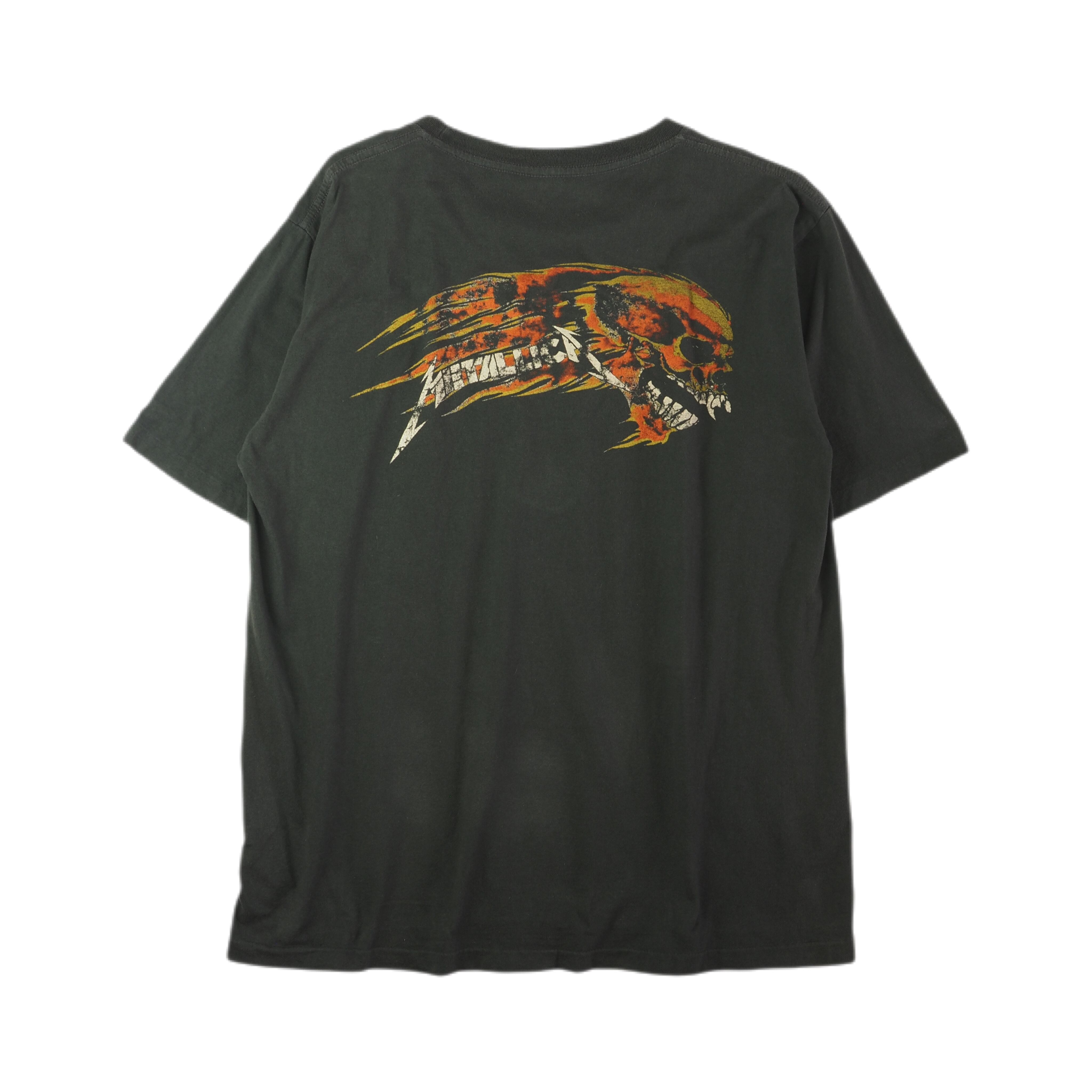 メタリカのバンドTシャツです。フロントとバックのドクロのデザインが特徴的なTシャツ。