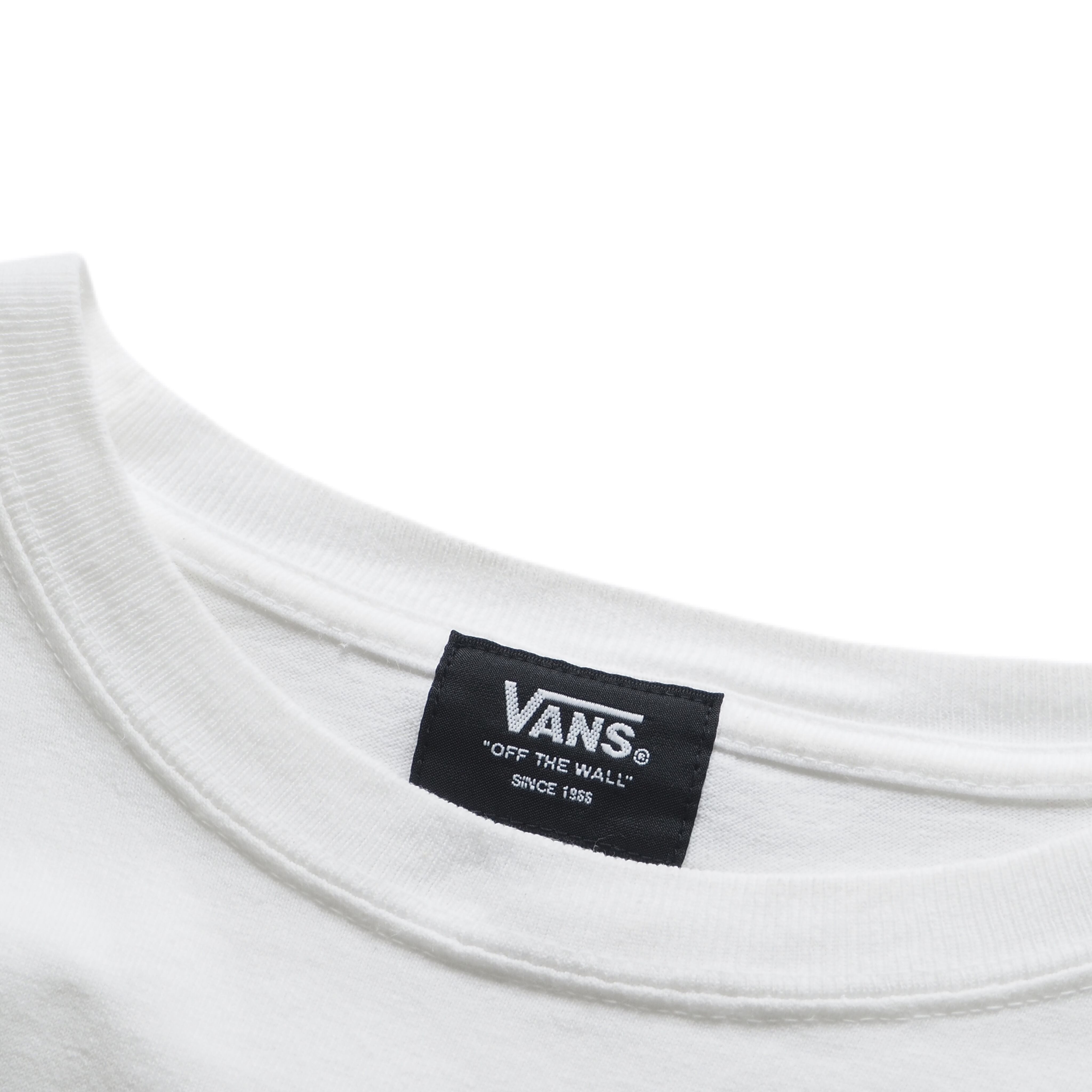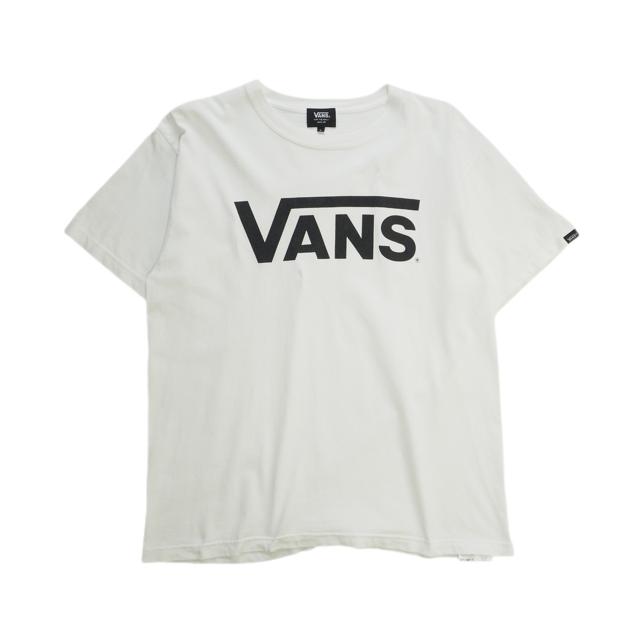 スケートカルチャーを象徴するブランドVANSのアイコニックなロゴが、フロントに大きくプリントされた一枚。