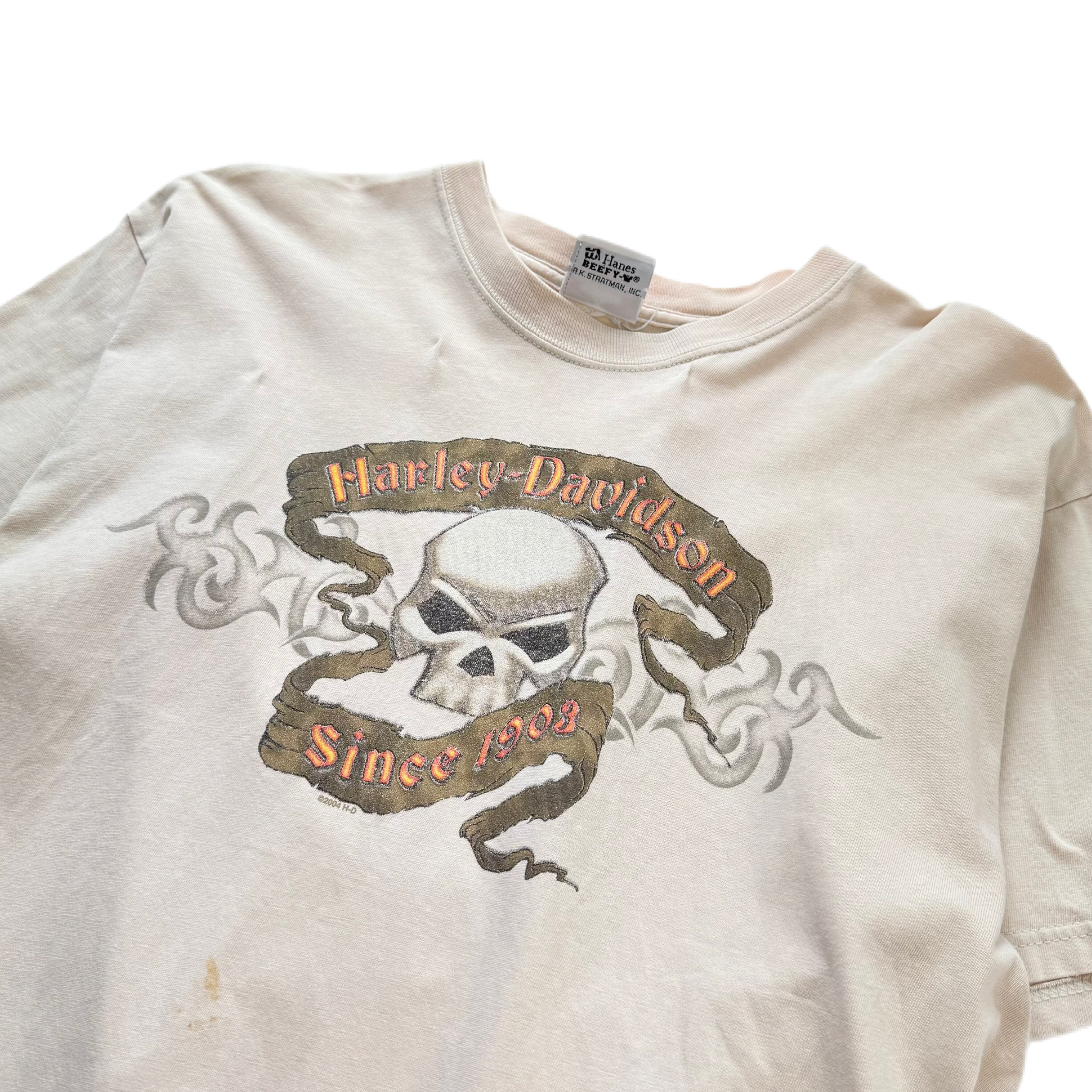 OLD Harley-Davidson “Skull & Smoke” print T-shirt 【L】