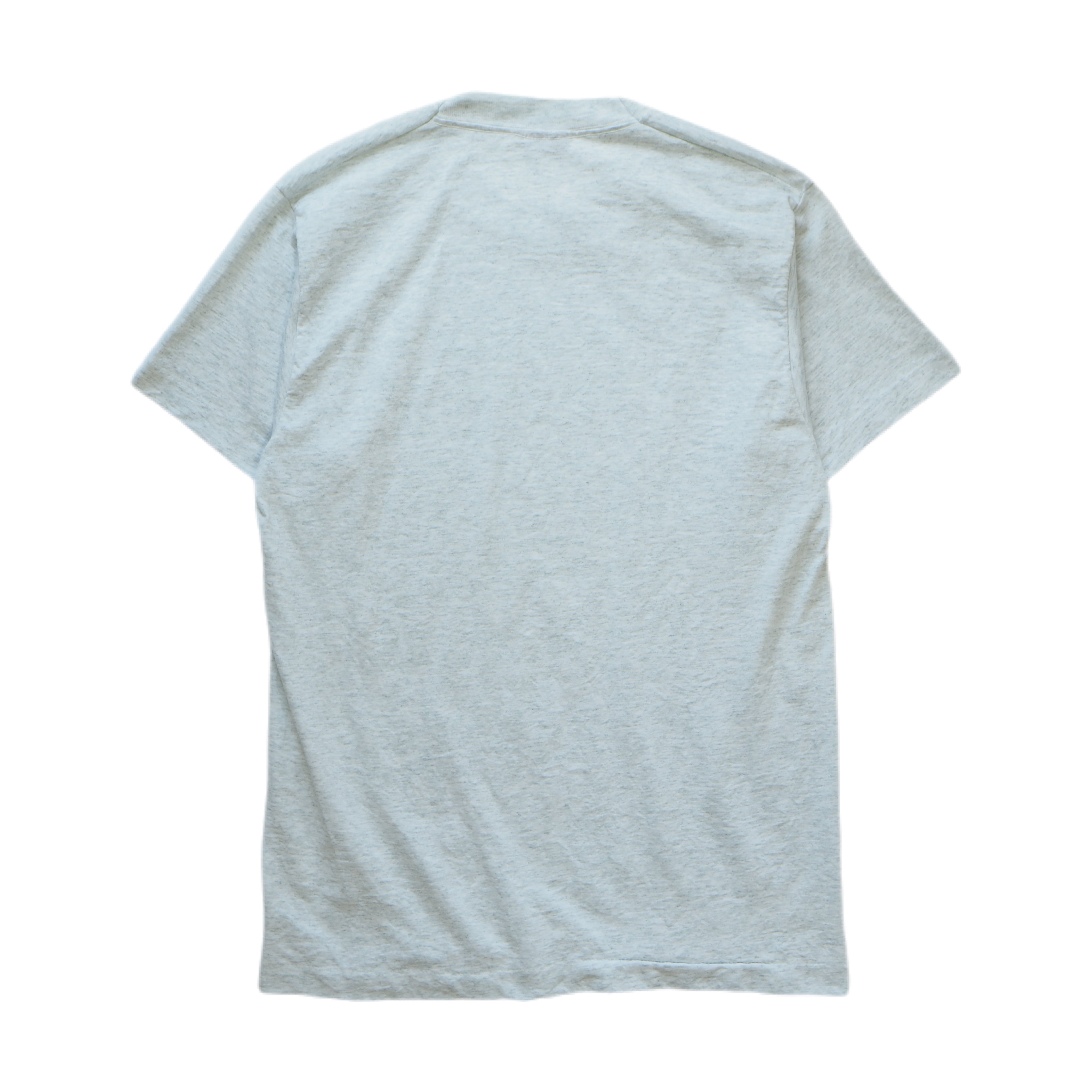 ボディはFRUIT OF THE LOOM / BESTタグのアメリカ製コットンポリ。グレー杢にネオングリーンのプリントが映え、90sらしいゆるさとローカル感が絶妙にマッチしています。