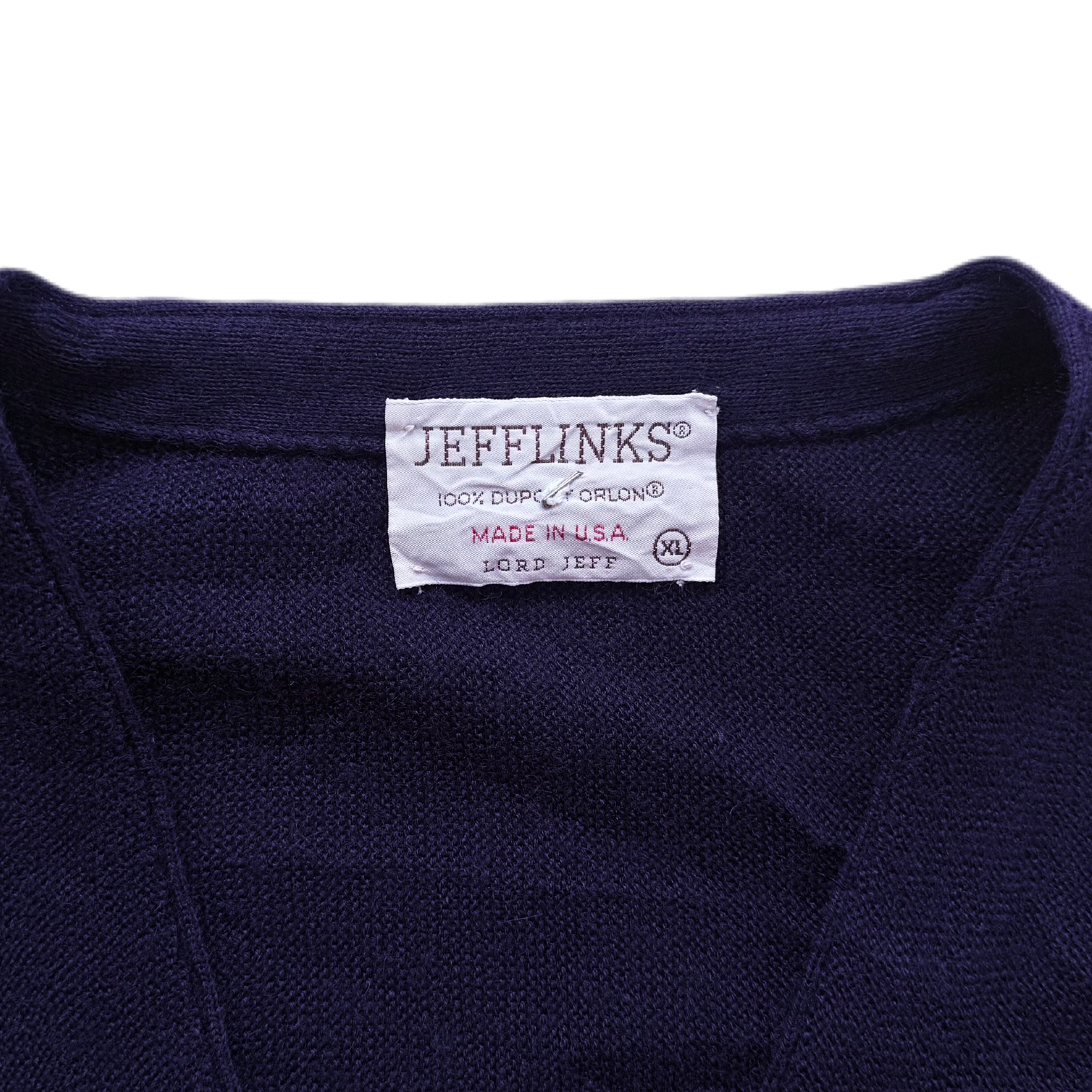 70s~80s JEFFLINKS by LORD JEFF Acrylic Knit Cardigan Navy 【XL】