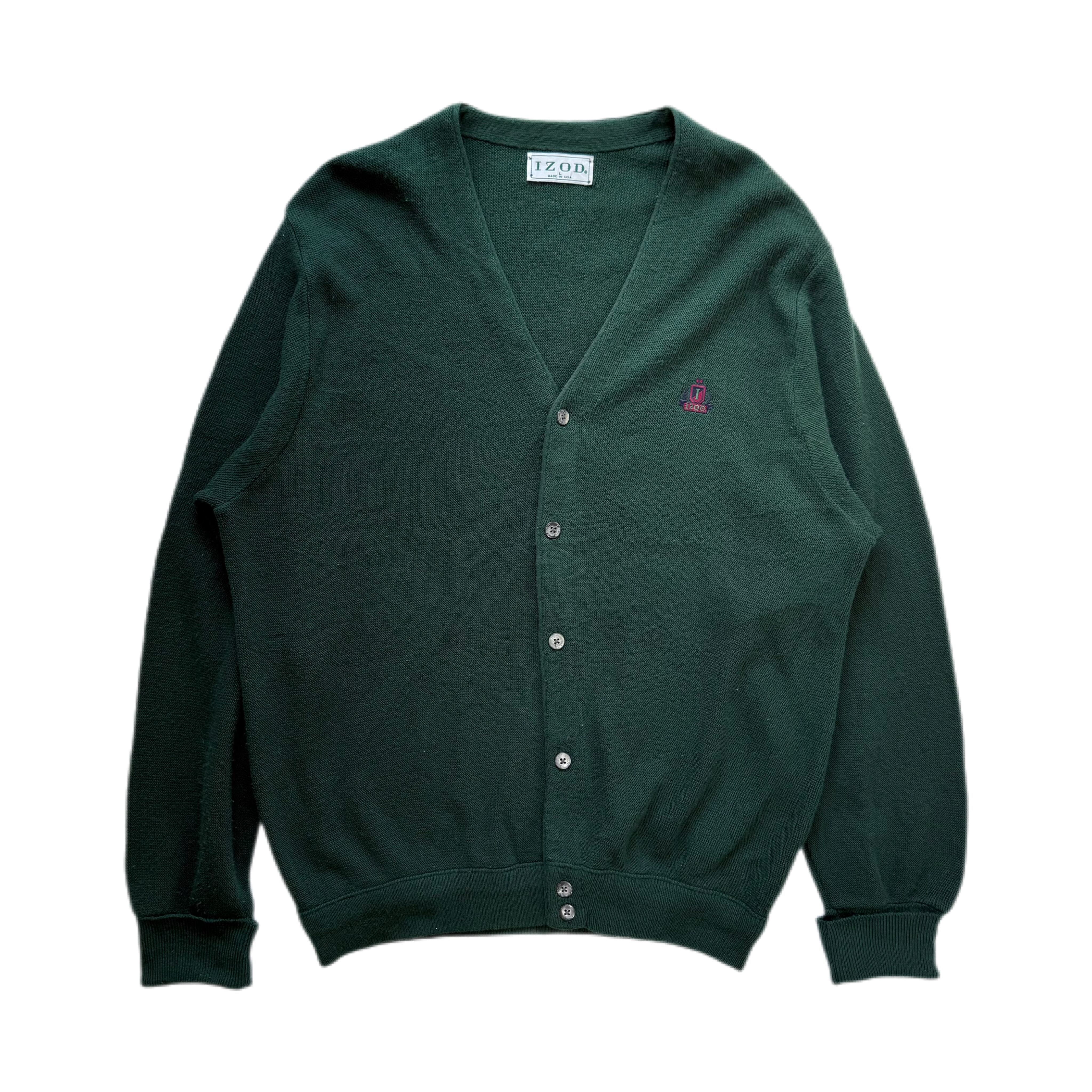 80s IZOD Acrylic Knit Cardigan Green 【L】