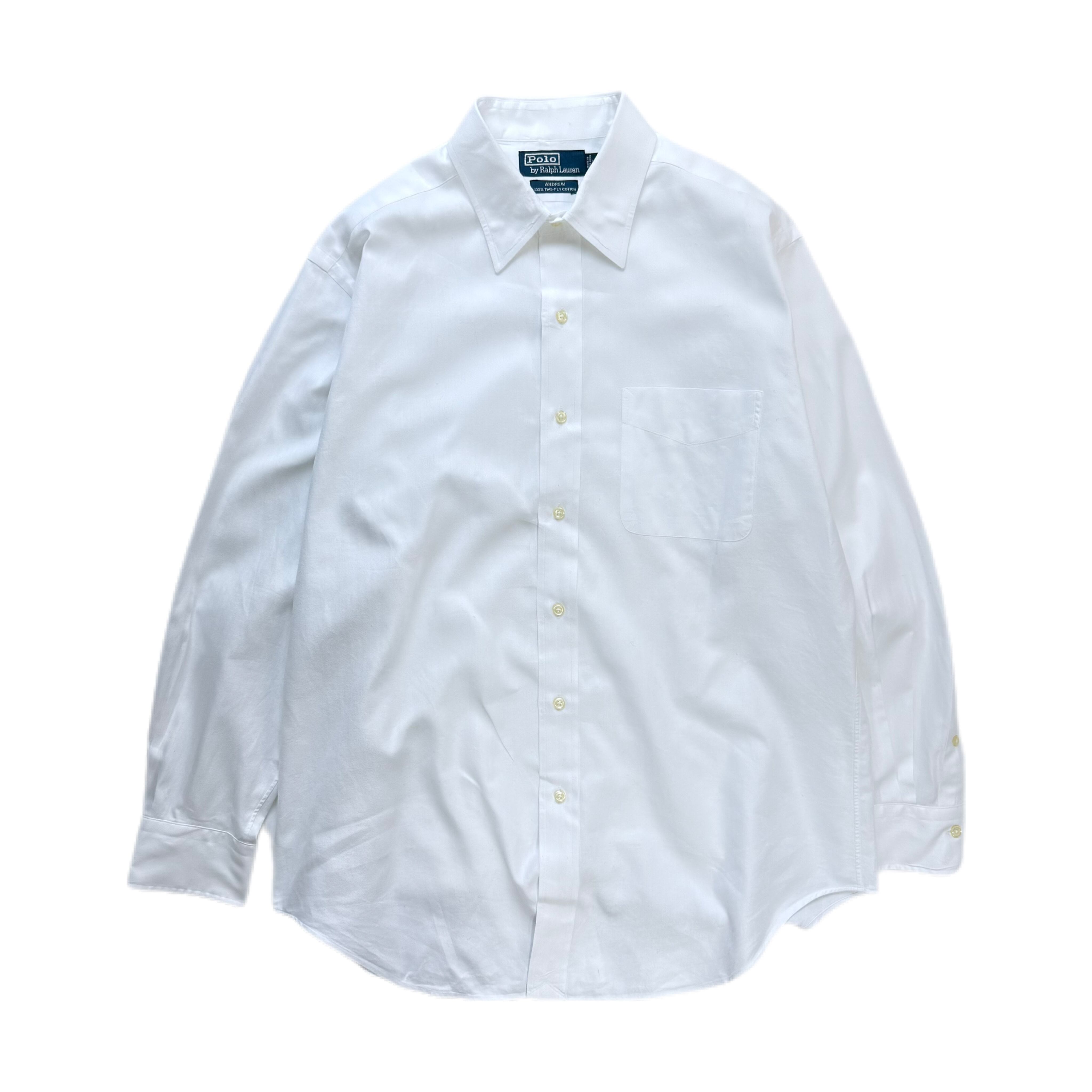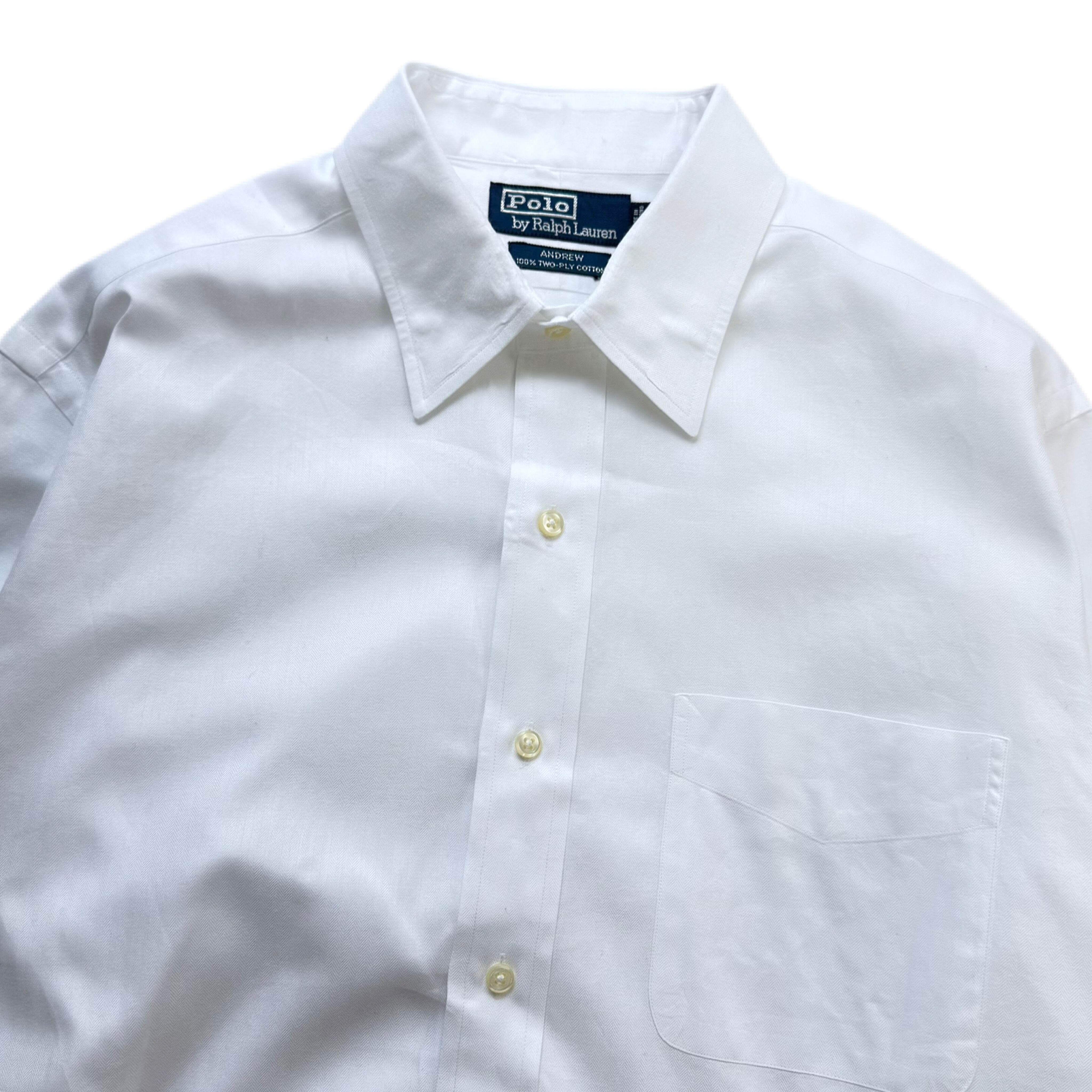 Polo by Ralph Lauren のホワイトドレスシャツ。モデル名「ANDREW」で、程よいゆとりのあるレギュラーフィットが特徴です。