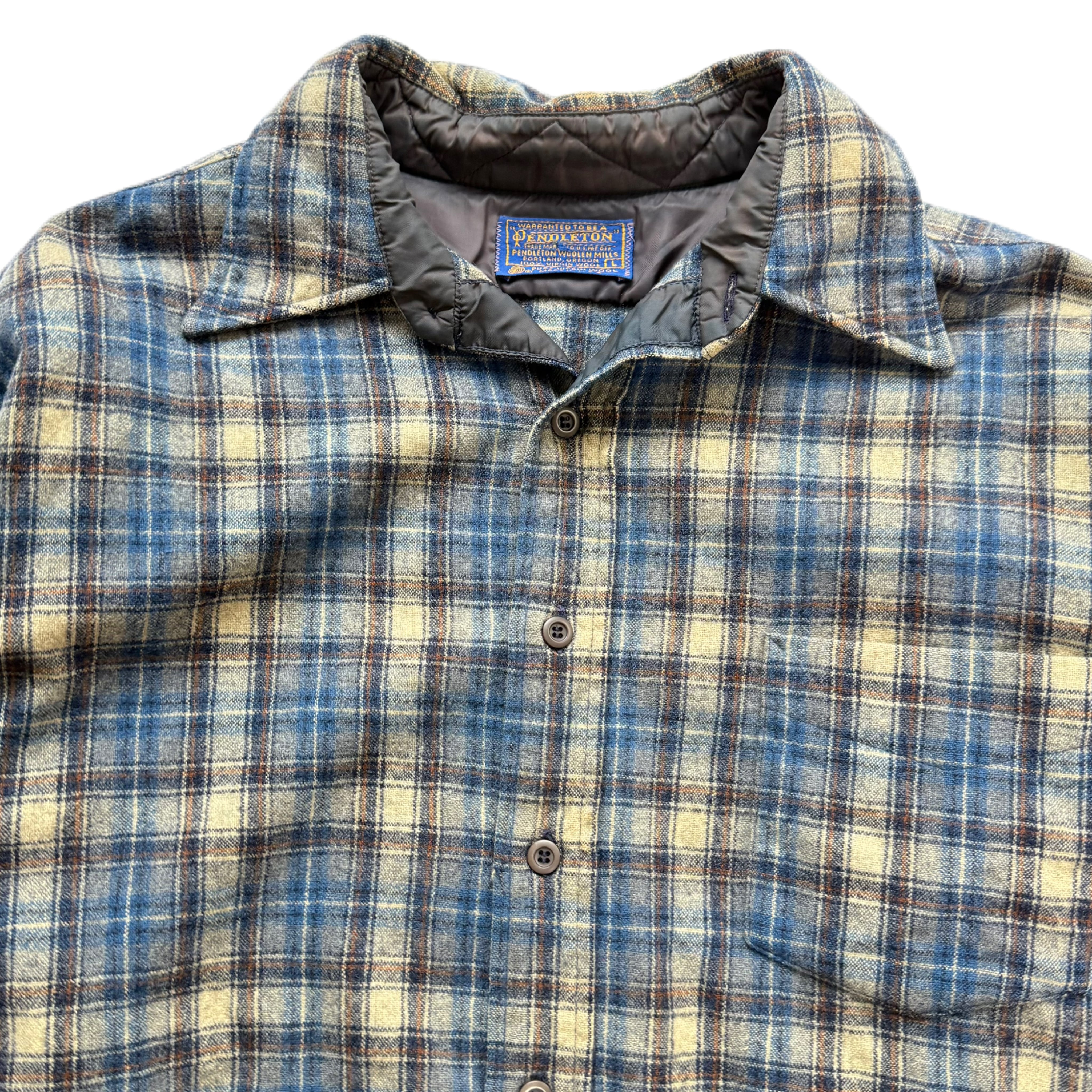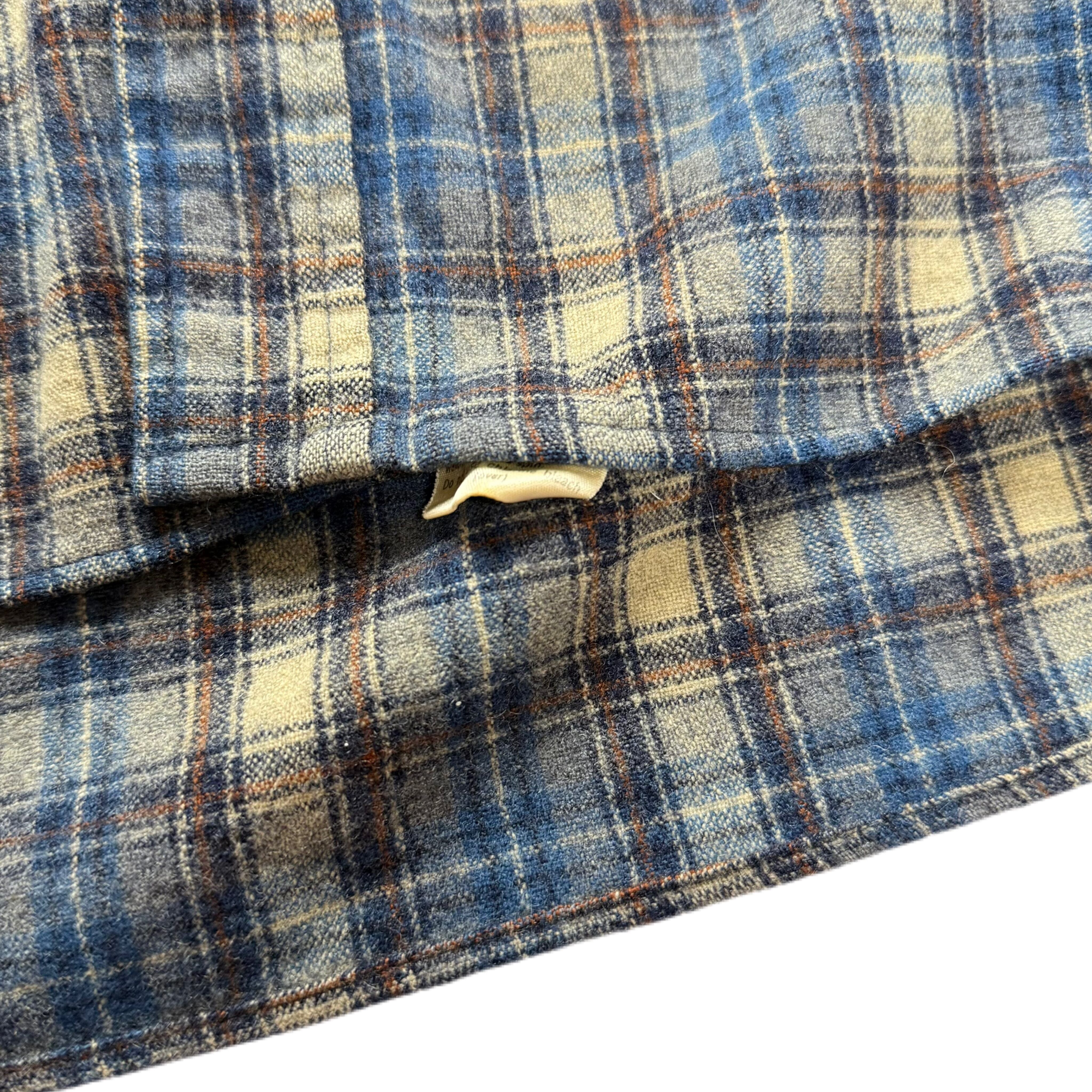 ブルーを基調に、イエローやブラウンを織り交ぜた落ち着いたトーンのチェック柄。