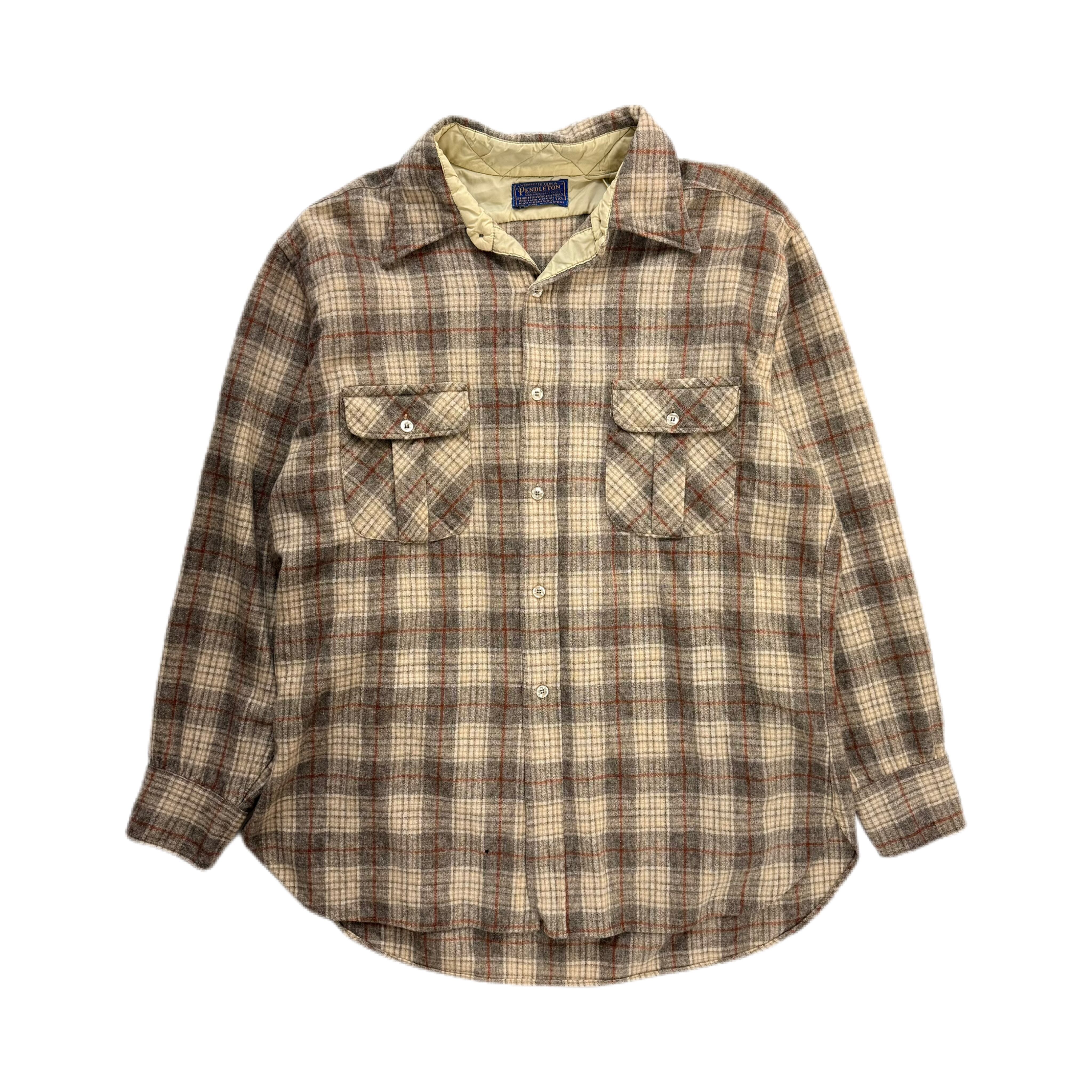 ベージュを基調にブラウンやオレンジを織り交ぜた落ち着いたチェック柄。