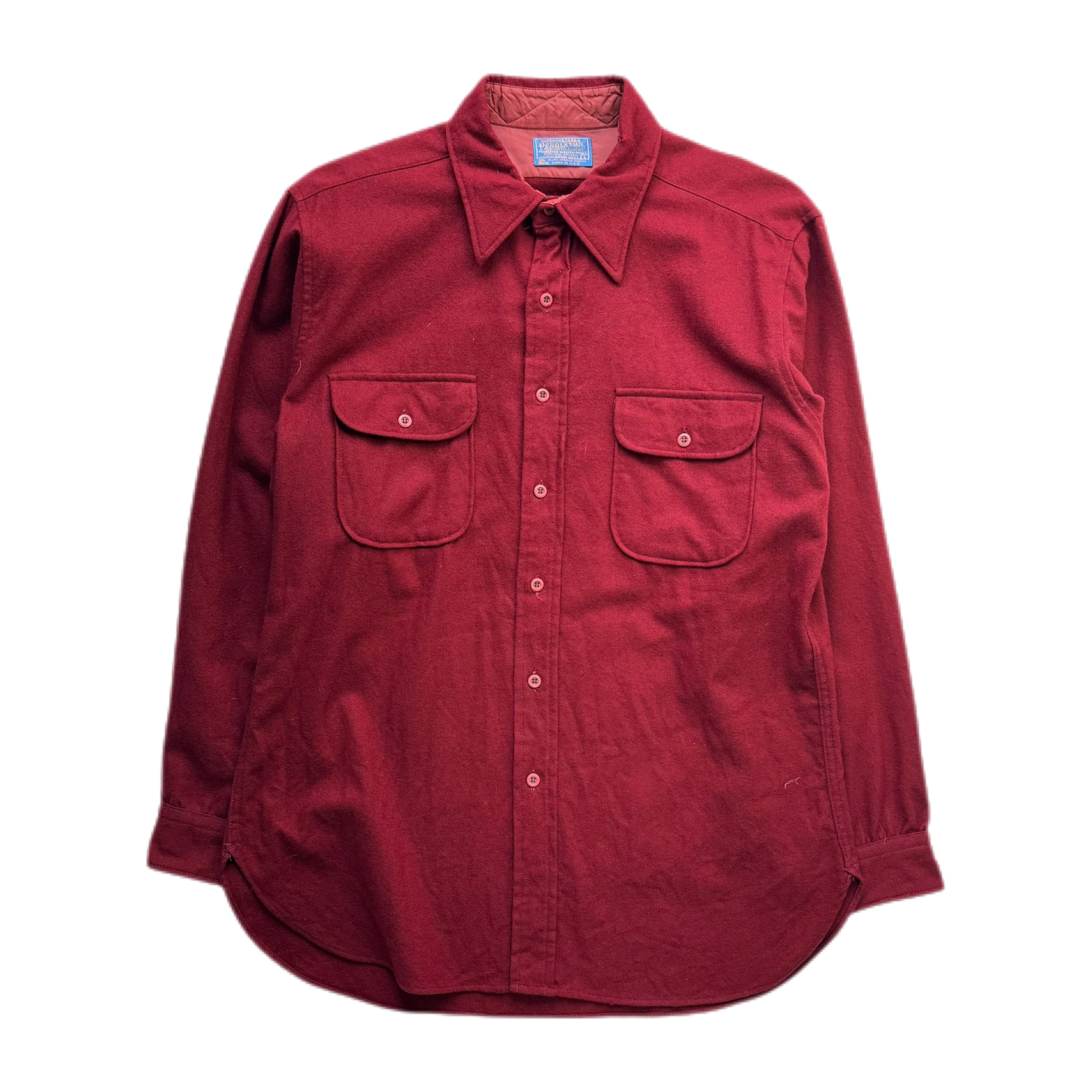 深みのあるエンジの無地デザインが映える一着。ペンドルトンでは珍しい単色です。