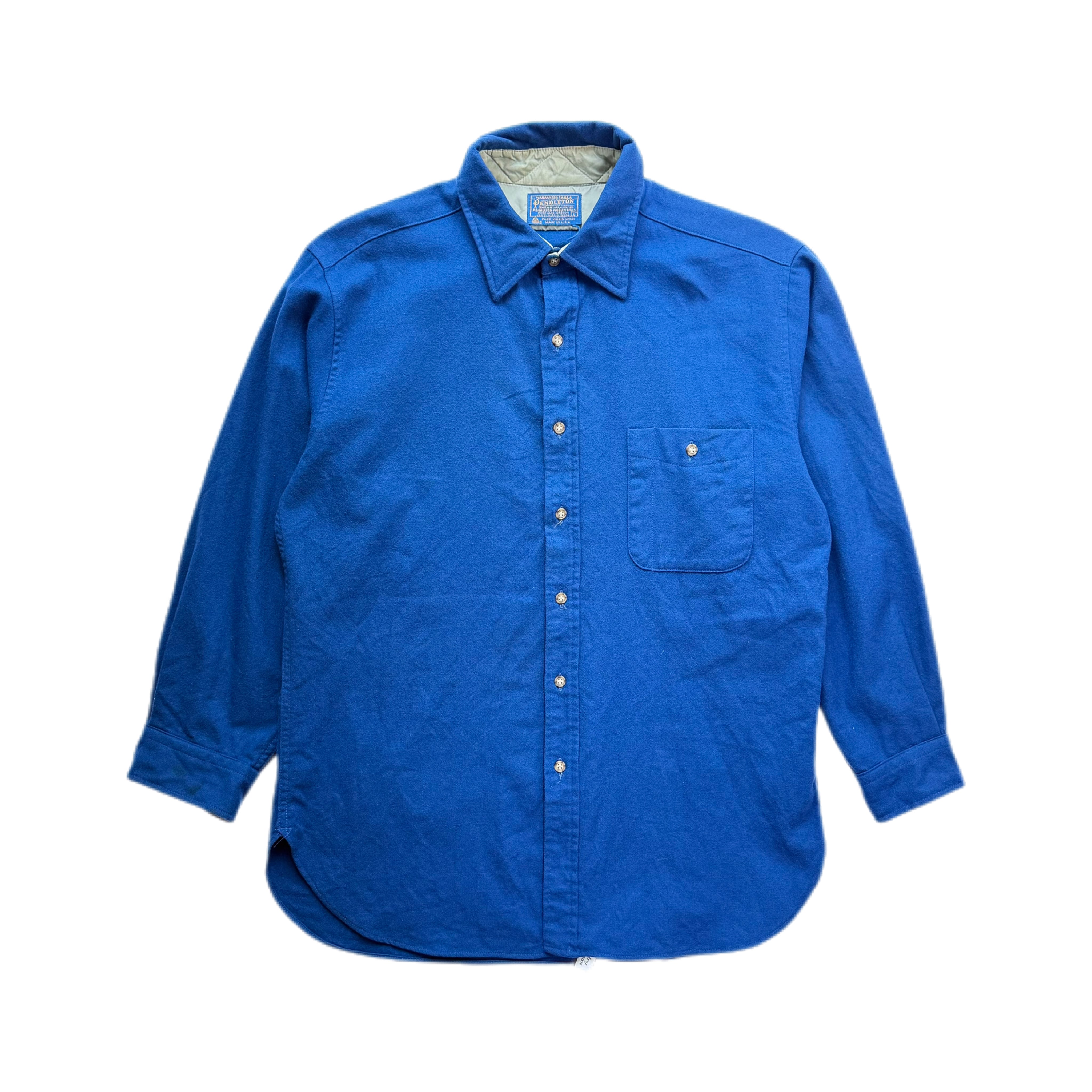 鮮やかなブルーの無地デザインが目を惹く一着。柄物の多いPENDLETONの中では珍しい無地タイプです。