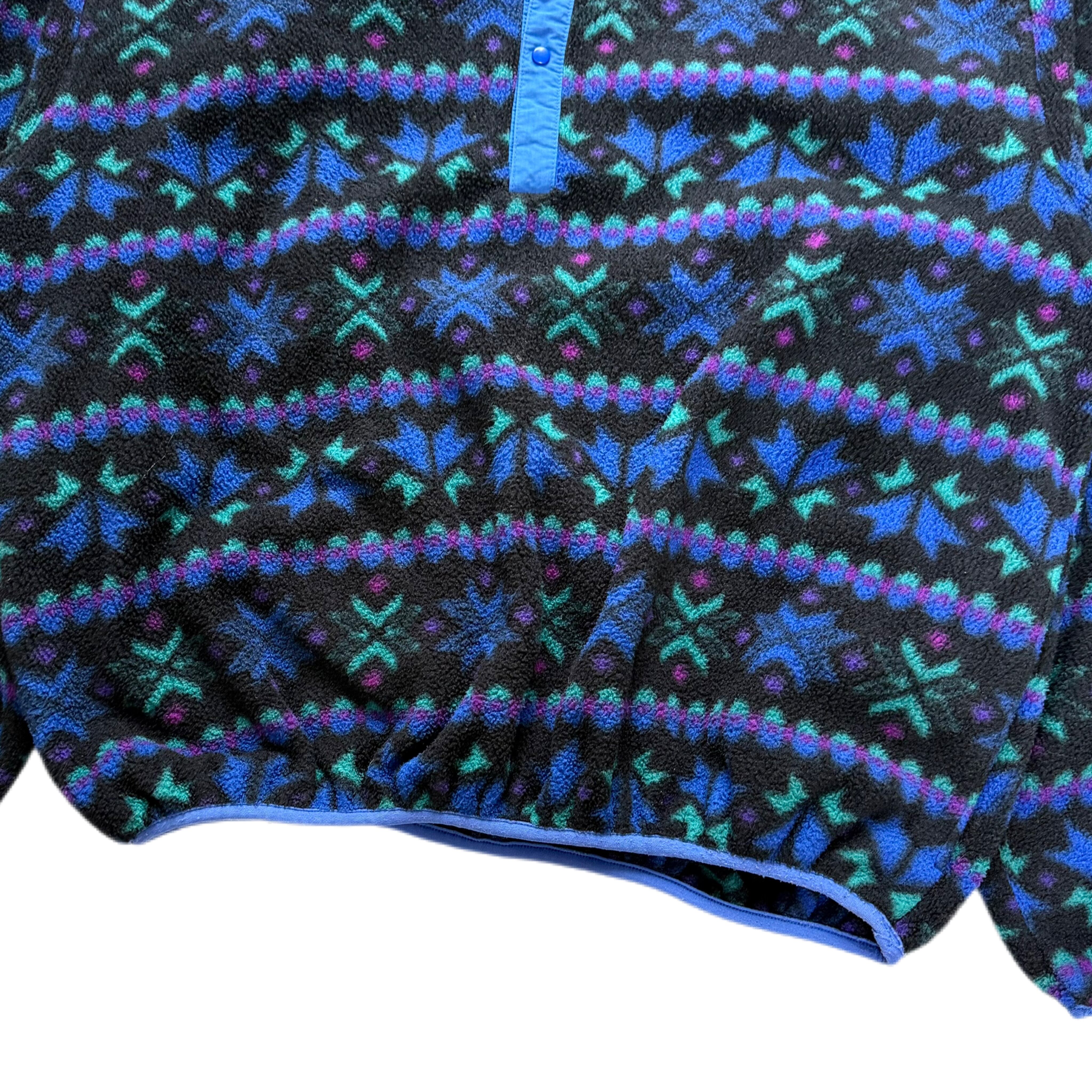 80s L.L.Bean Geometric Pattern Fleece Snap Pullover 【L】