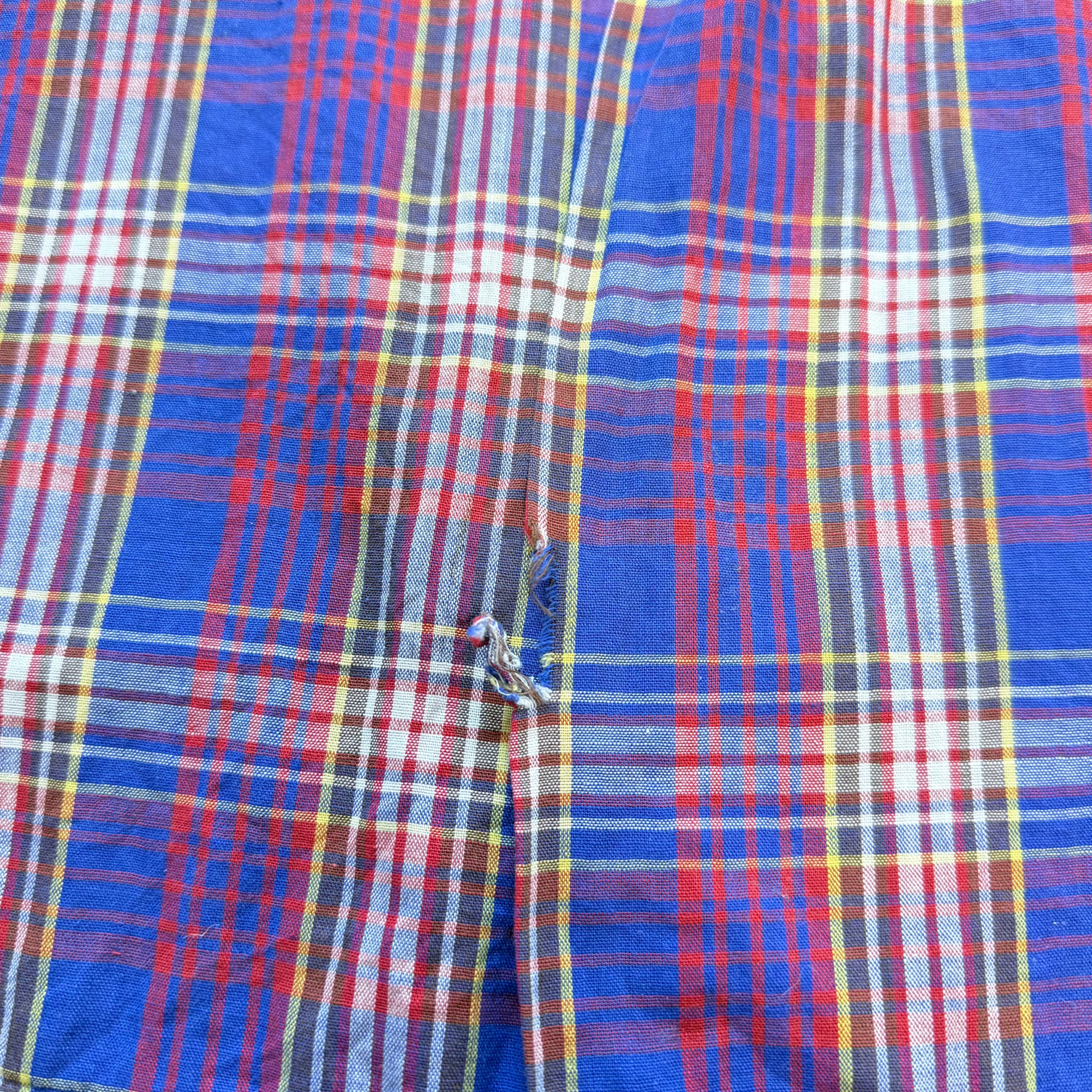 鮮やかなブルー×レッド×イエローのマドラスチェックが目を惹く一着。