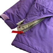 パープル×赤の人気の配色で、胸ポケットの縦ジップやハンドウォーマーポケットなど、実用性の高いディテールも魅力です。