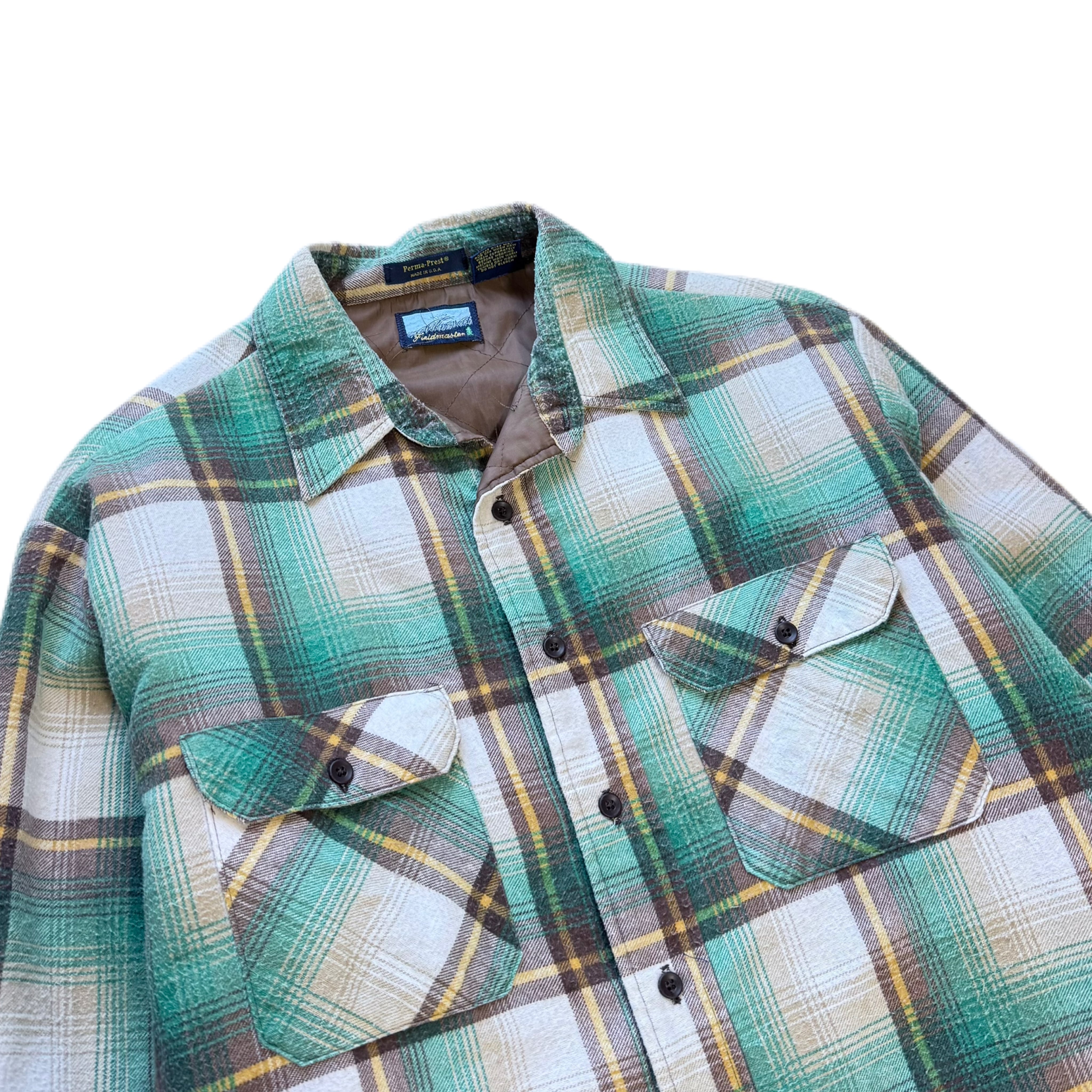 1980年代頃の Sears(シアーズ) のアウトドアライン Fieldmaster(フィールドマスター) より、オンブレチェックのキルティングフランネルシャツ。