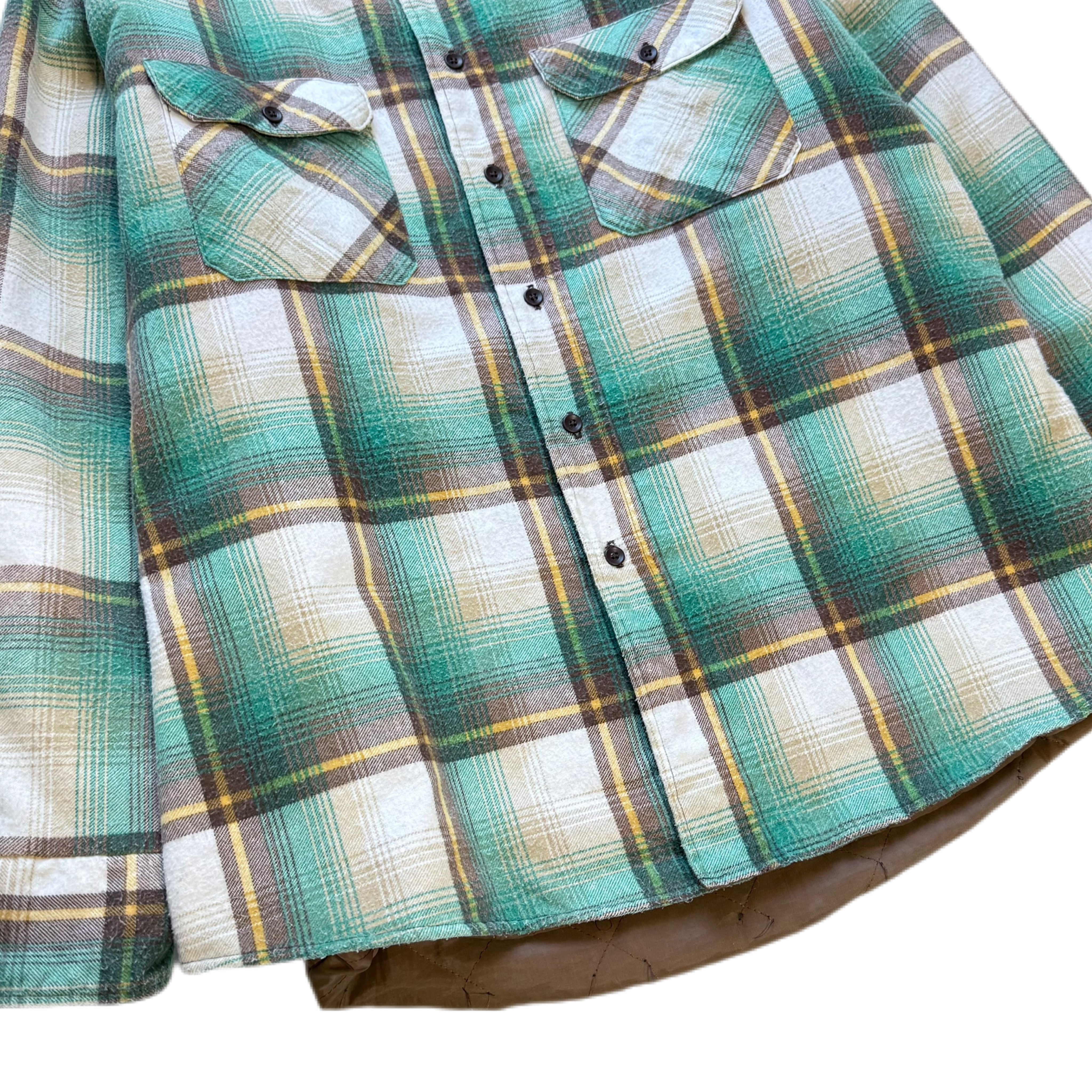 80s Sears Fieldmaster Ombre Check Quilted Flannel shirt 【XL】