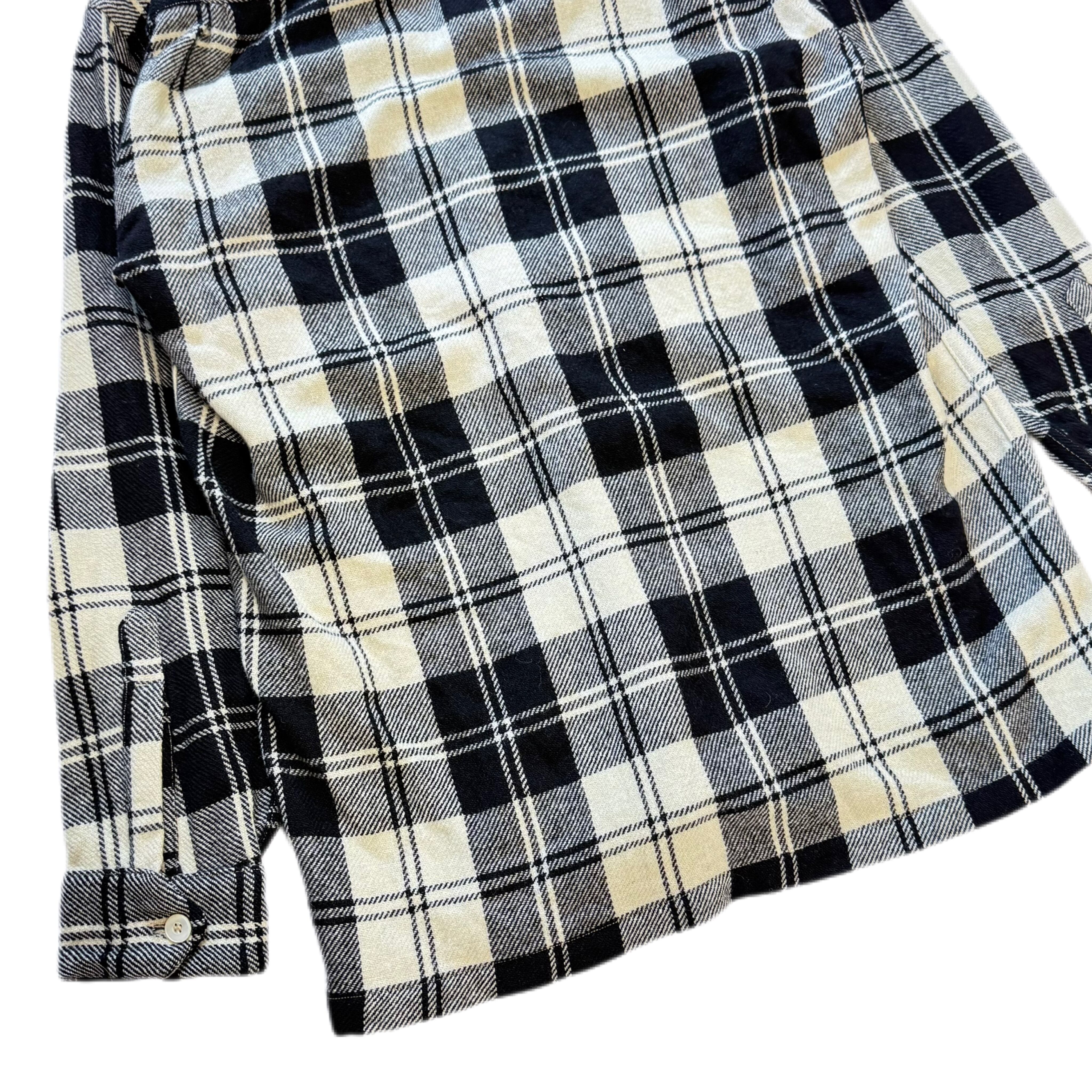 ブラック×アイボリーのモノトーンチェックが上品で、無骨ながらも落ち着いた雰囲気を漂わせます。