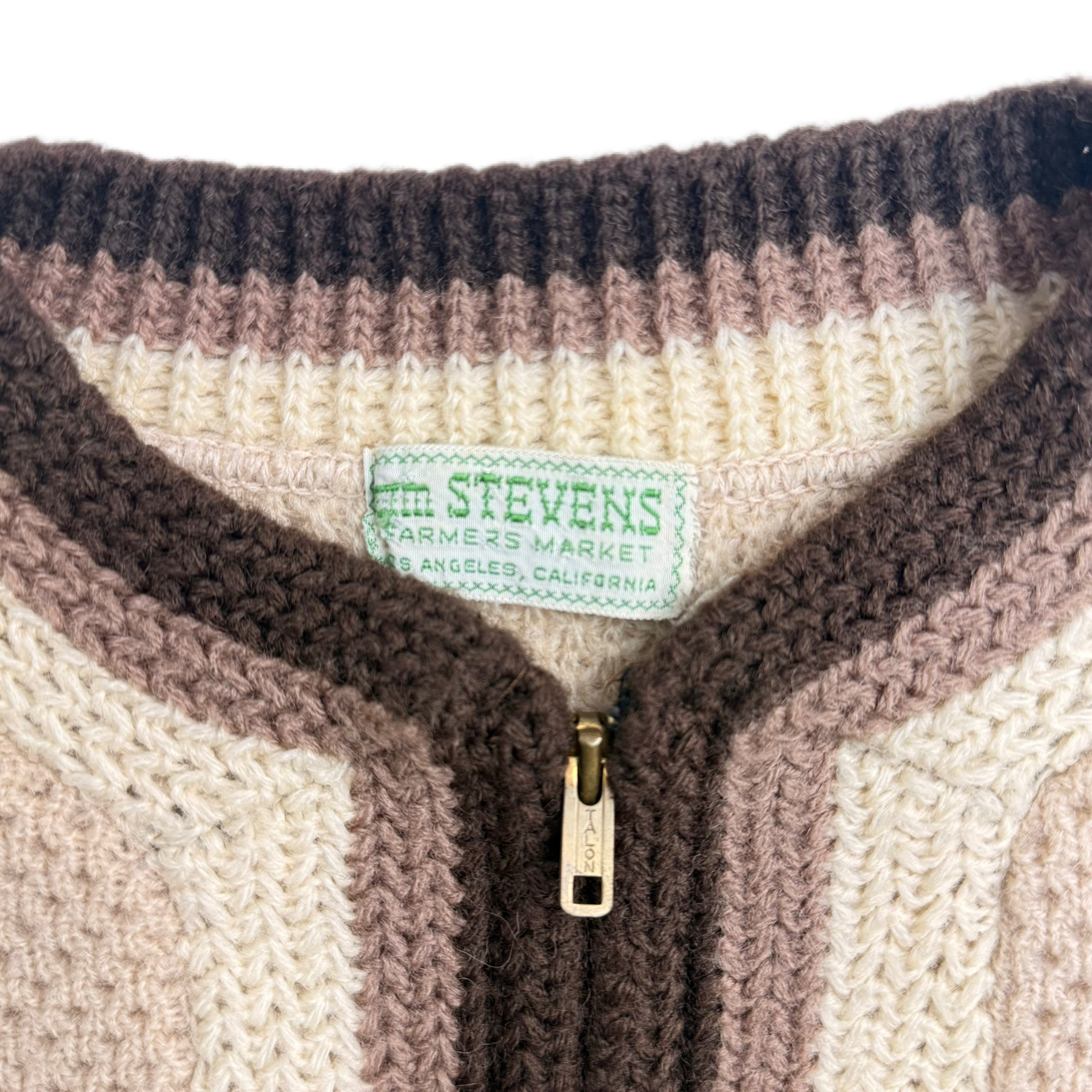 60s STEVENS Los Angeles Zip-up Knit Cardigan 【M】