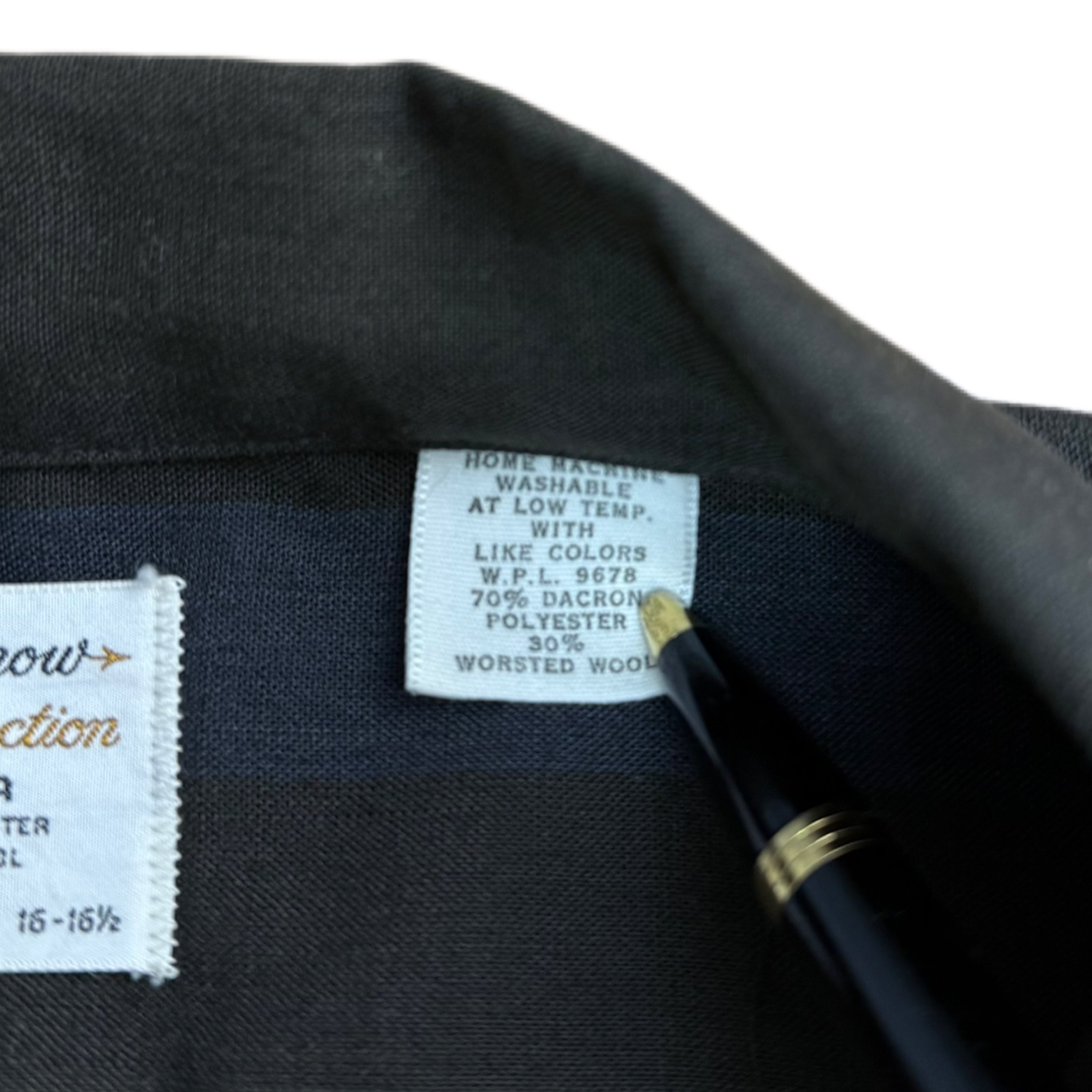 70% Dacron Polyester / 30% Worsted Wool という配合で、ウールの表情を残しながら、扱いやすさも考慮された当時らしい素材構成。