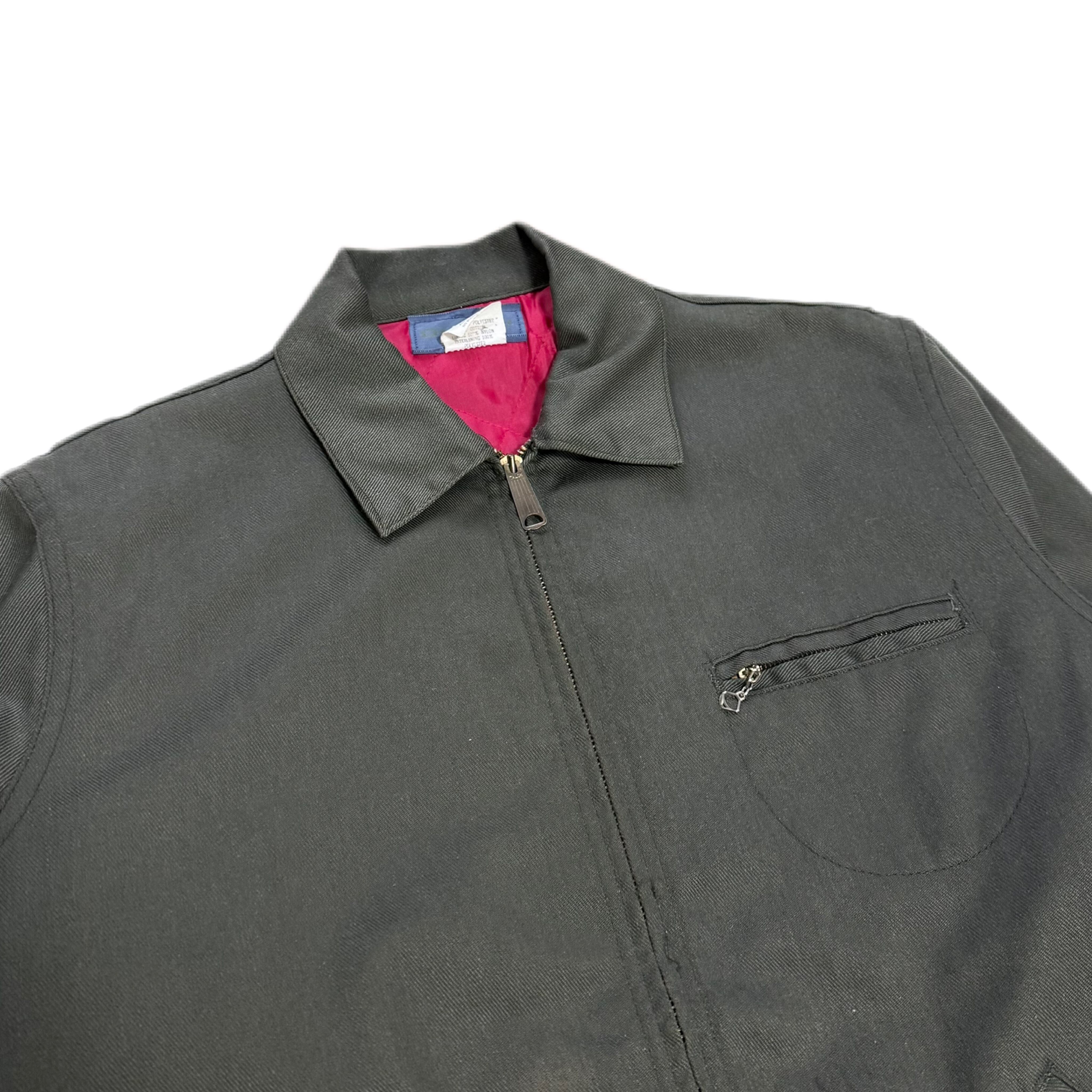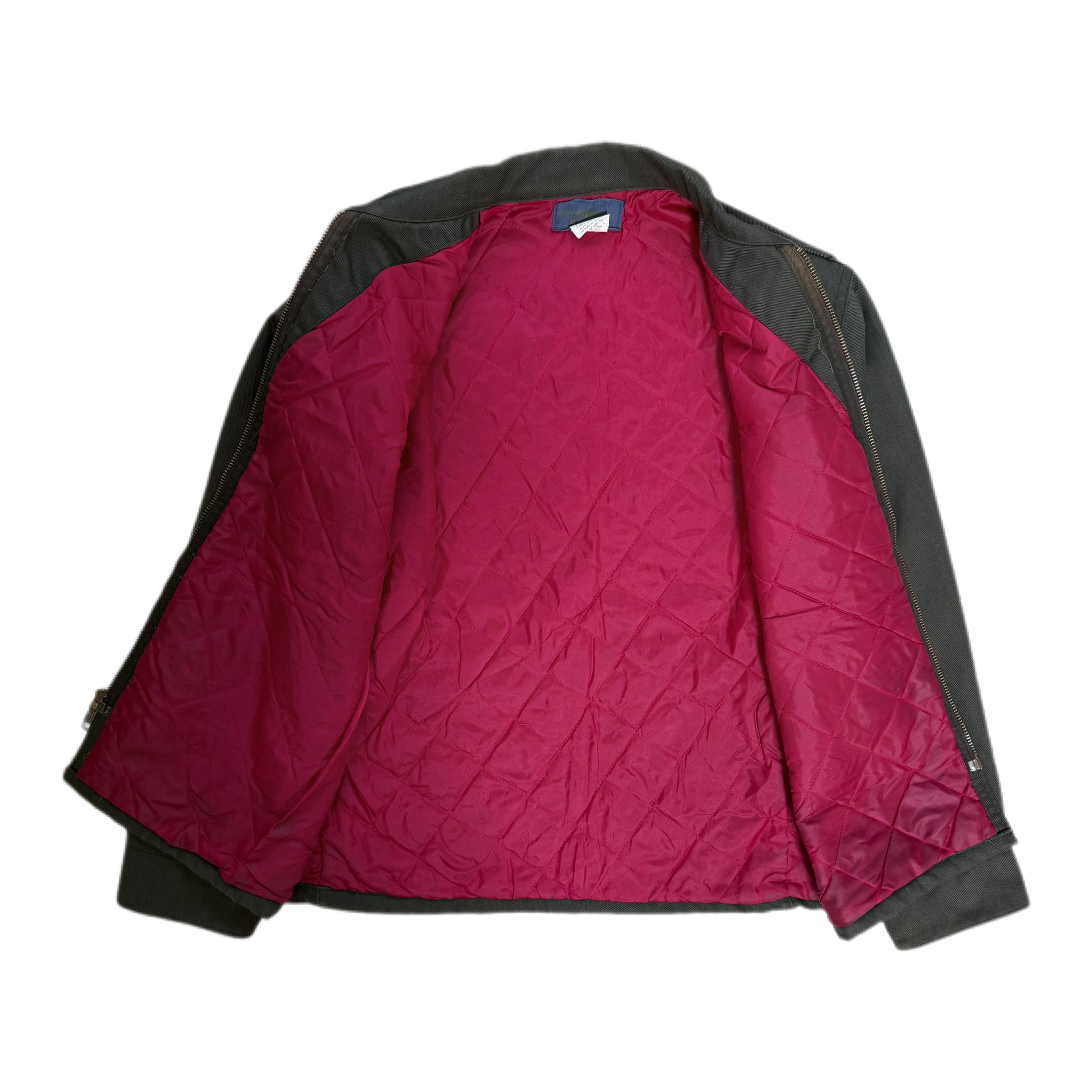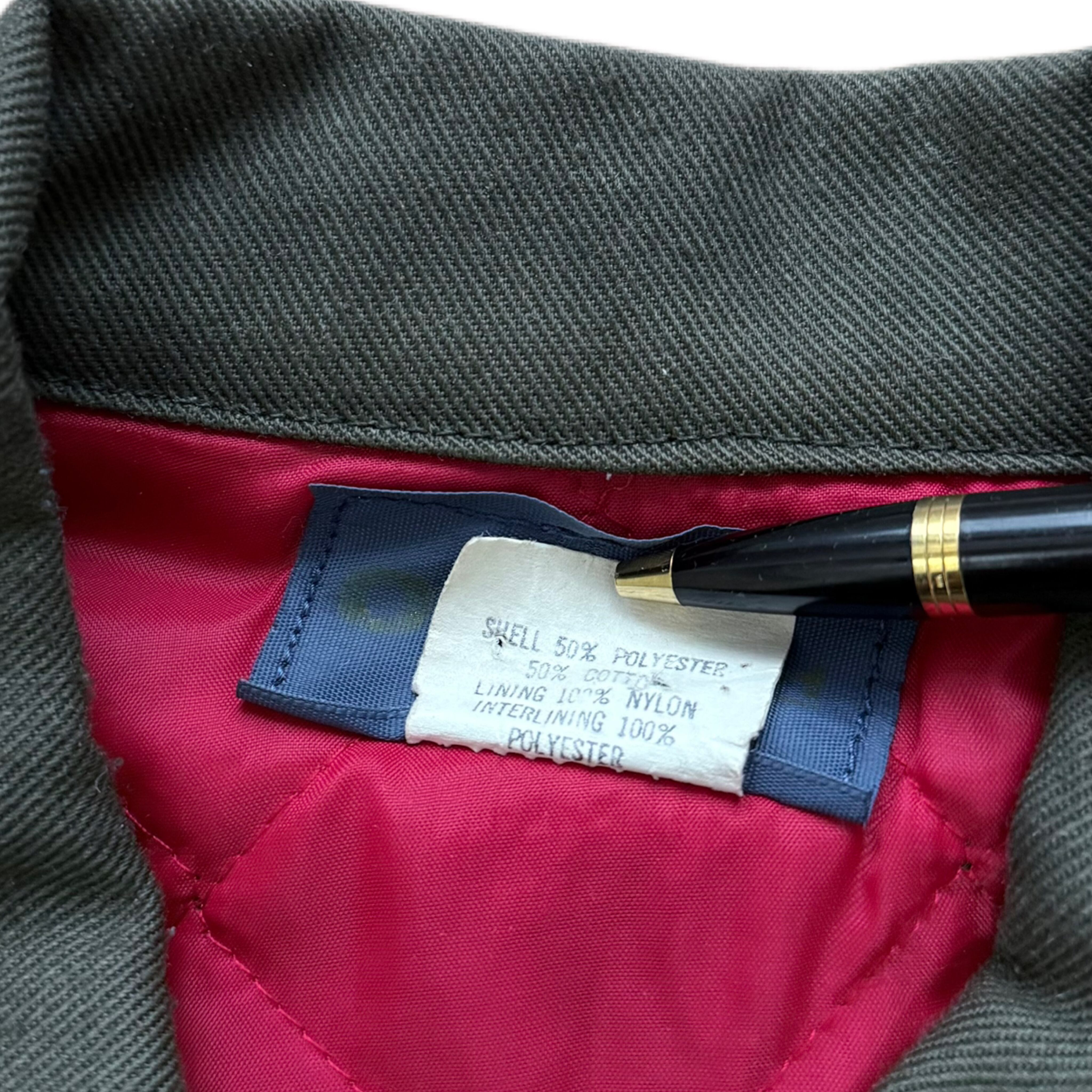 アメリカを代表するワークブランド、OSHKOSH B’GOSHによる70sワークジャケット。ポリ×コットンのタフなツイルに、発色の良いレッドのキルティングライナーという、当時ならではの配色&素材感。フロントは棒TALON、胸にはチェーン引き手付きジップポケット、ハンドポケットはやや斜め付き。60s〜70sのハンティング/ショップコートのディテールを踏襲した、実用寄りの設計が魅力です。