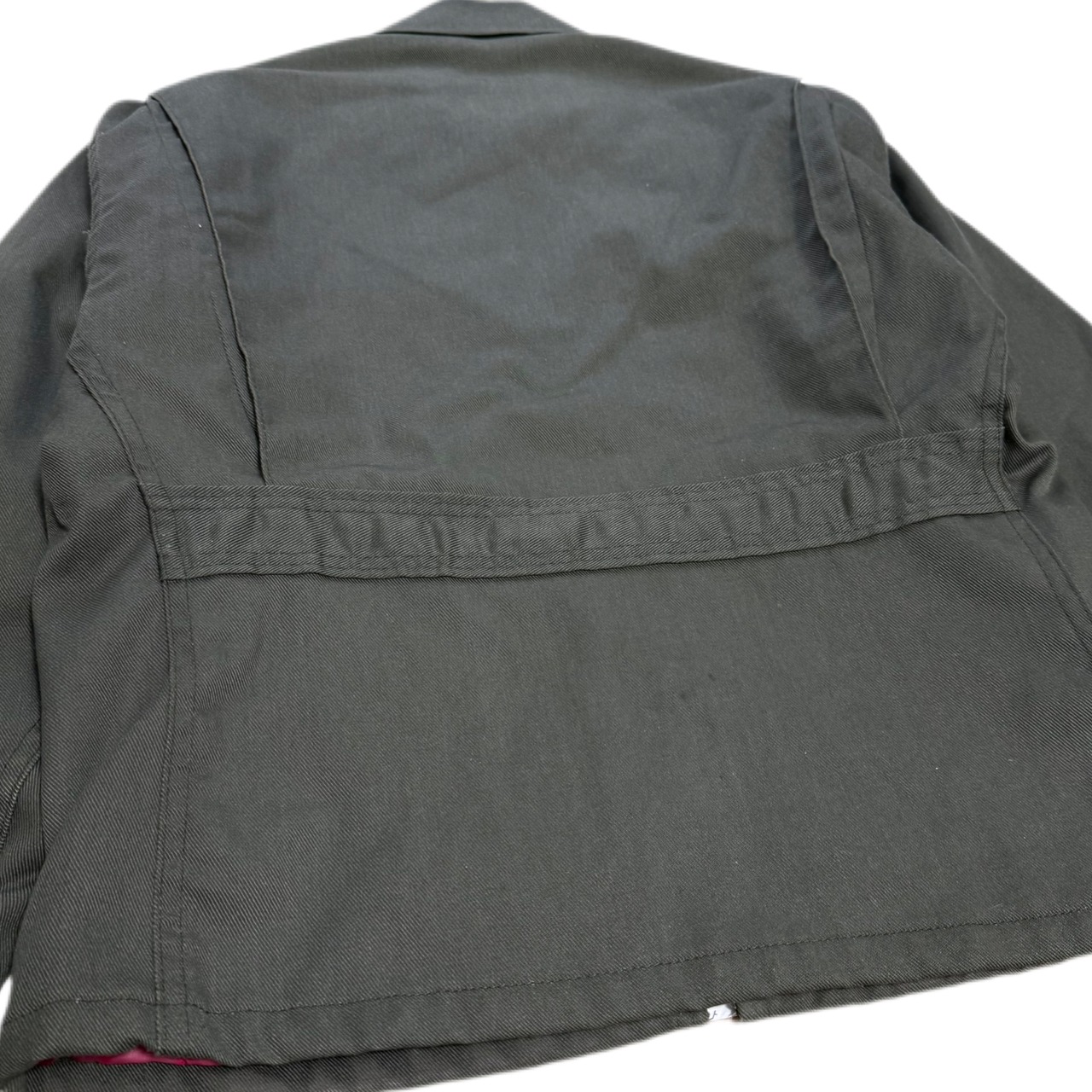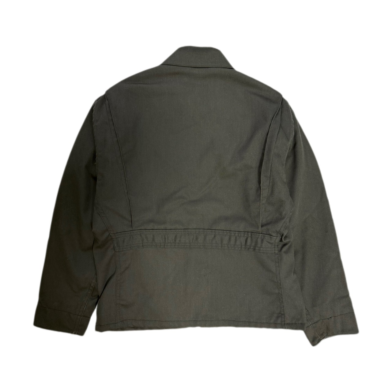 背面は帯状の切り替えで、ショート丈でもシルエットに立体感が出る構造。ワークらしい無骨さがありつつ、野暮ったくなりすぎないバランス感。スウェットやネルの上からラフに羽織るだけで雰囲気が出る、いかにもUSワークな一枚です。