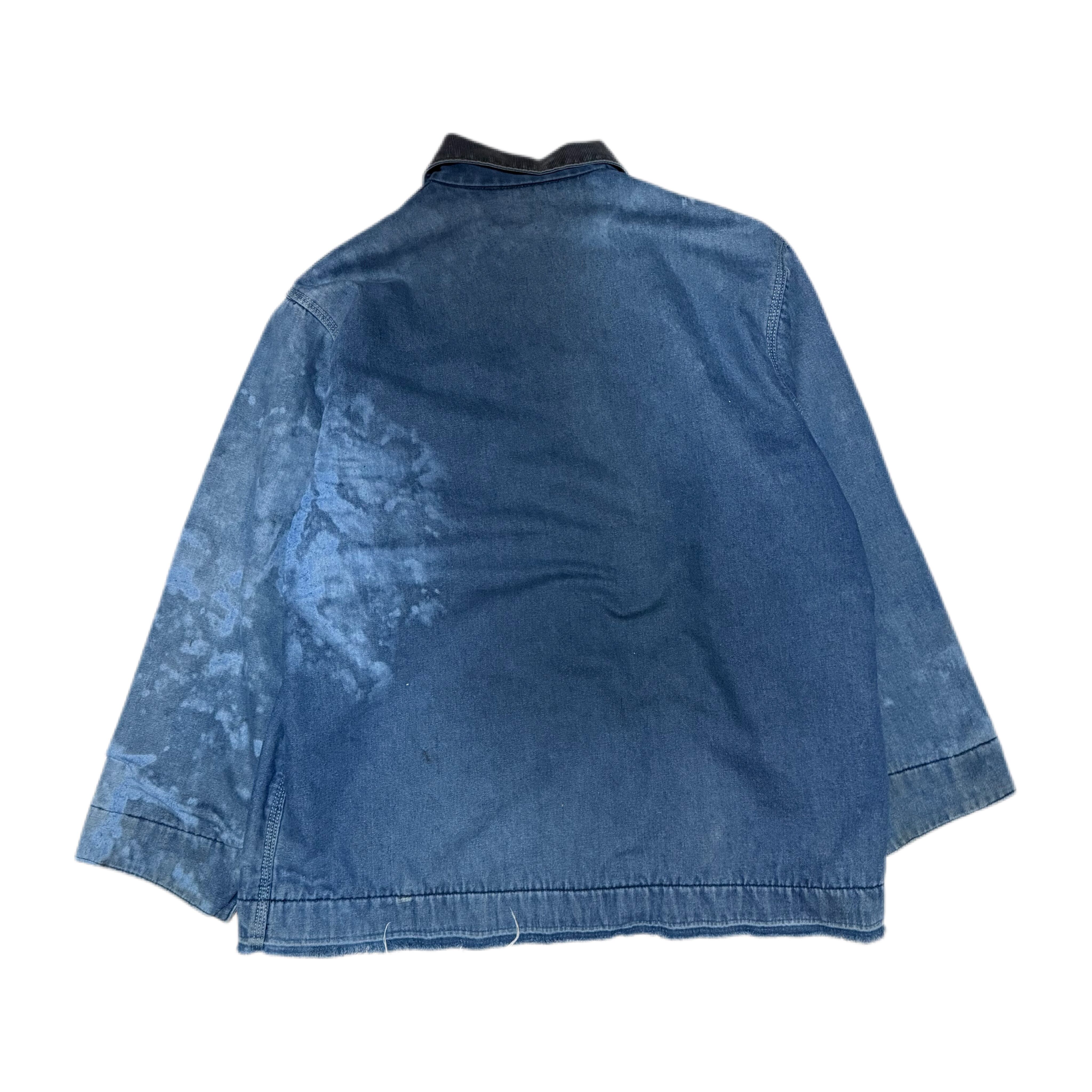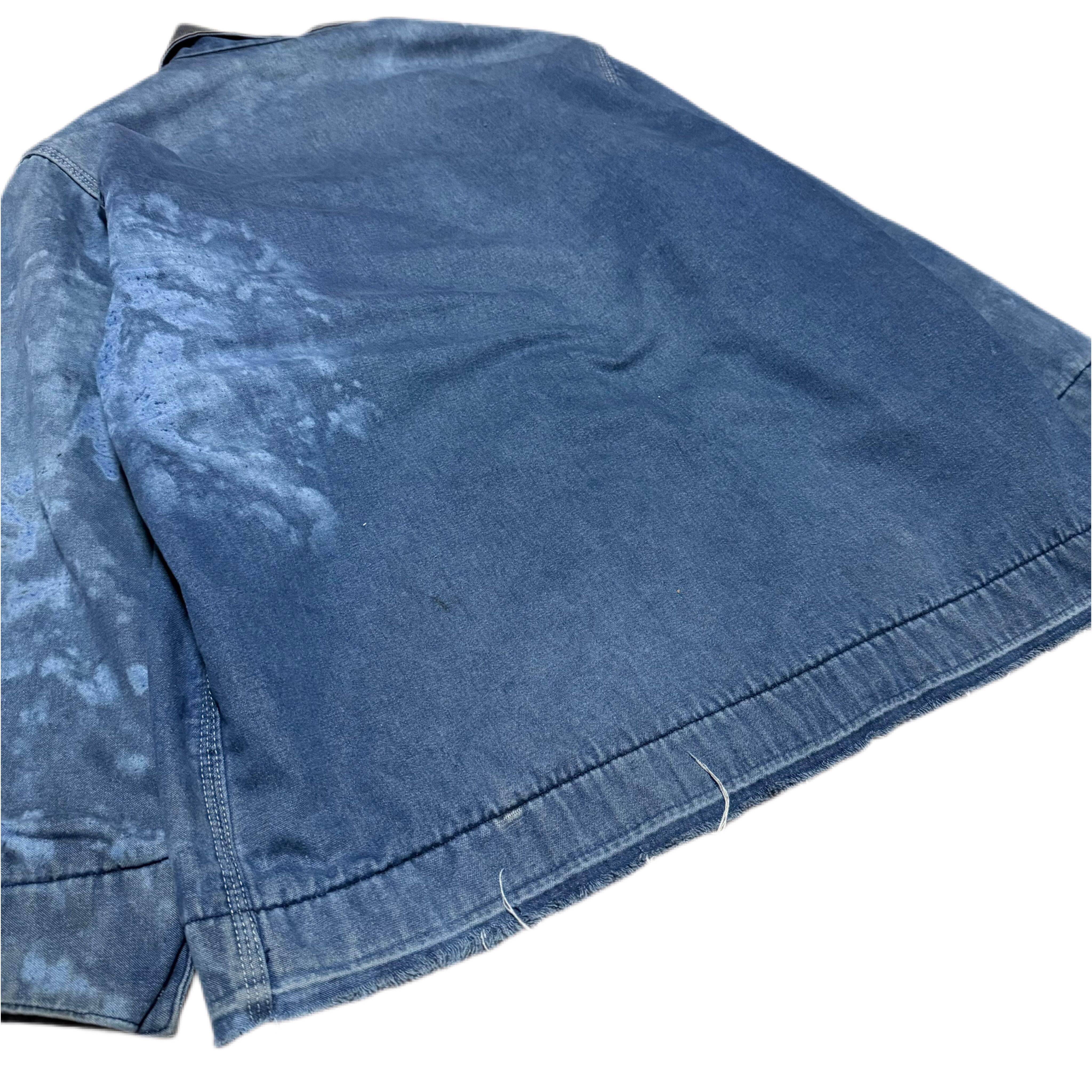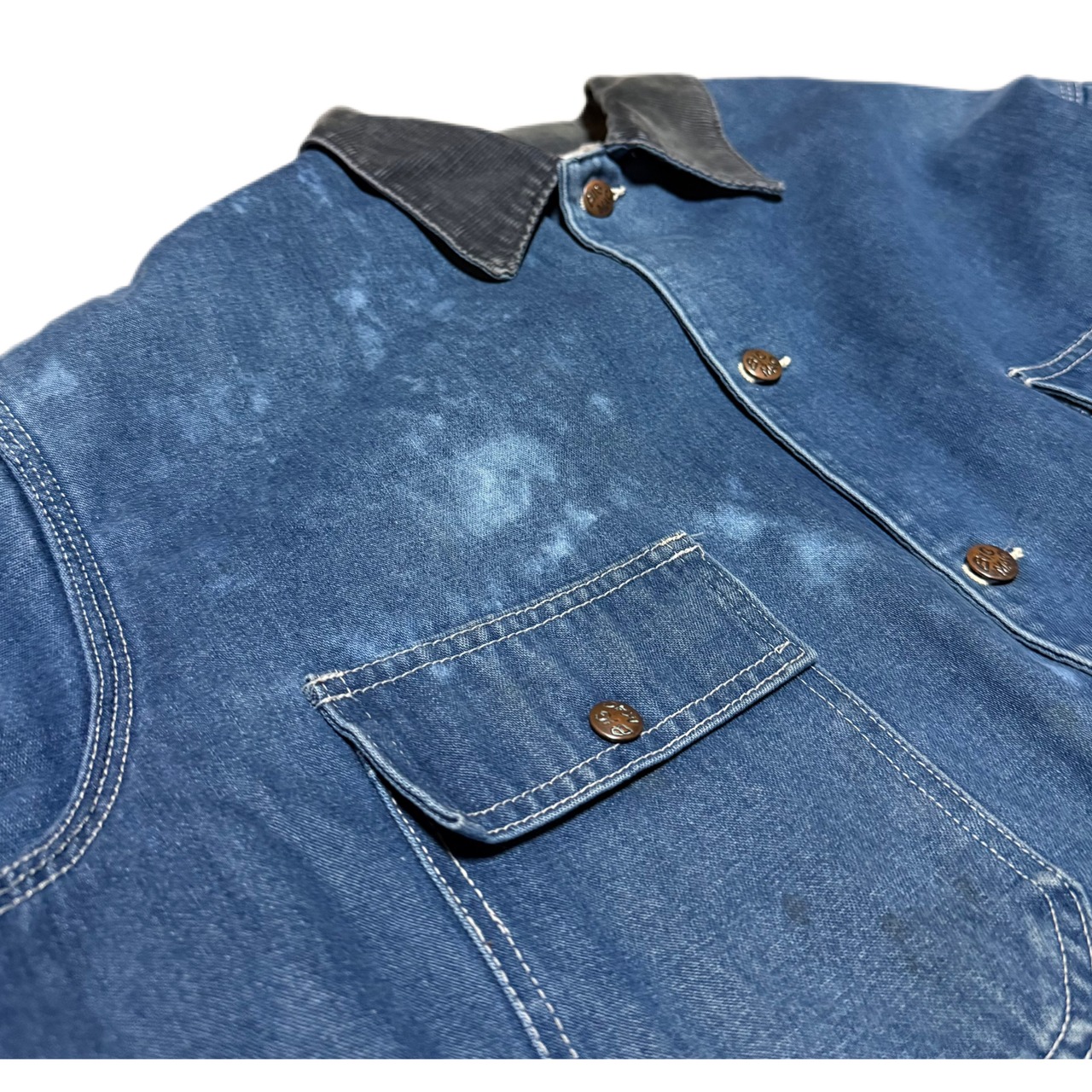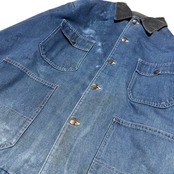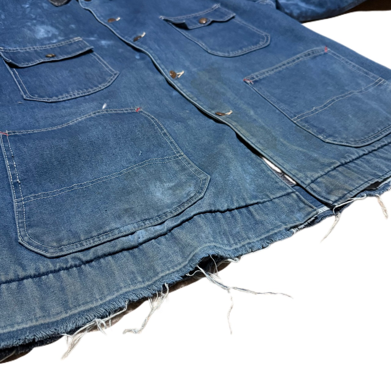 ブランケットライナーがあるタイプで、無骨な生地感に、長年の着用で入ったフェード、ブリーチ跡、アタリが重なり、加工では作れないリアルワークの表情が出ています。