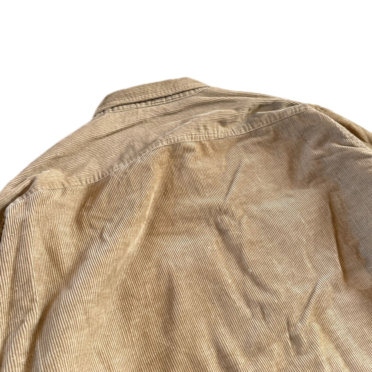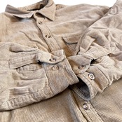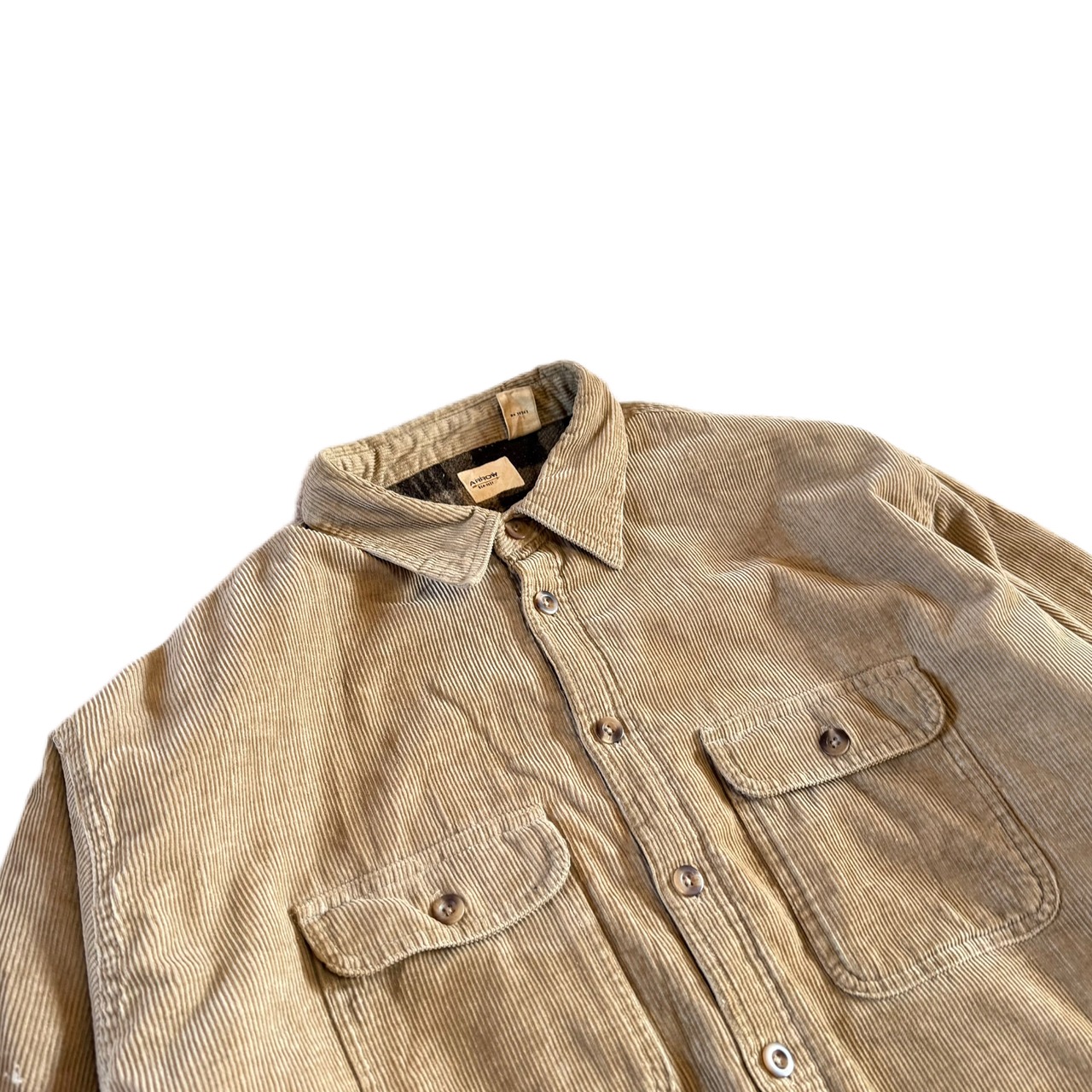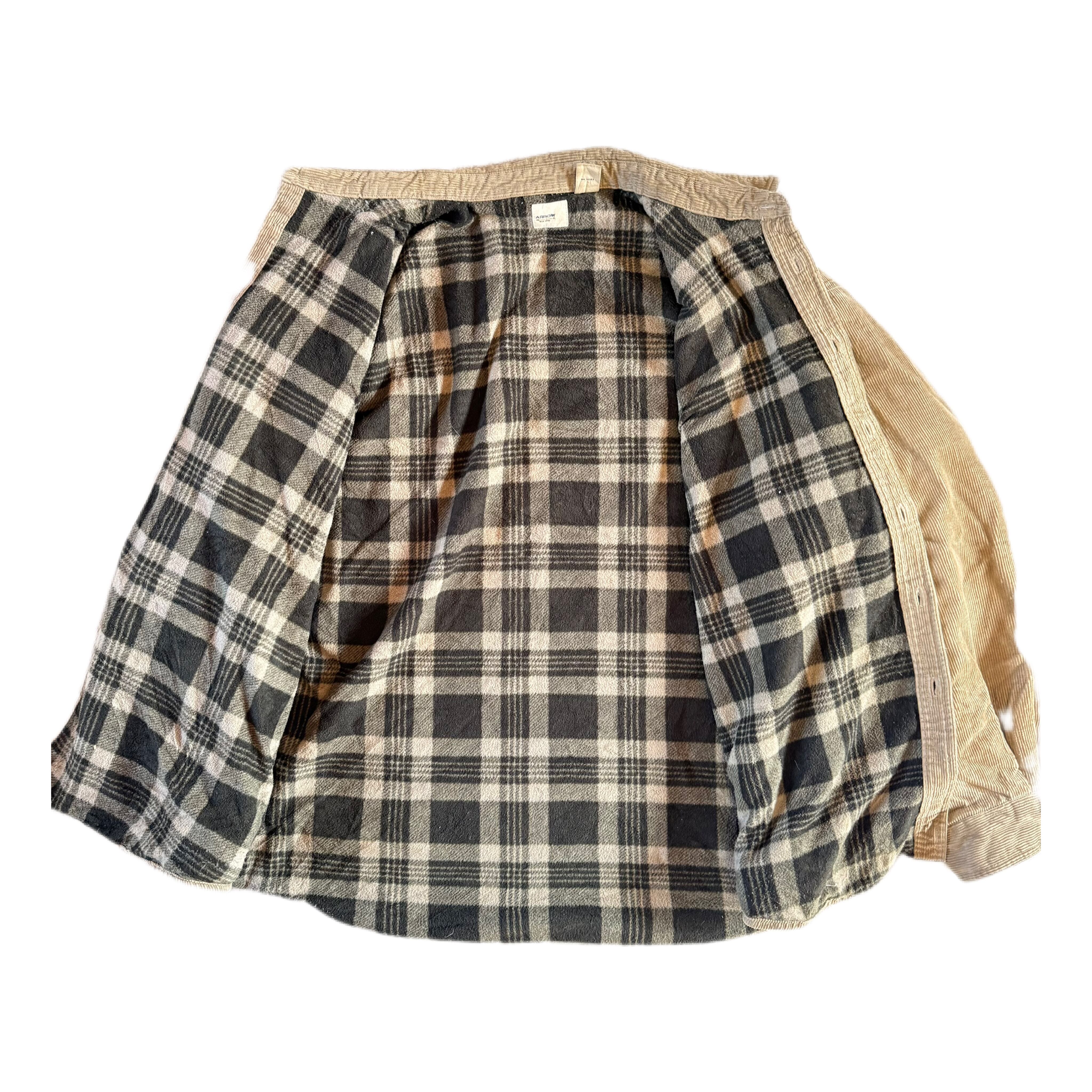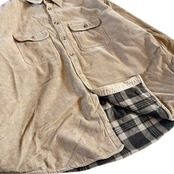 ARROWのコーデュロイシャツ。表地は細畝のコーデュロイ、内側はチェック柄のフランネルが総裏で付く、シャツ以上・ジャケット未満の便利な1枚。