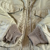 ジップスライダーの欠損、リブにダメージやボディに小さなシミ・擦れなど、実使用に伴う経年は見られますが、着用には問題なく、むしろ当時物ならではの雰囲気をしっかりと楽しんでいただけます。