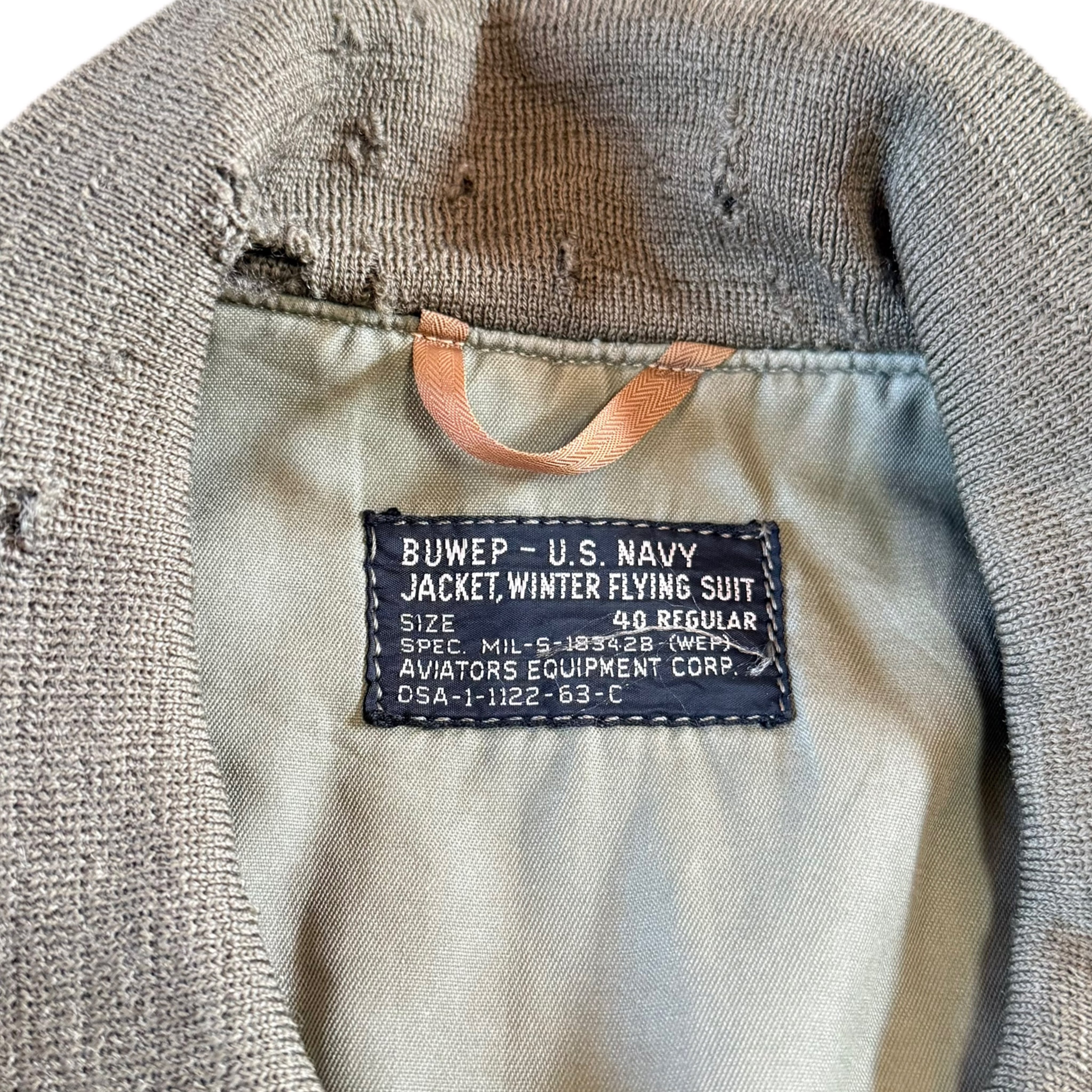 こちらはBUWEPS(Bureau of Weapons)タグが付く実物オリジナルで、スペックはMIL-J-18342B、1963年前後に製造された一着です。