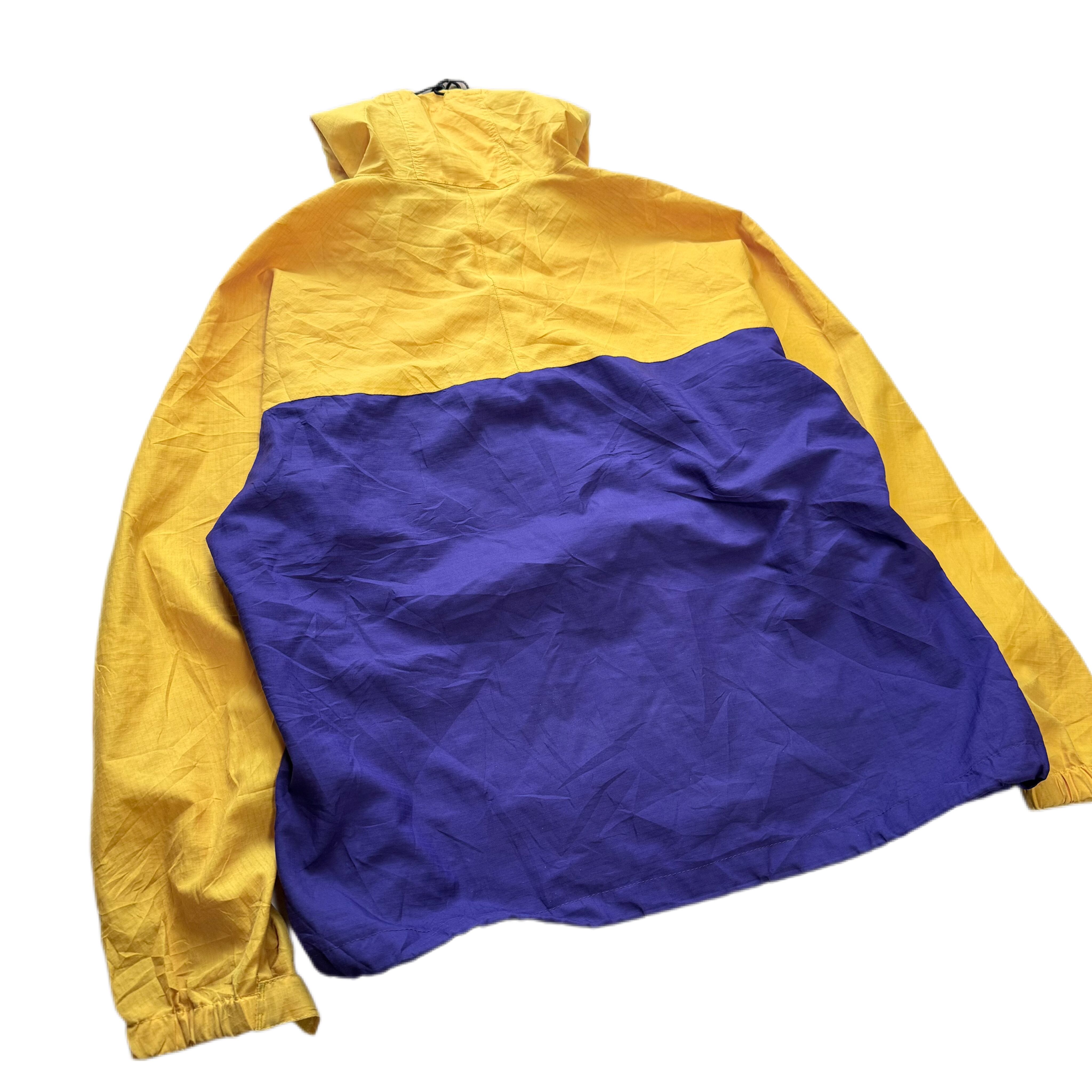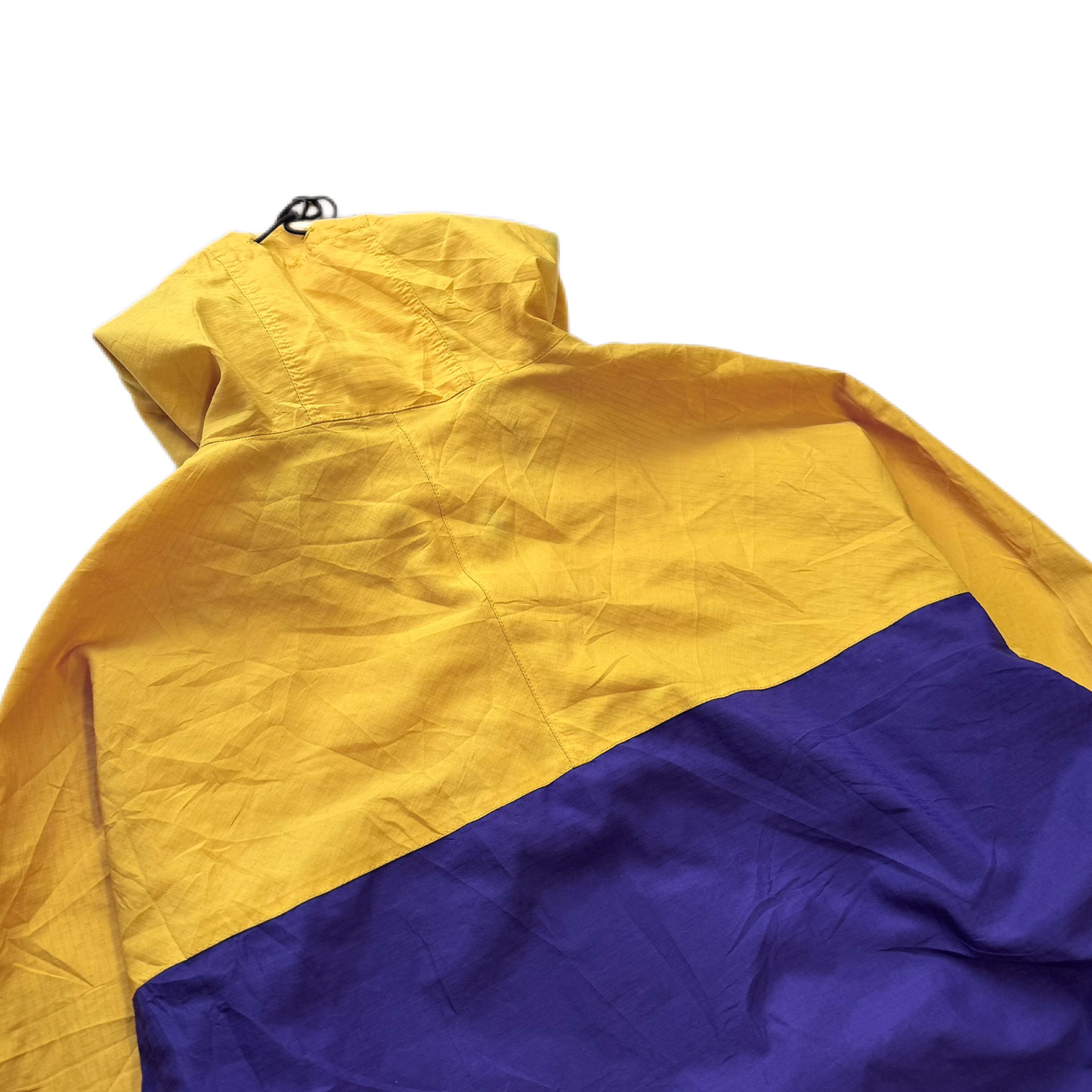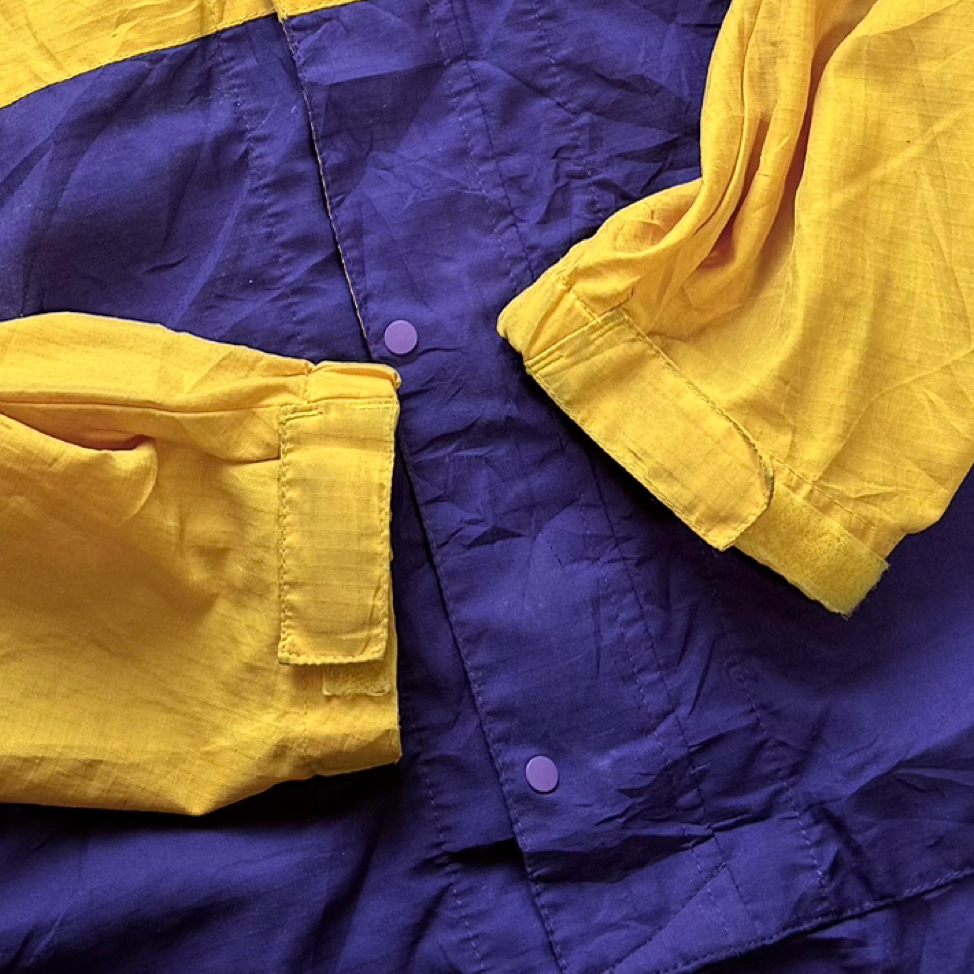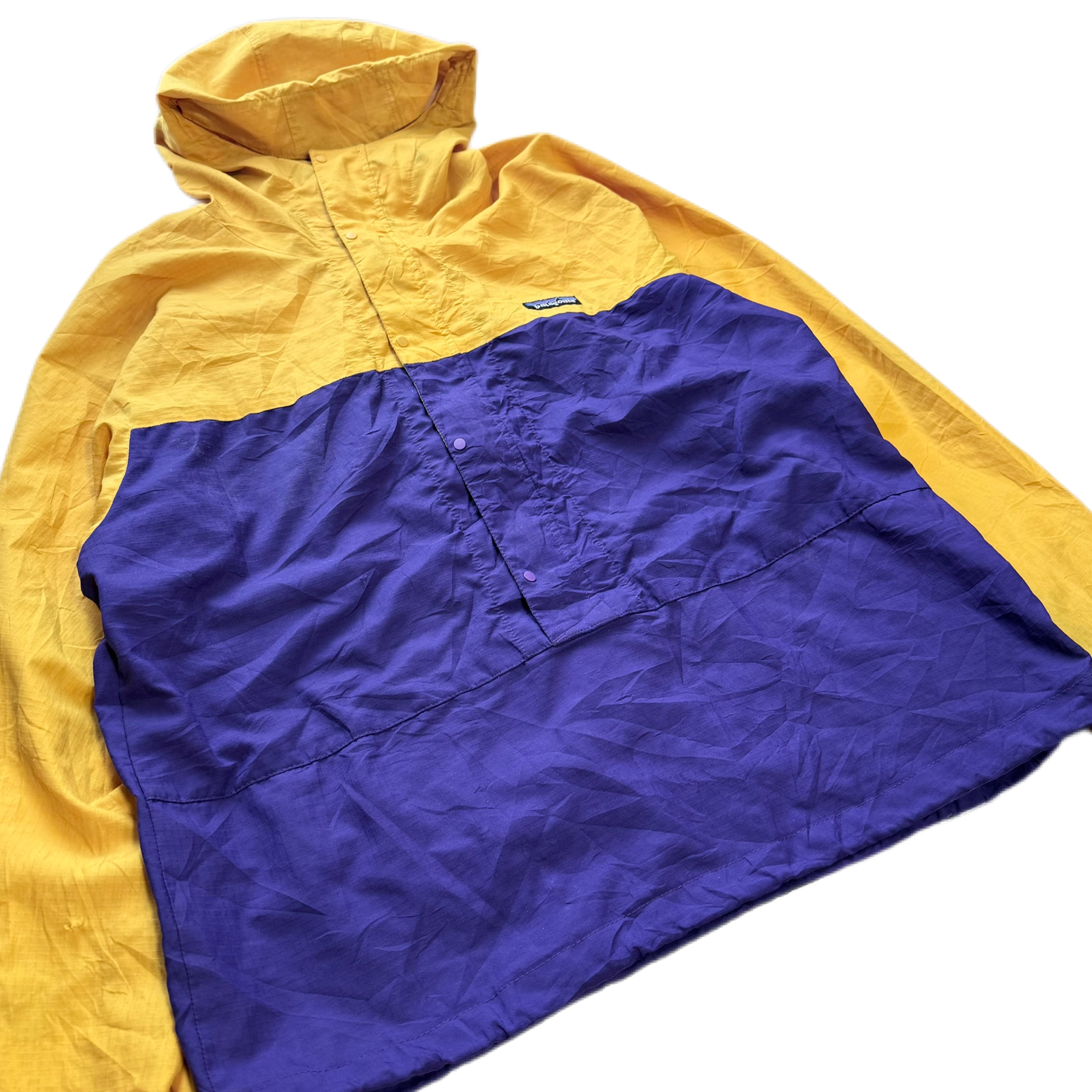 1990年代後半のPatagoniaらしい、イエロー×パープルの強い配色が印象的なナイロンアノラック。