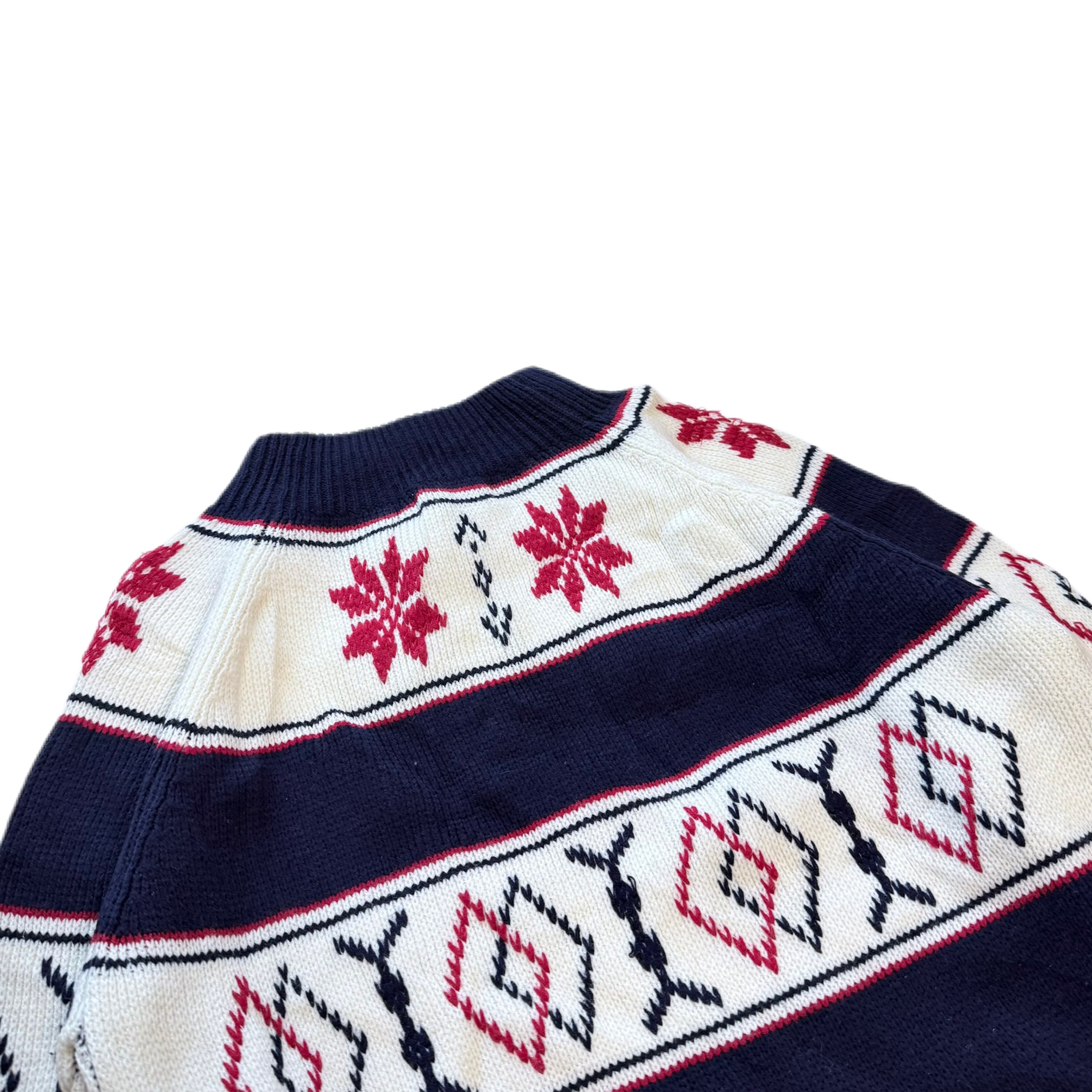 ネイビーベースにホワイト×レッドのノルディック柄が映える、USらしい存在感のある一着。
