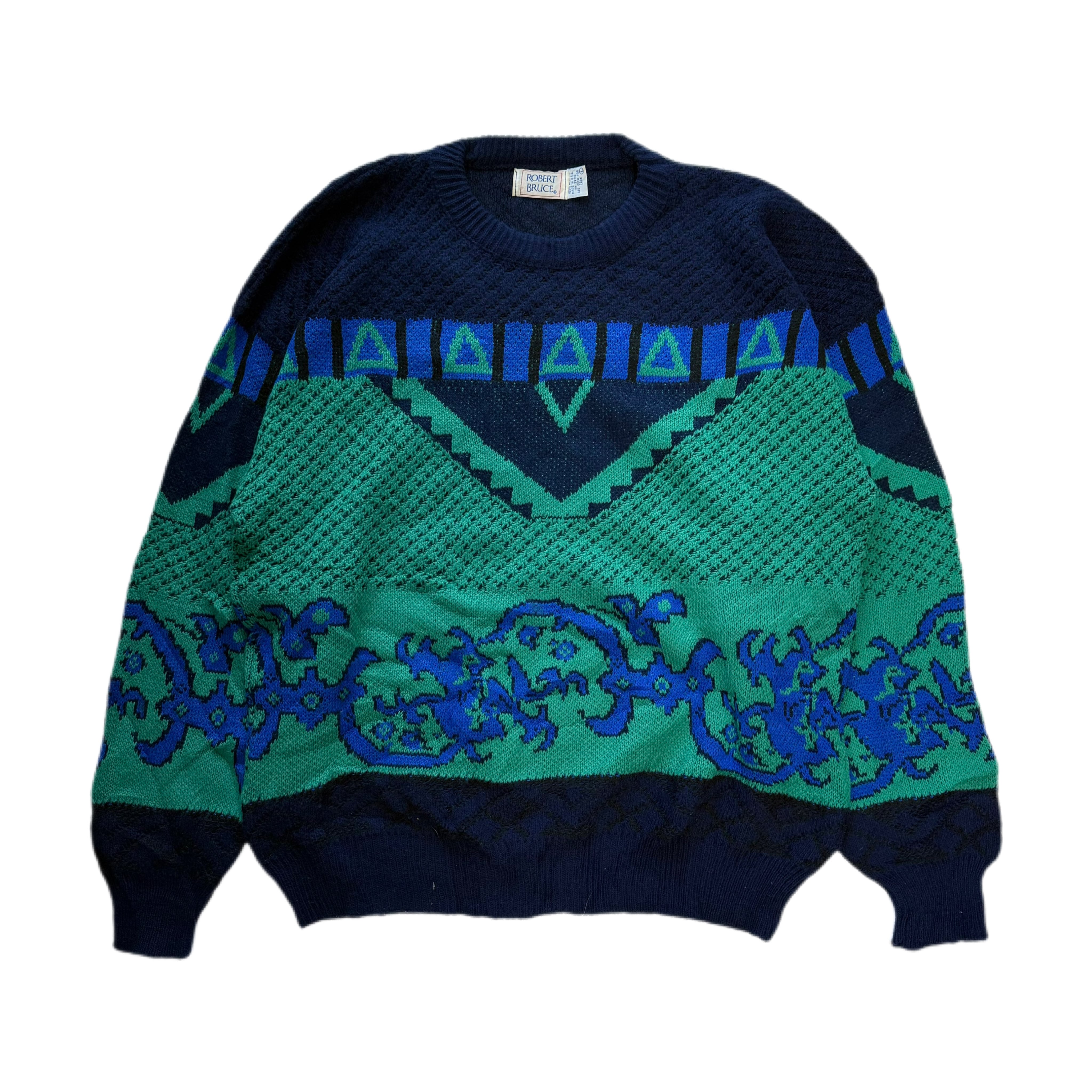 80s Robert Bruce Geometric Pattern Acrylic Knit Sweater【L】