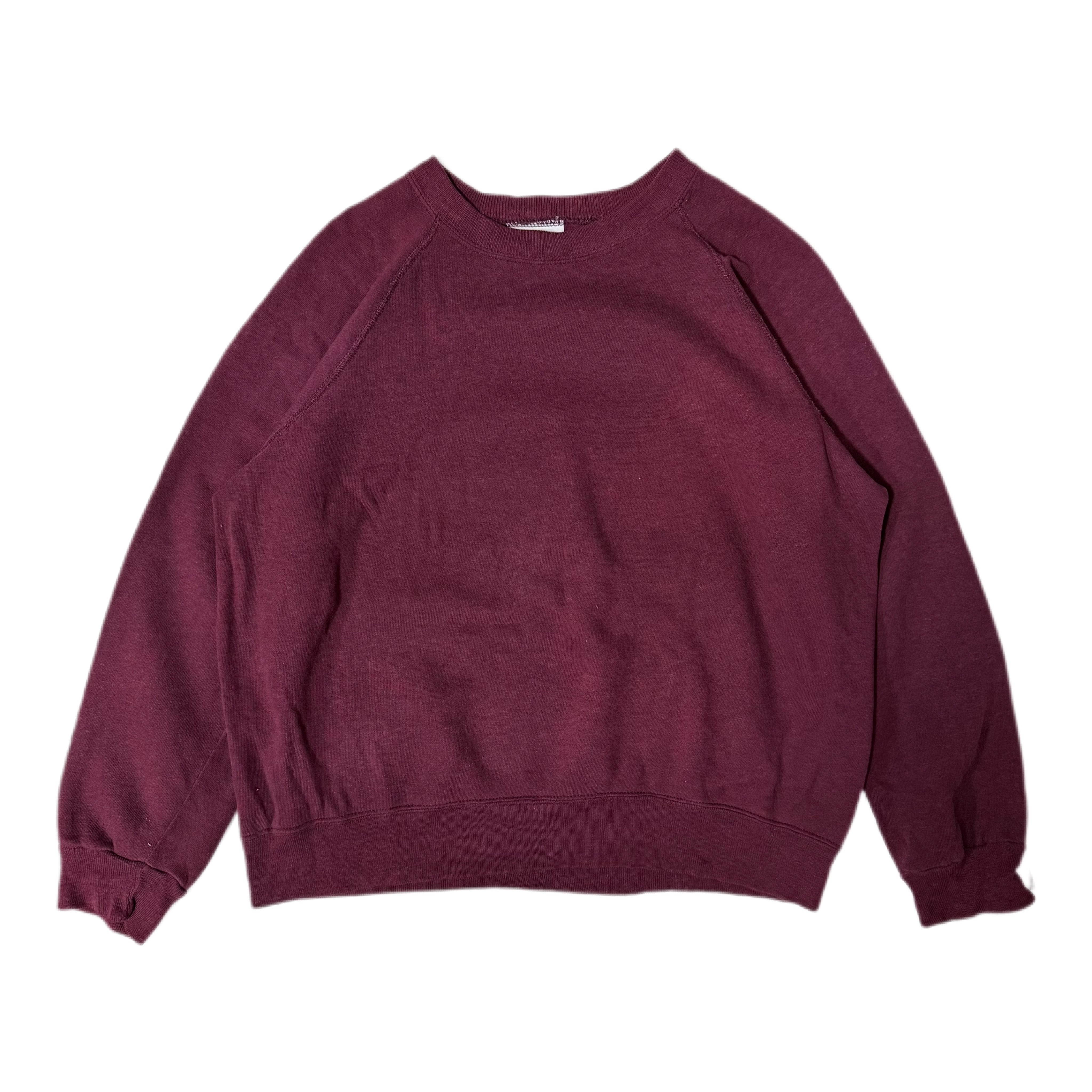 落ち着いたバーガンディカラーが魅力のラグランスウェット。