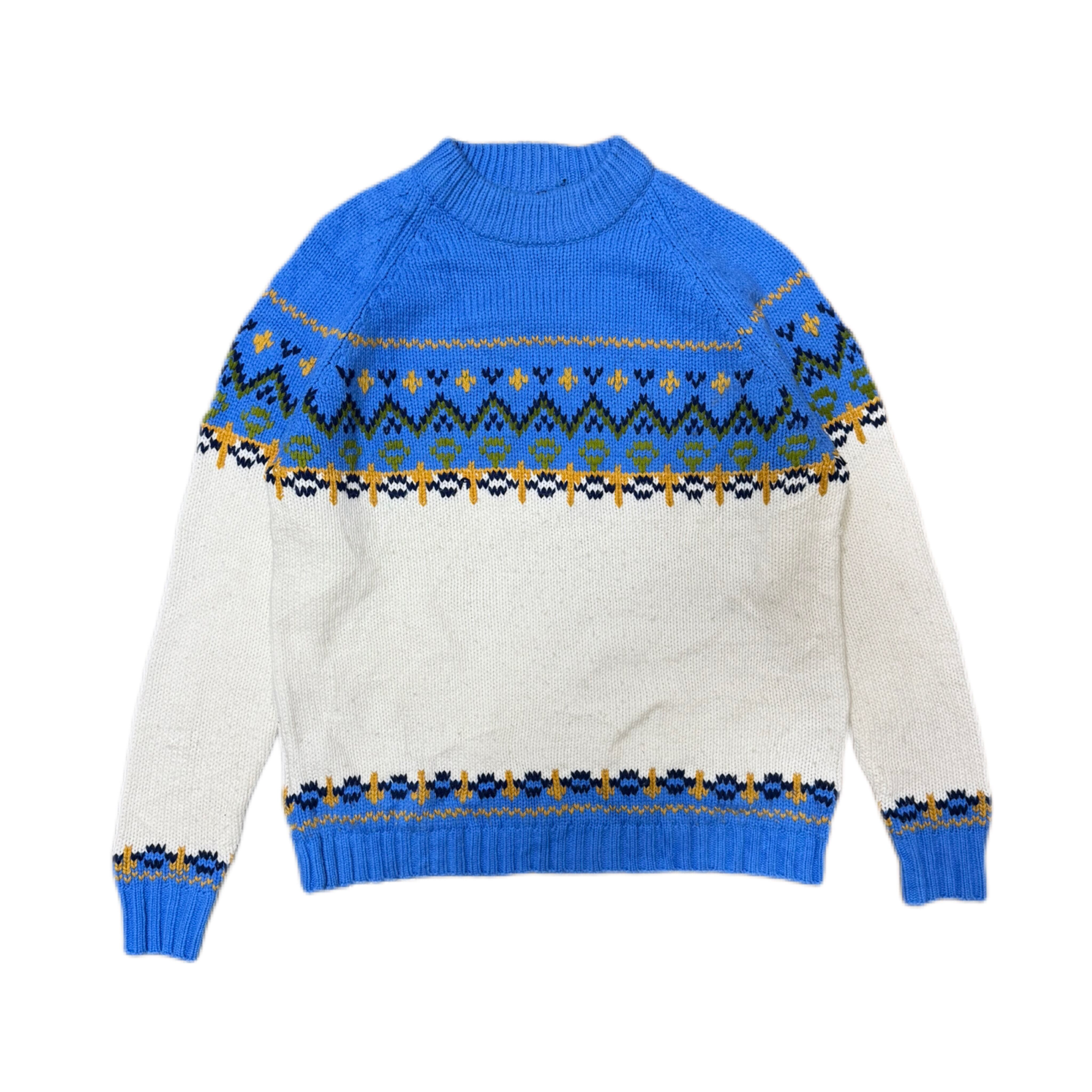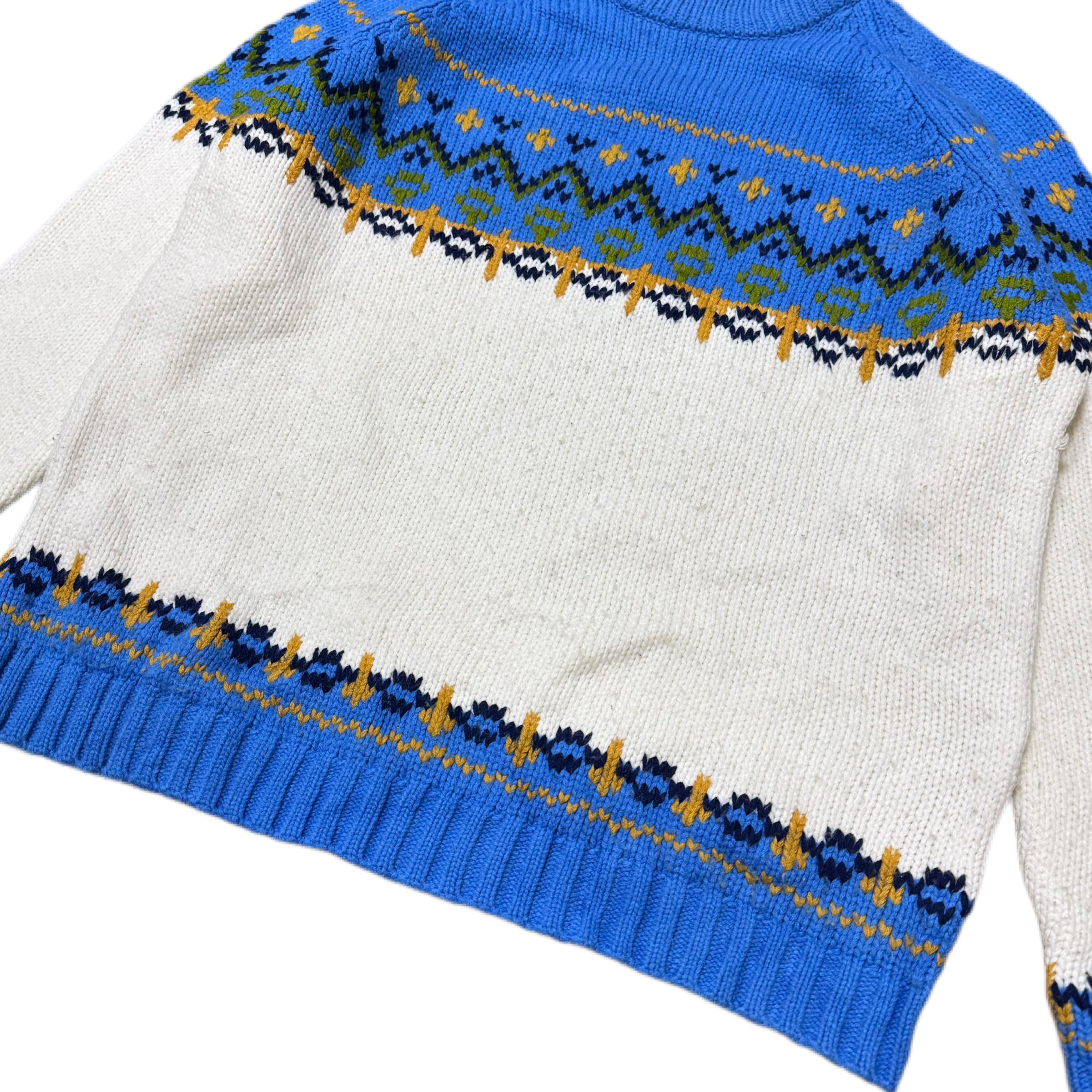 いわゆる本格的な北欧ニットというより、アメリカ的解釈の“フェアアイル風”デザインです。