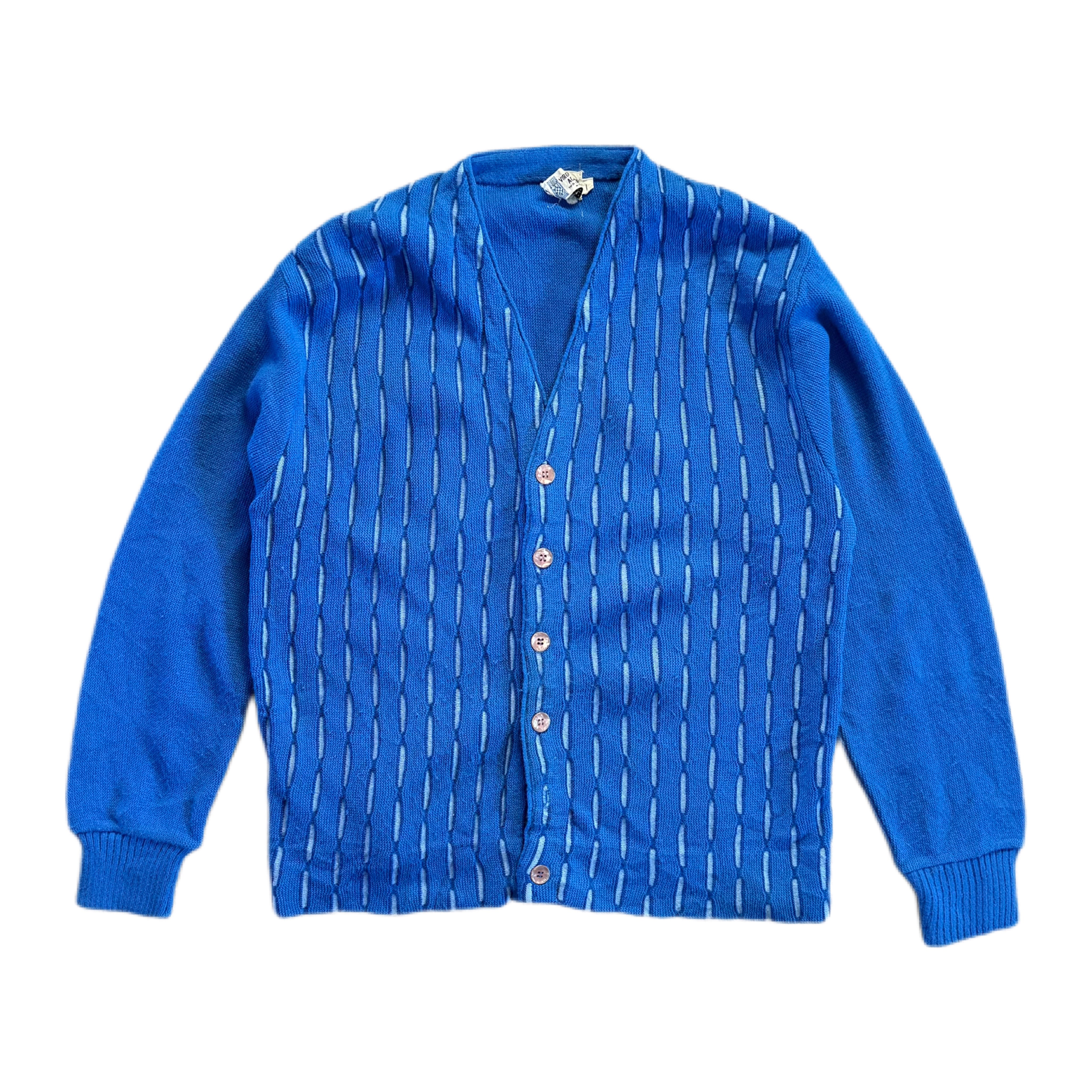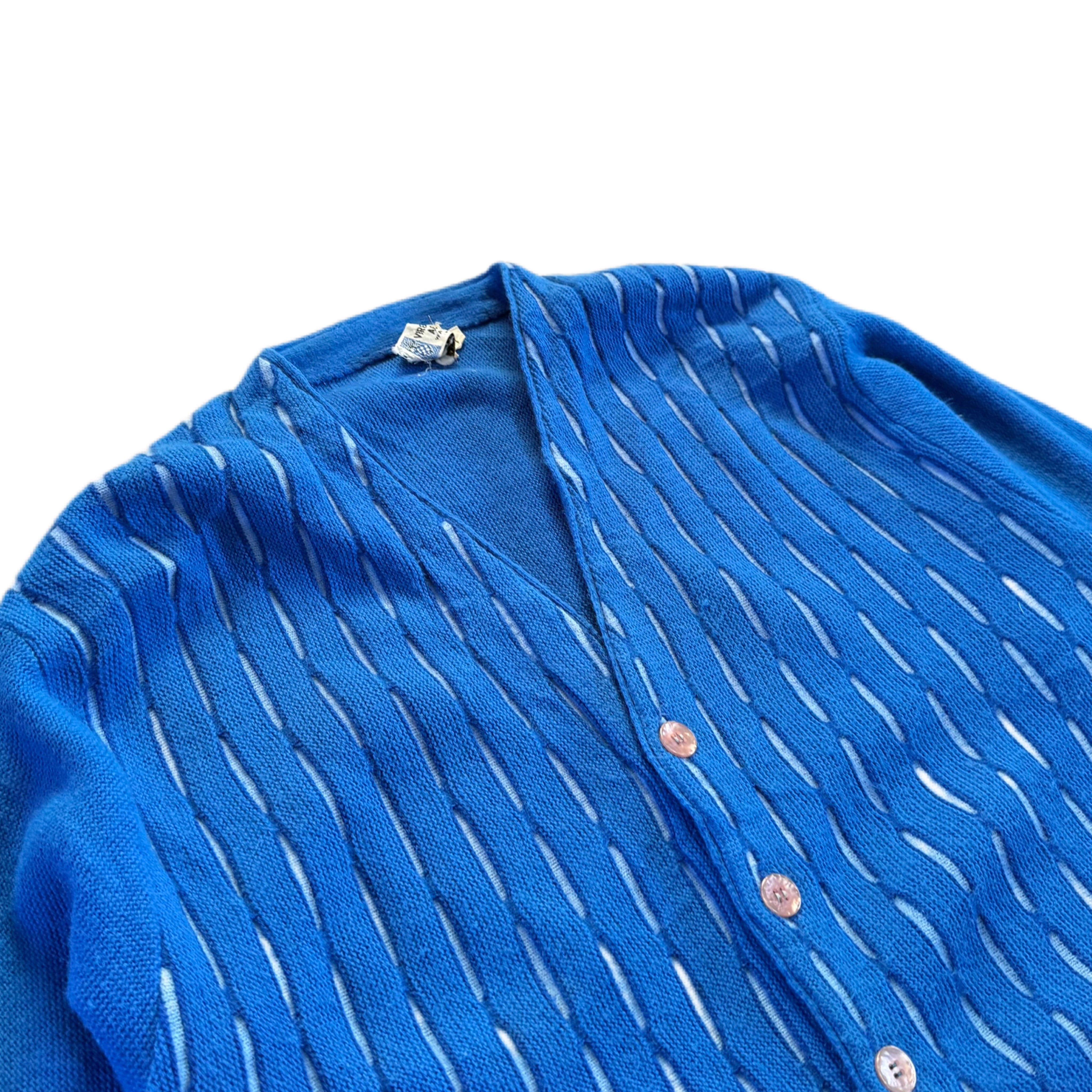鮮やかなロイヤルブルーが印象的な、1960年代のアクリルカーディガン。