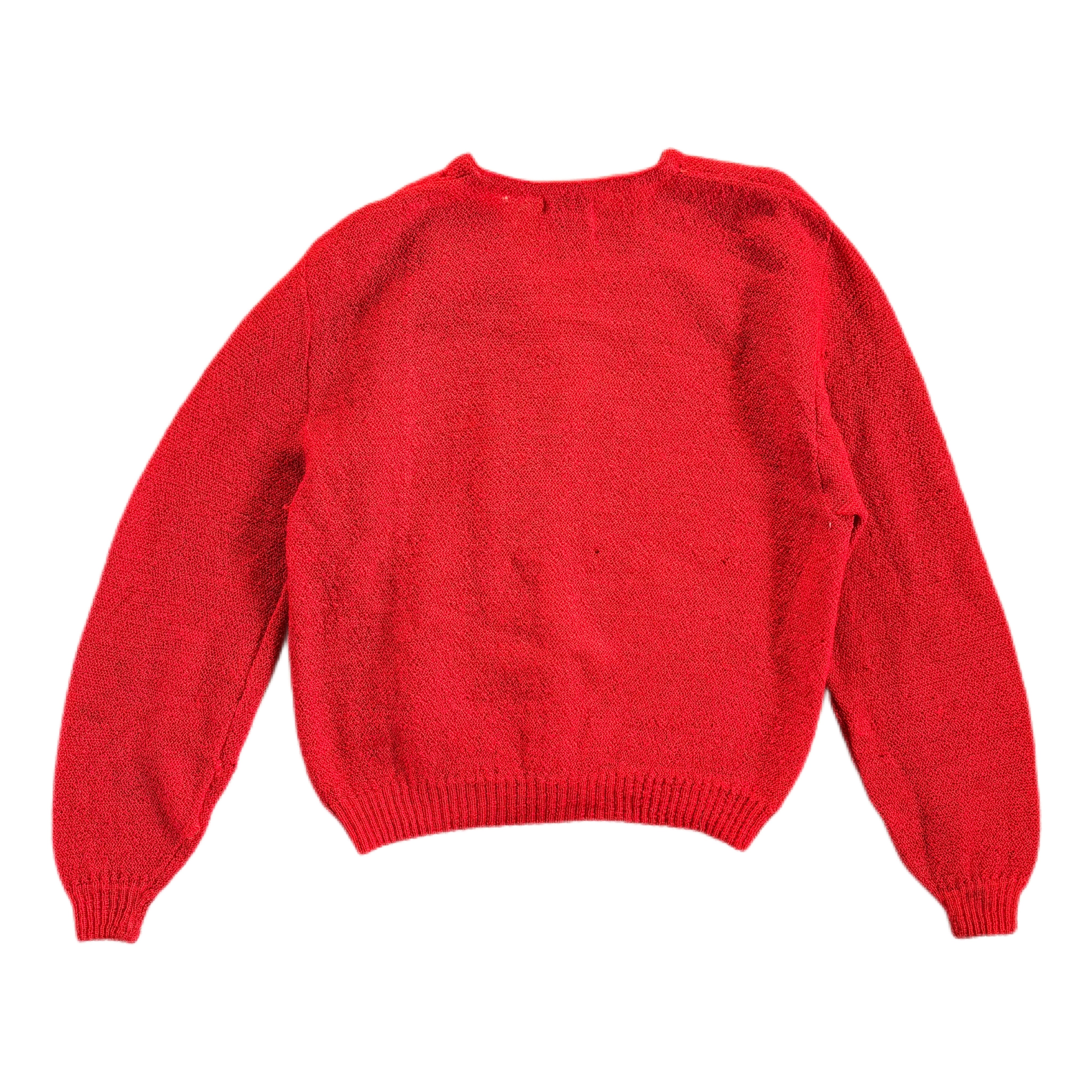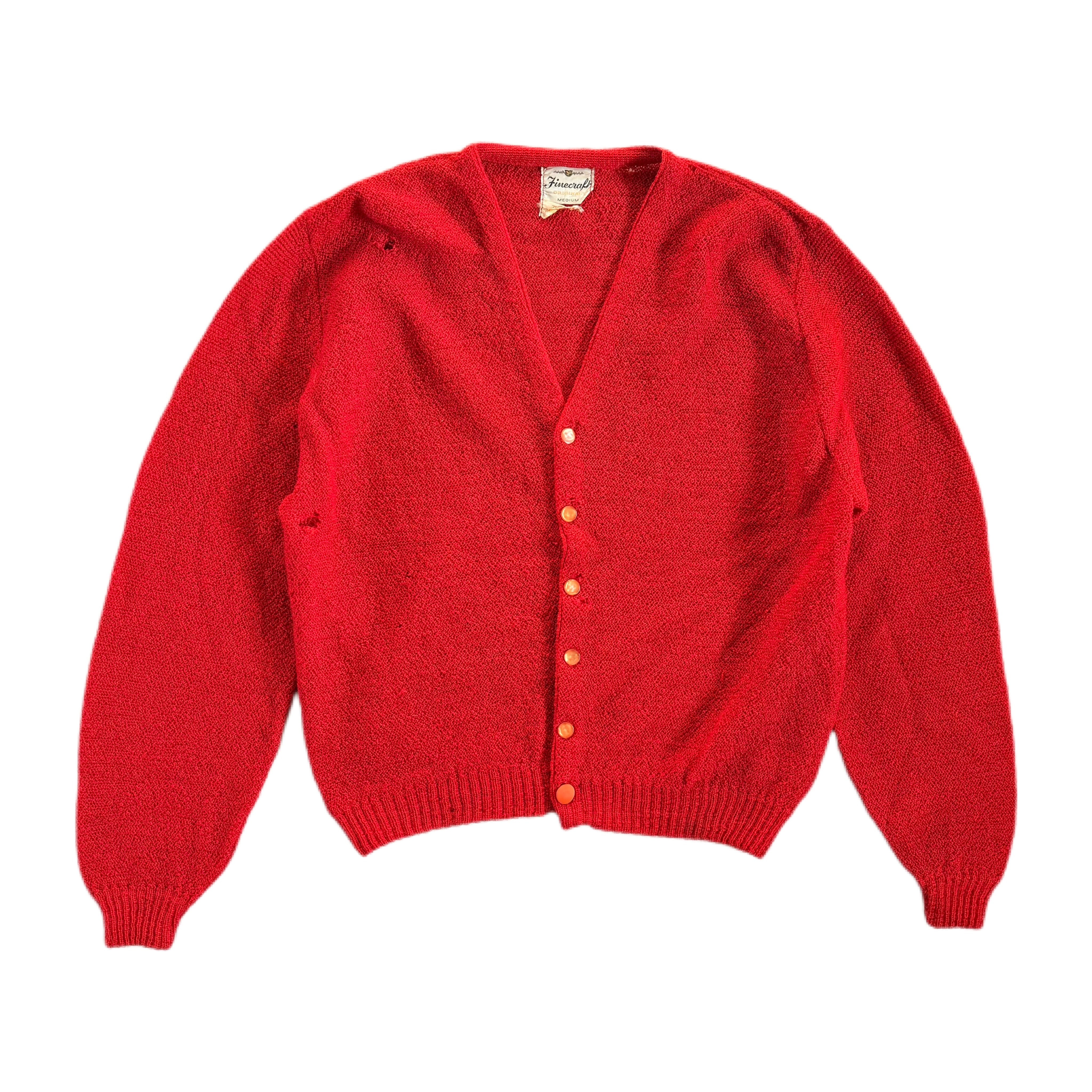 鮮やかなレッドカラーが目を引く、1960年代頃のモヘアカーディガン。