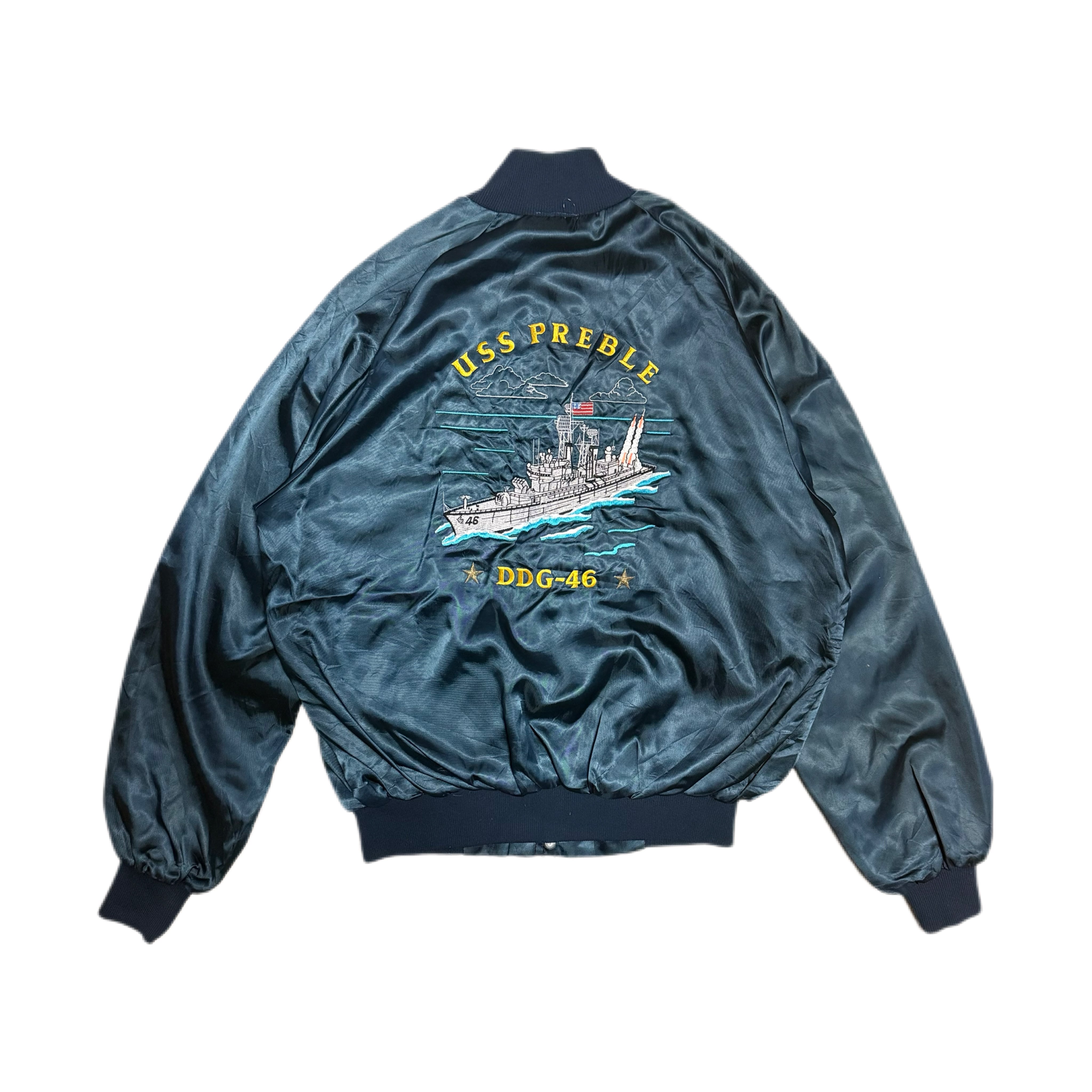 80s Westark USA USS PREBLE DDG-46 Satin Jacket 【M】