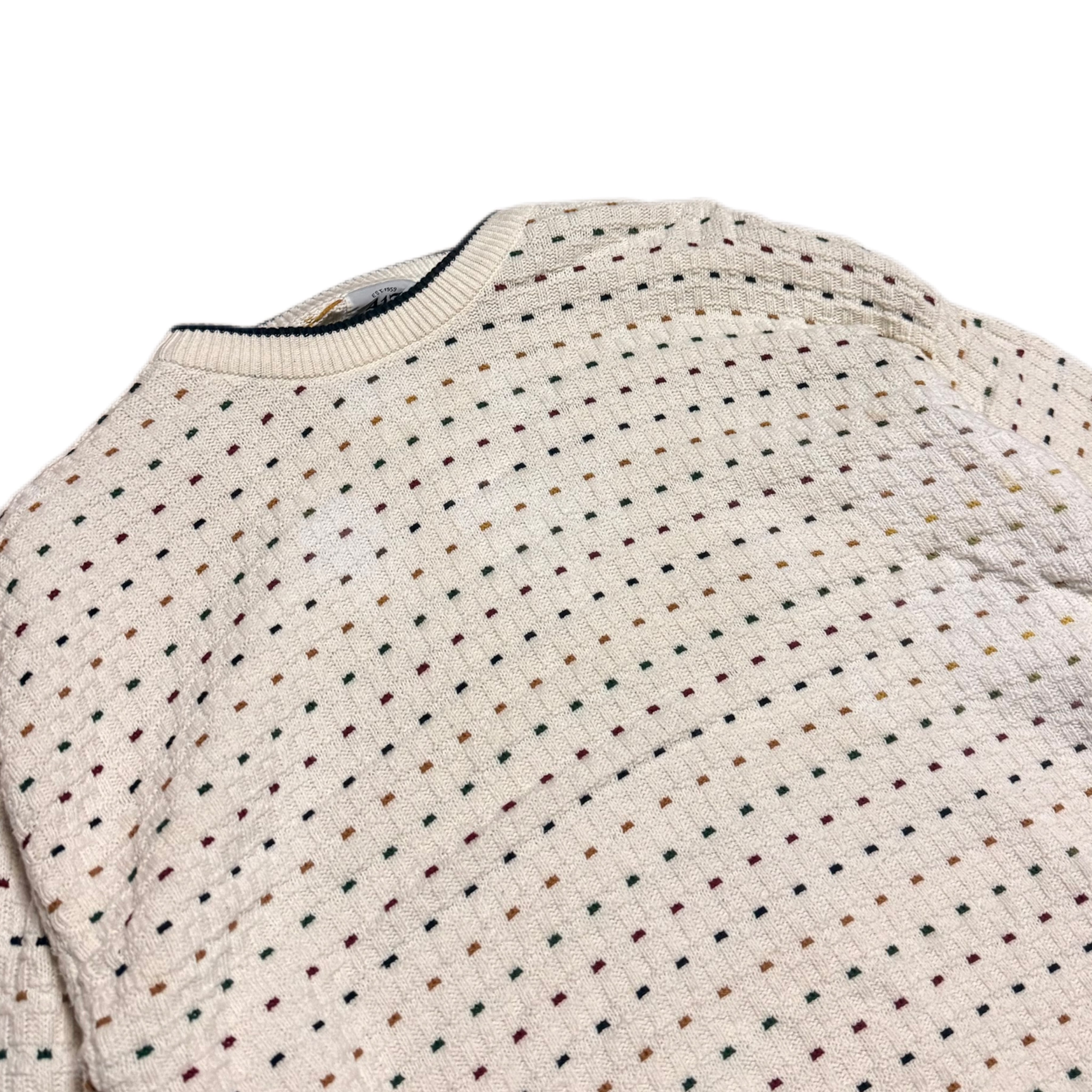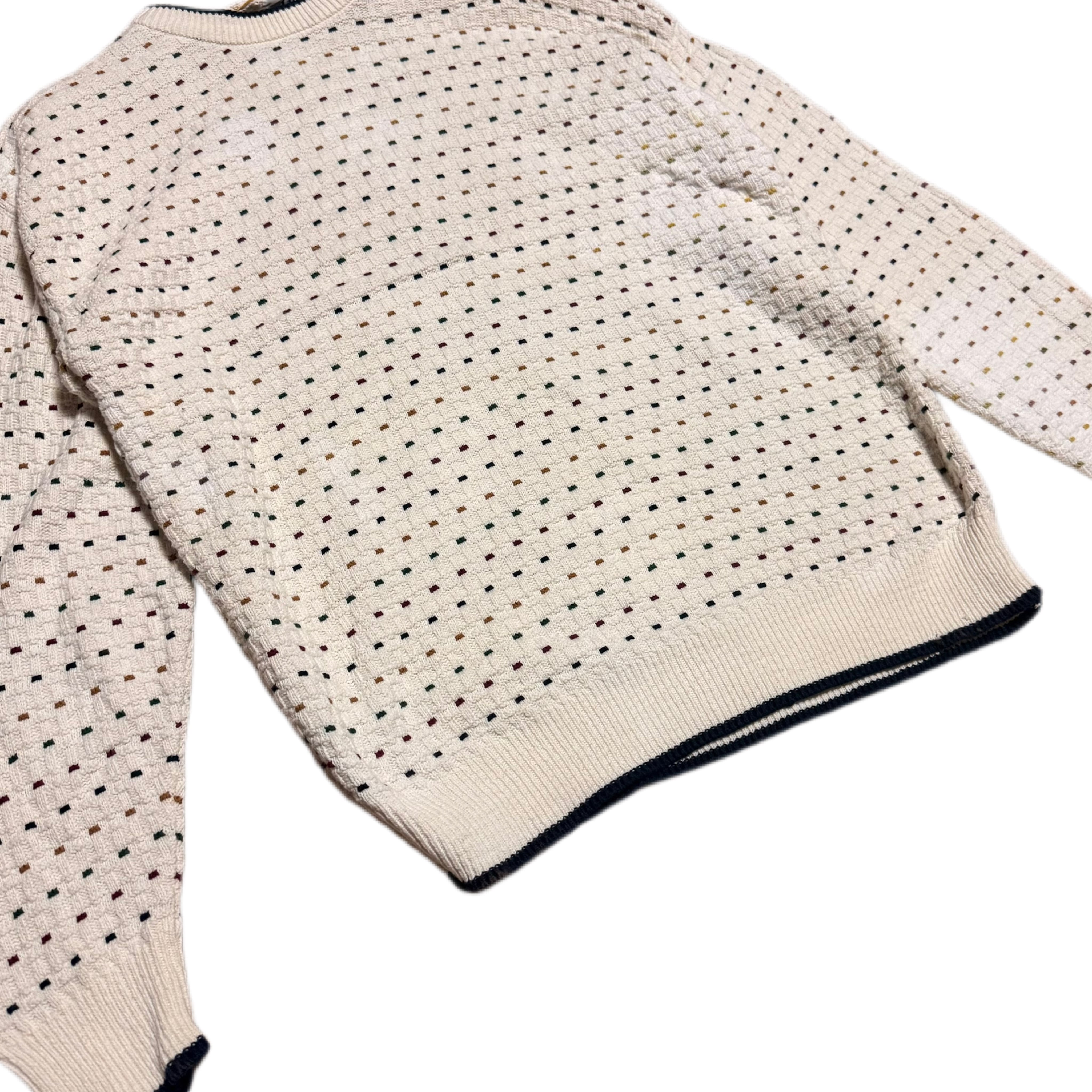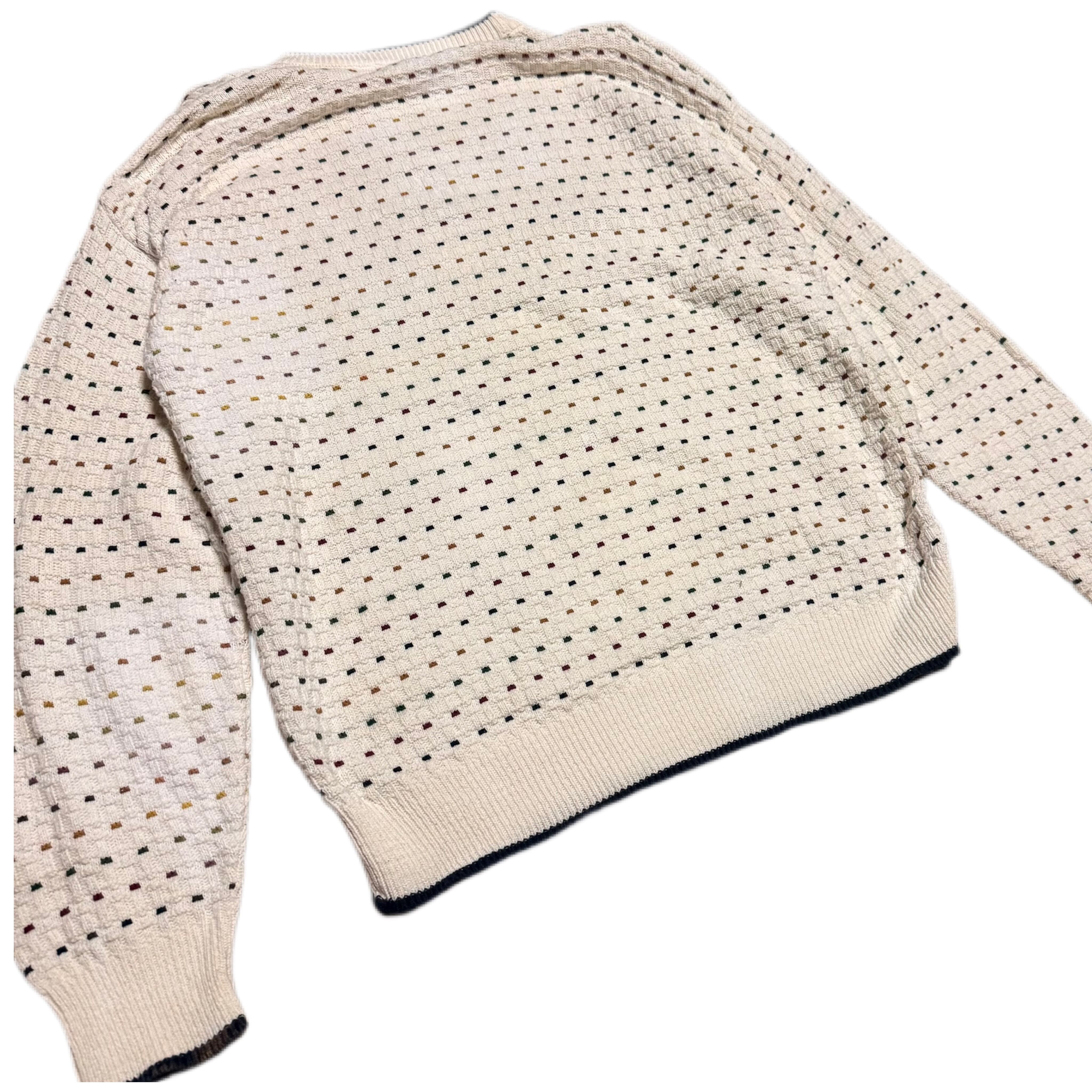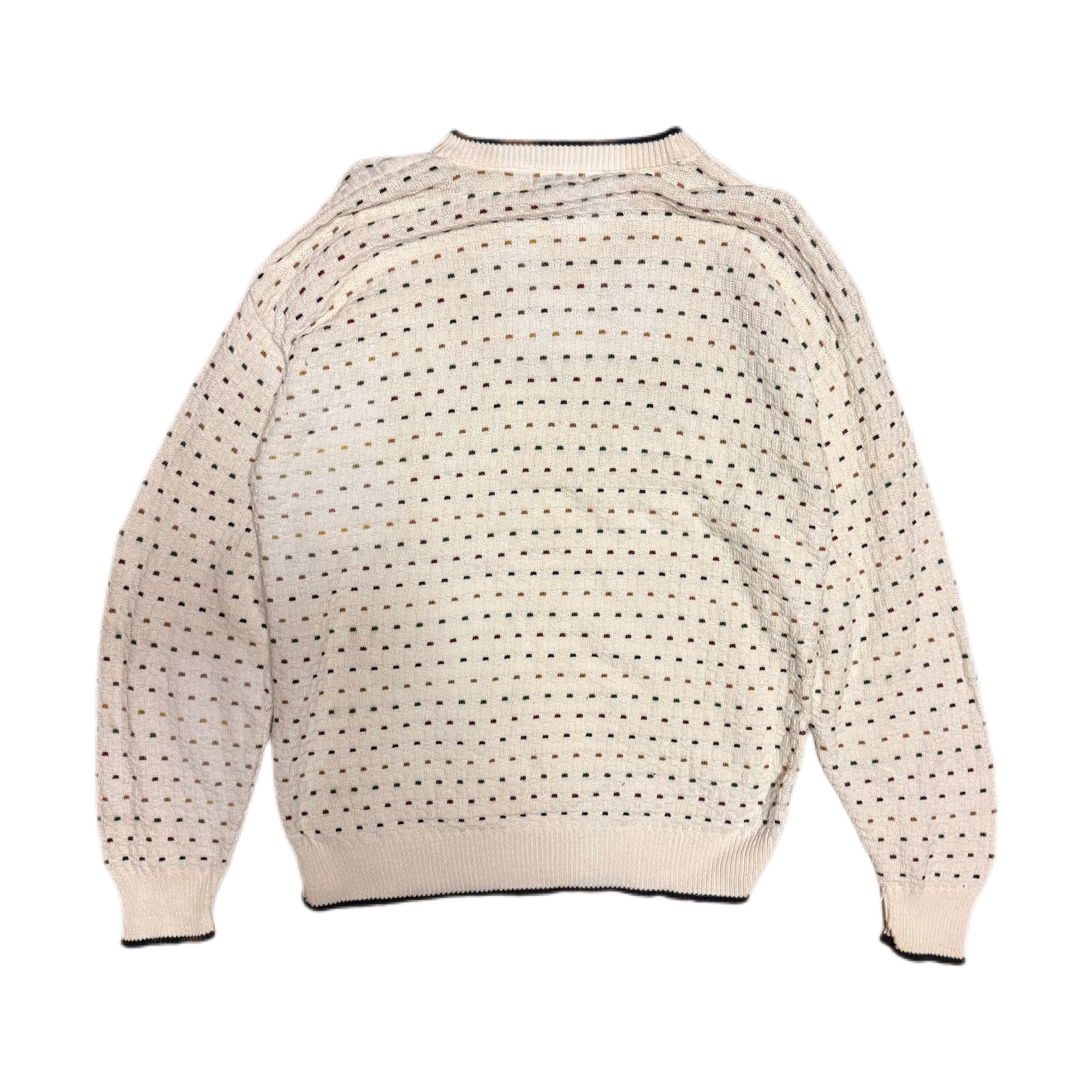 ナチュラルな生成りボディに、小さなドット状の配色が散りばめられたパターンニット。