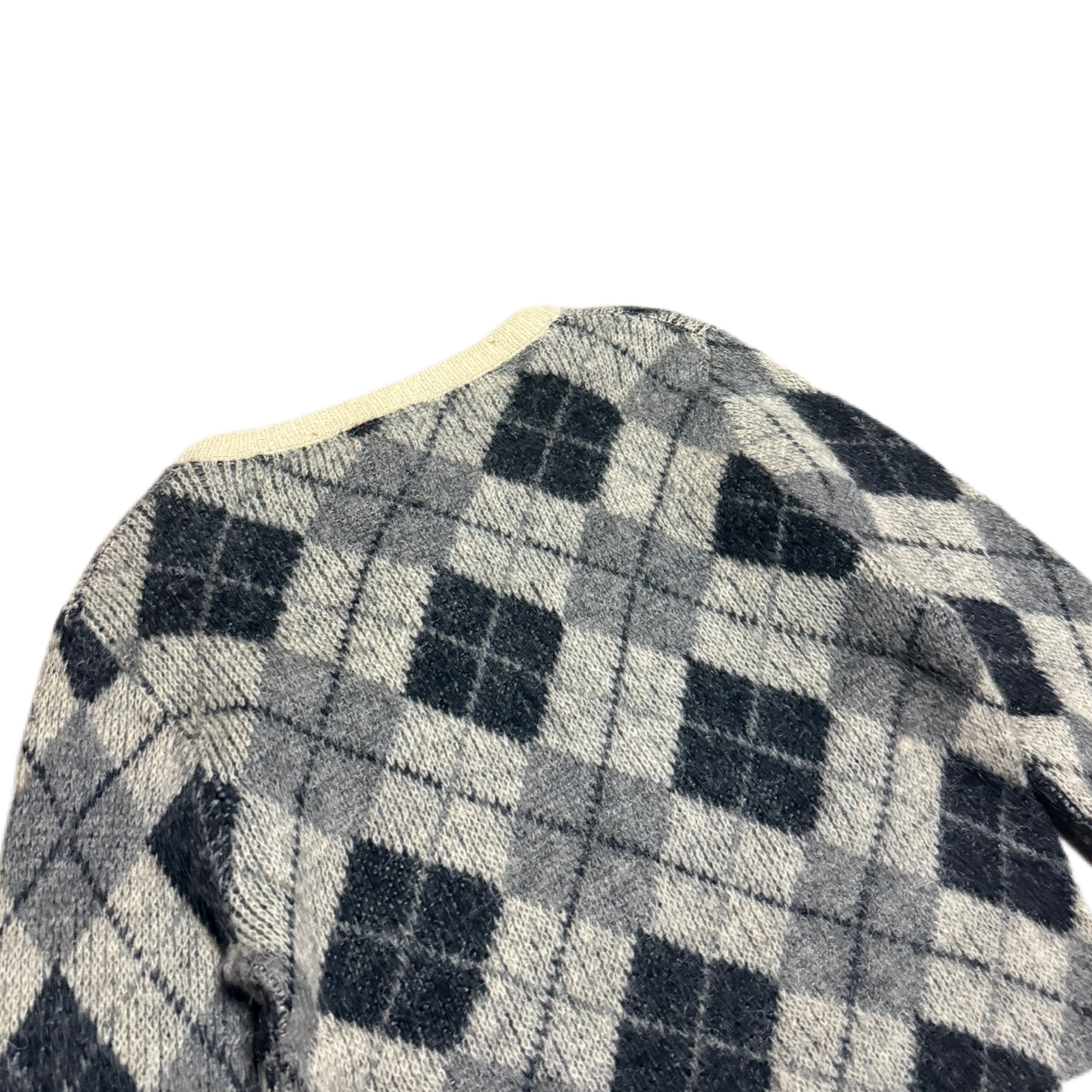 グレー×ブラックの落ち着いた配色で構成されたアーガイル柄モヘアニット。