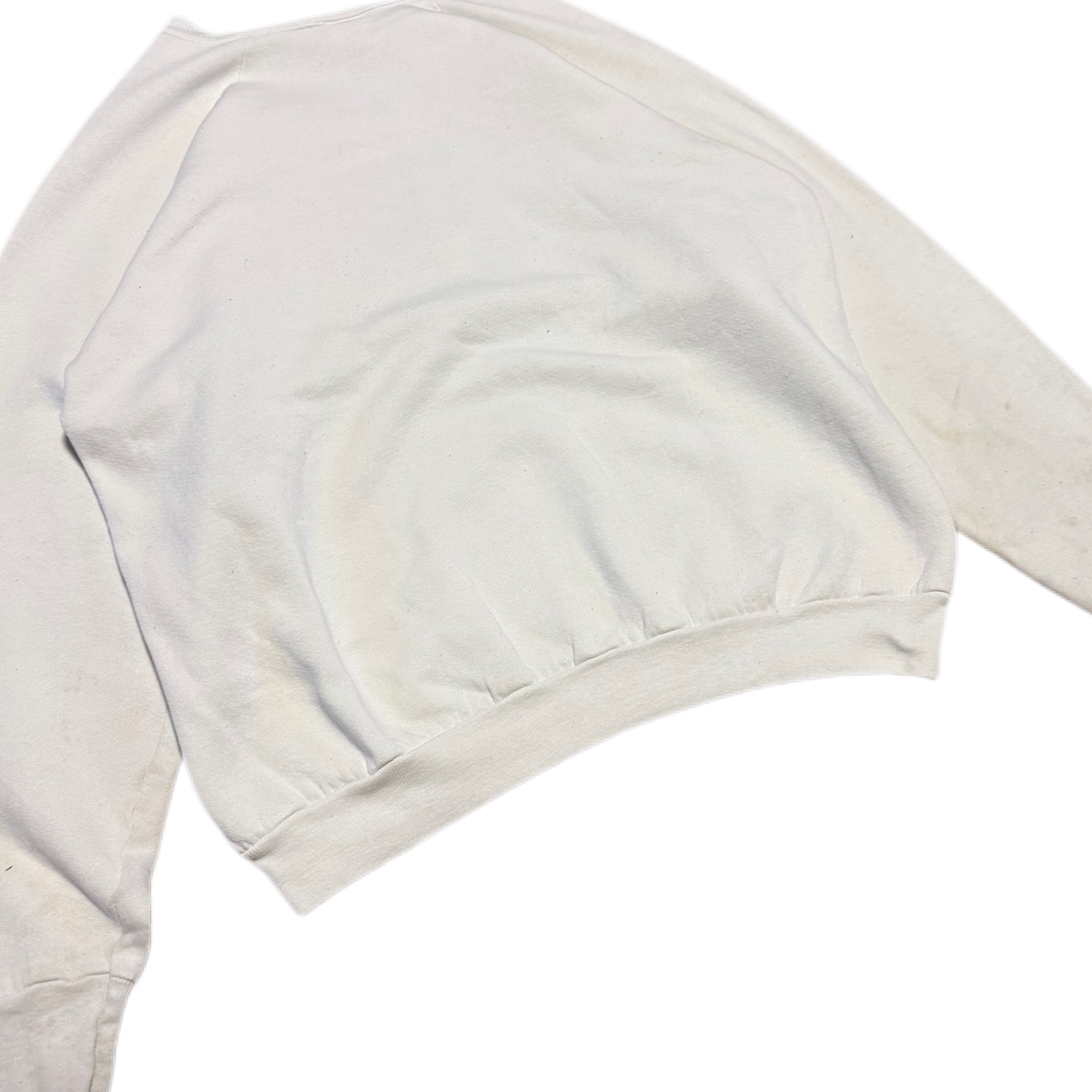 プリントのクラック、全体の薄汚れや着用感も含めて、この手のスウェットらしい“リアルなやれ感”が出ており、新品にはない雰囲気として楽しめる一着かと思います。