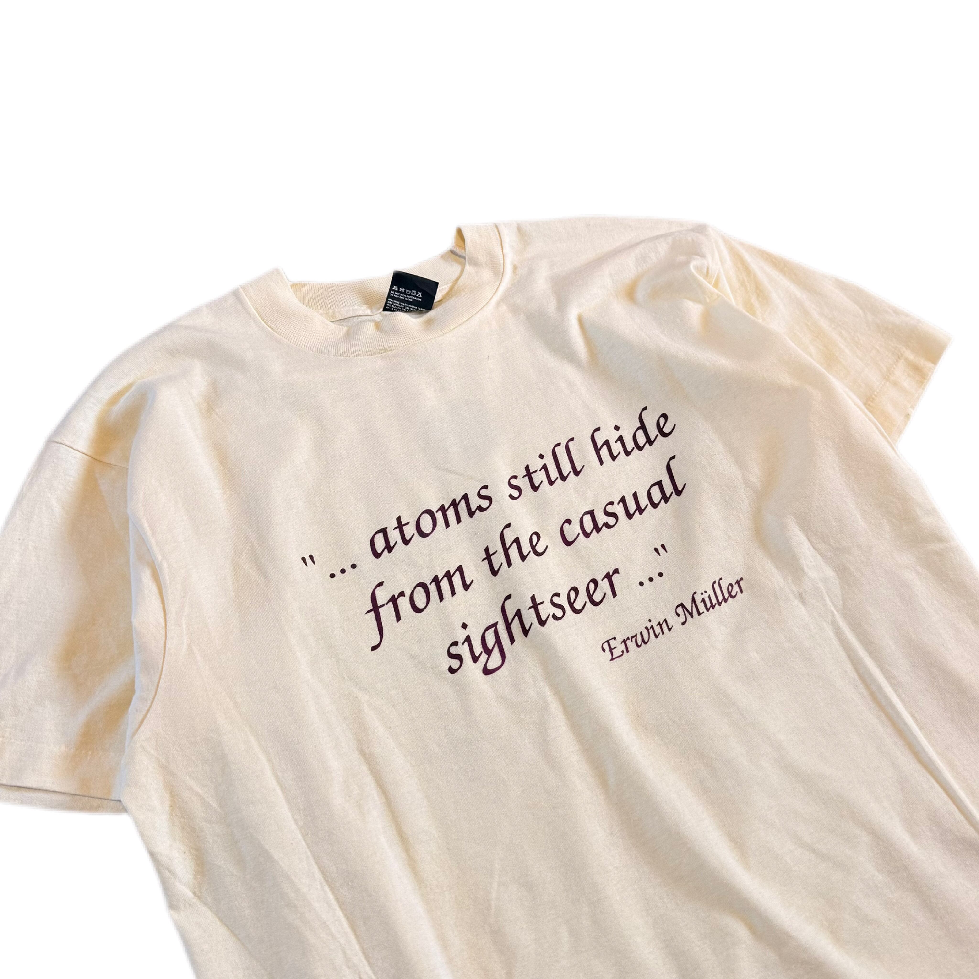 フロントには「…atoms still hide from the casual sightseer…」(“原子は今でも、何気なく見る者からは隠れている”)