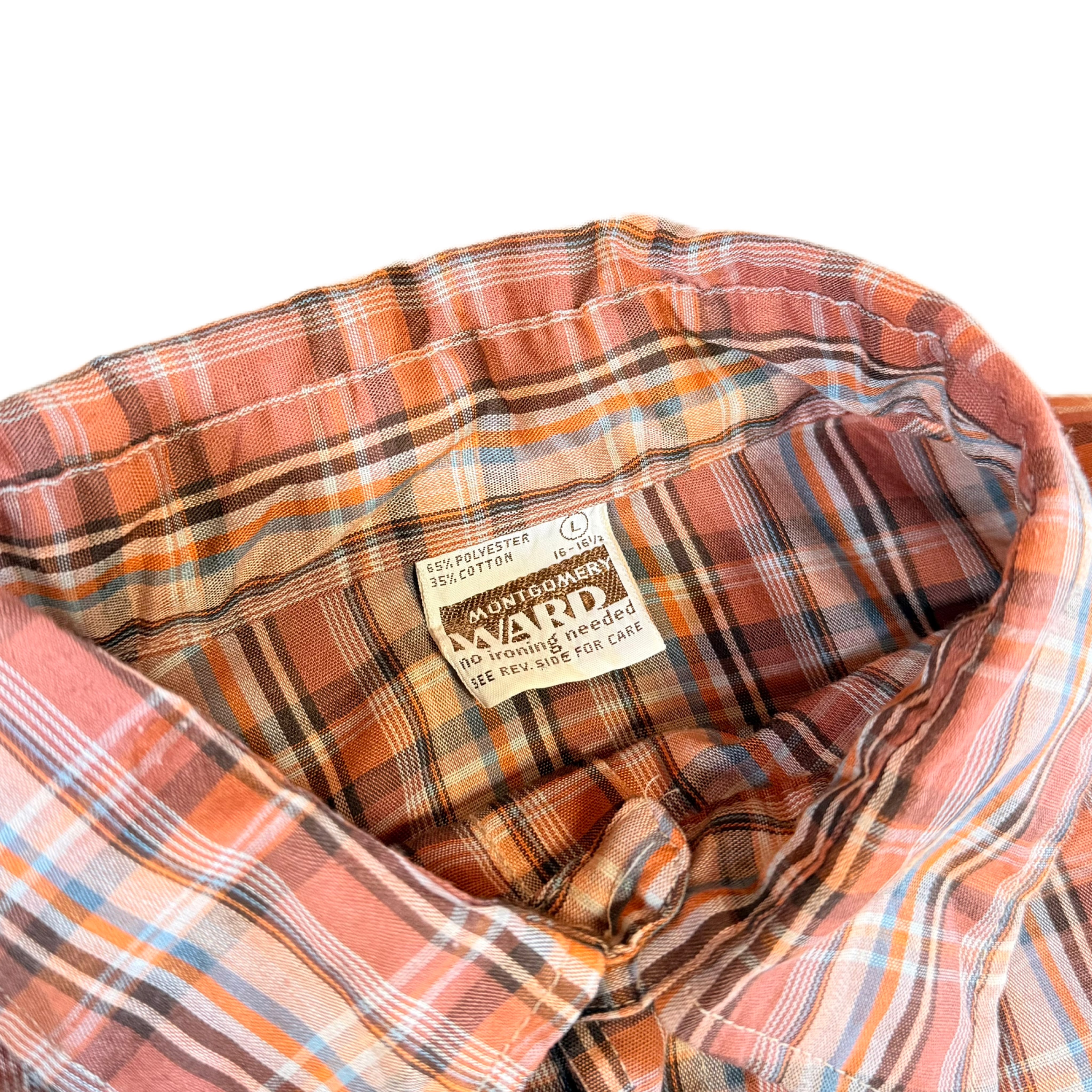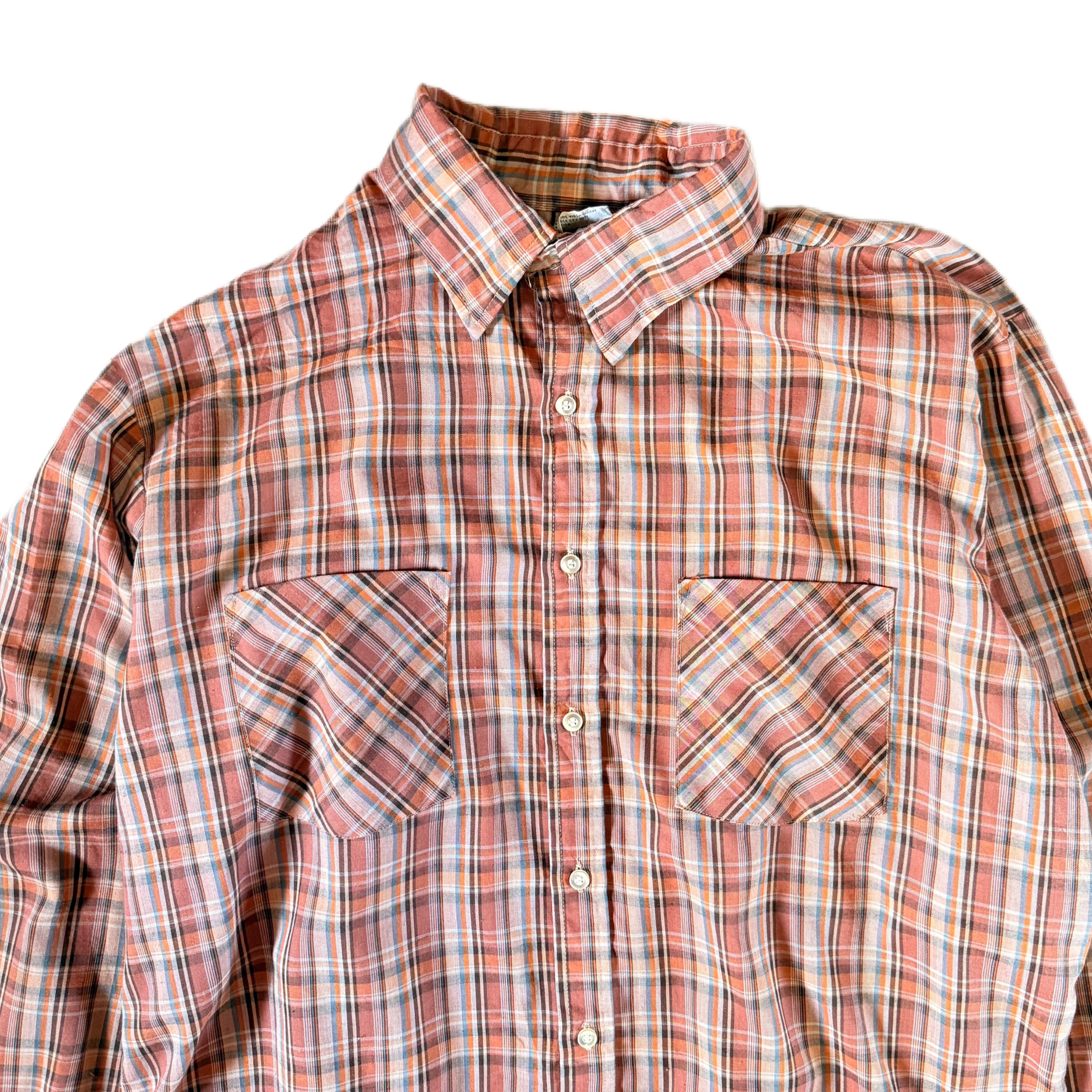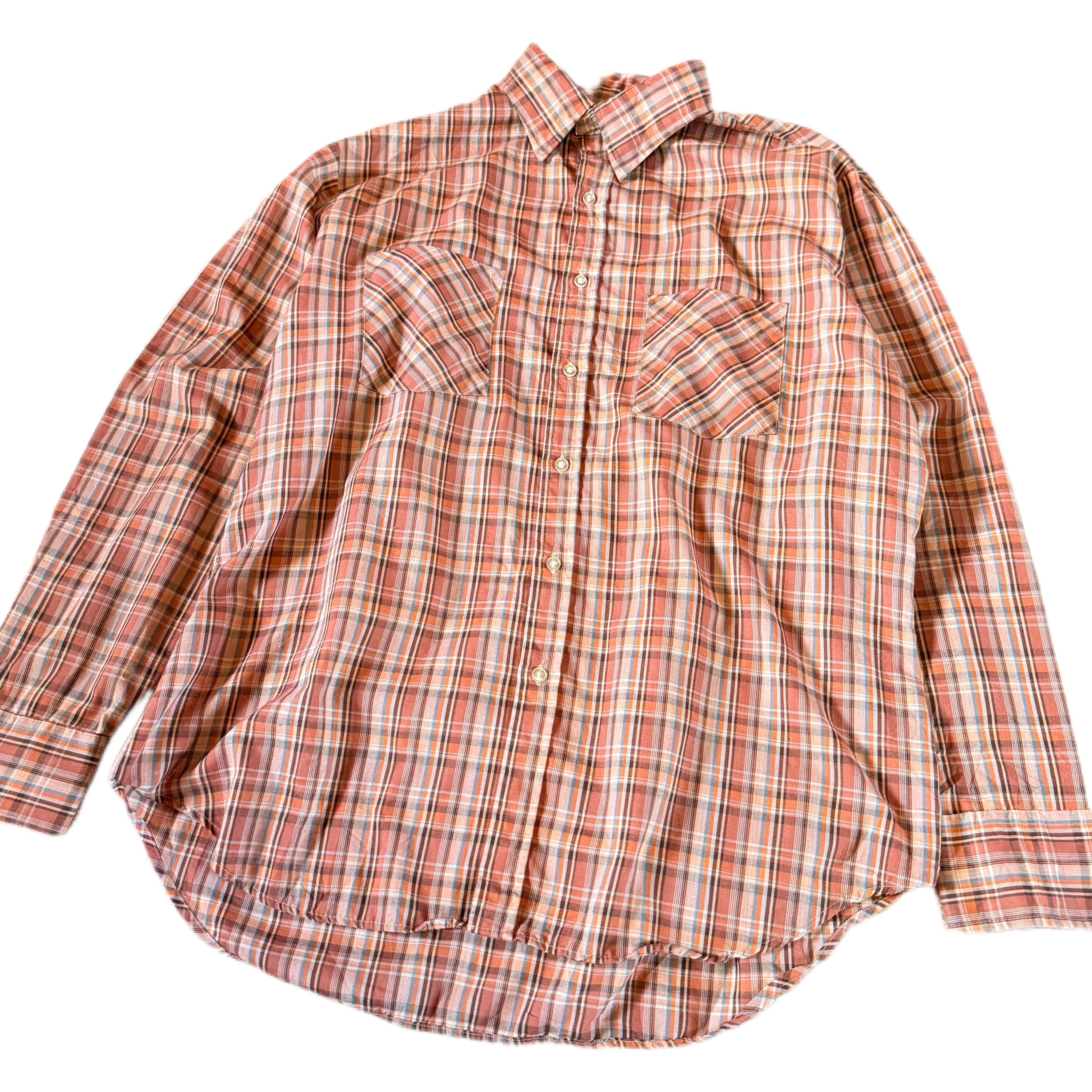 温かみのあるオレンジベースのチェックが目を引く、雰囲気の良い一着。
