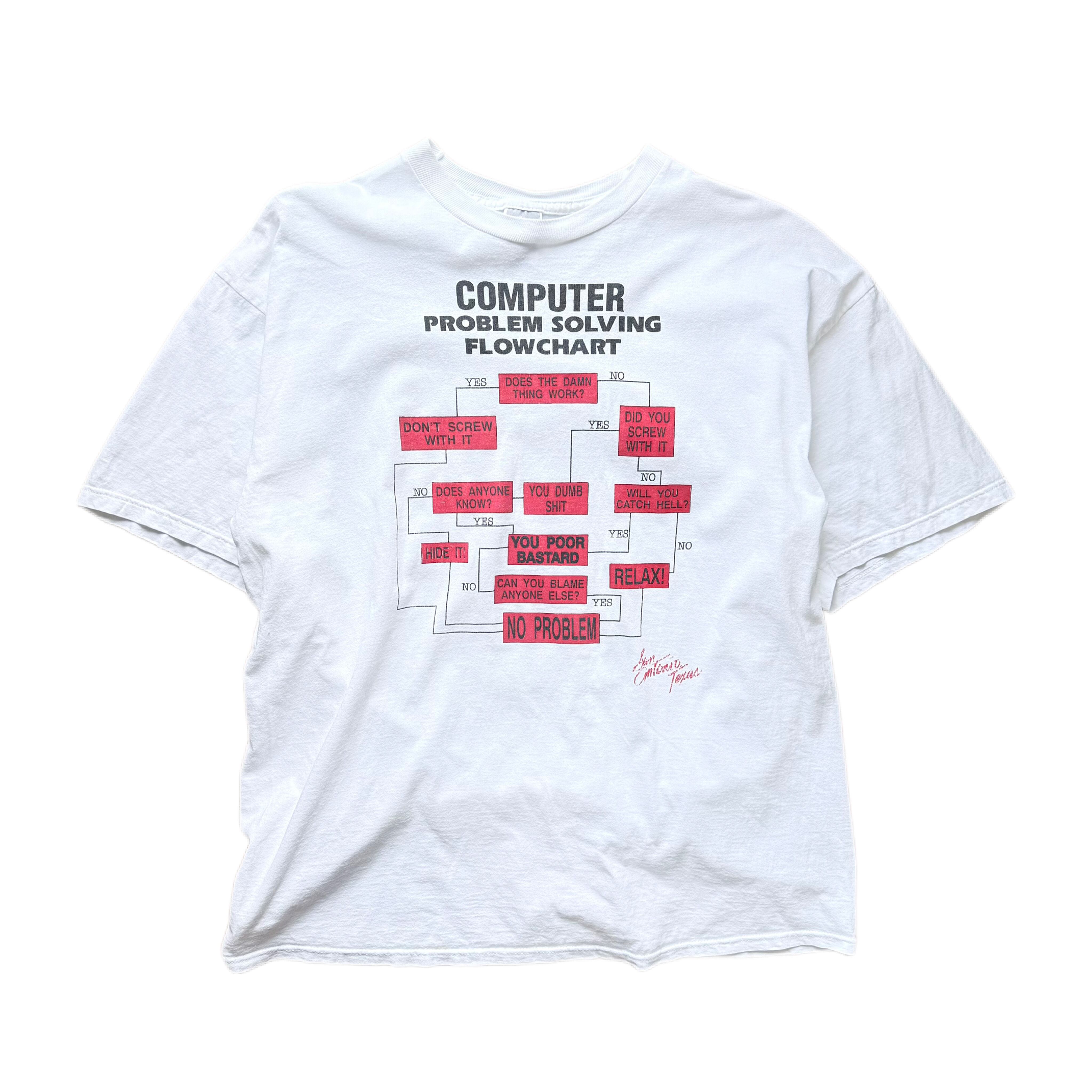 90s〜00s JERZEES “COMPUTER PROBLEM SOLVING FLOWCHART” T-shirt 【XL】