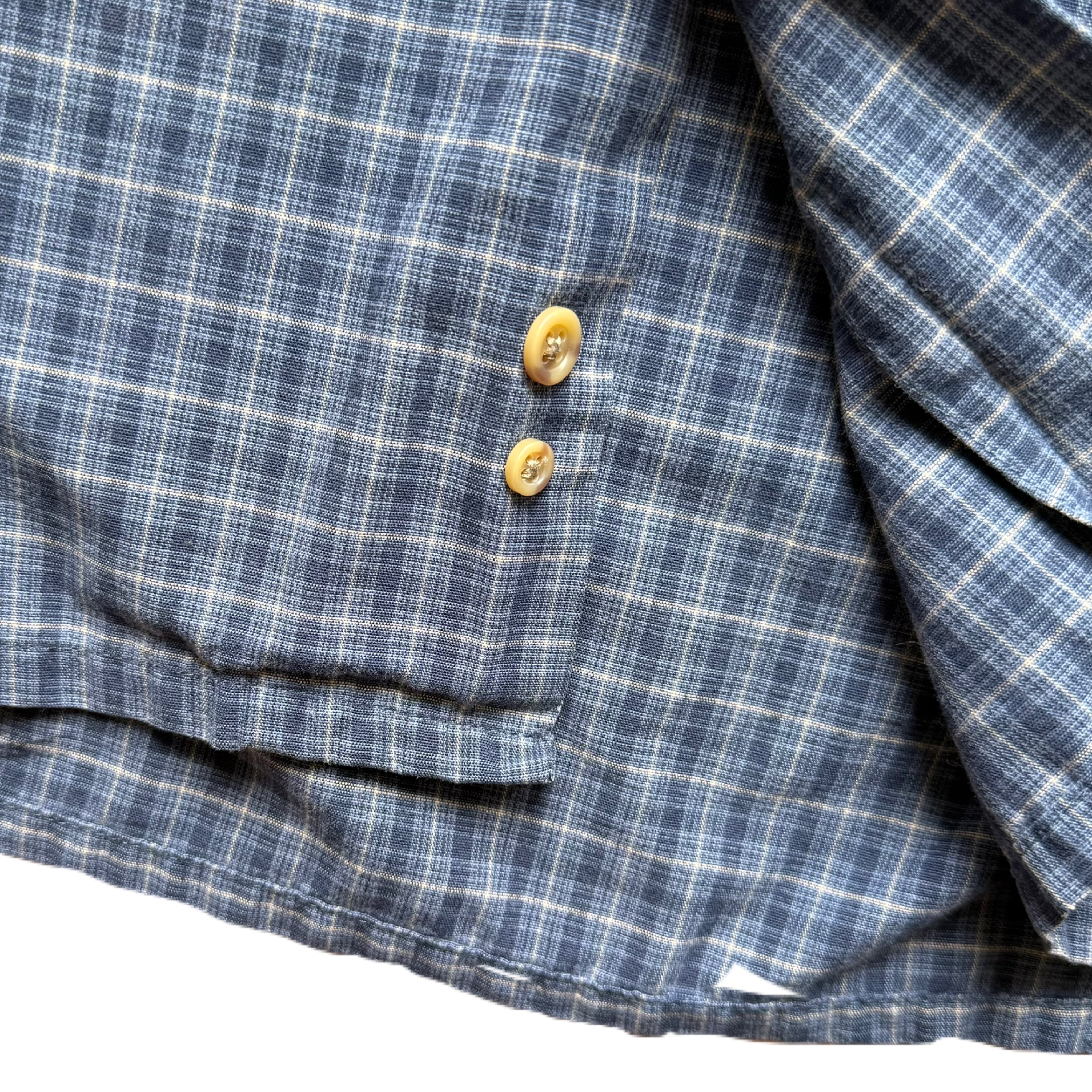 ブルー系の細かいチェックの配色も良く、主張しすぎずスタイリングに取り入れやすい一枚です。