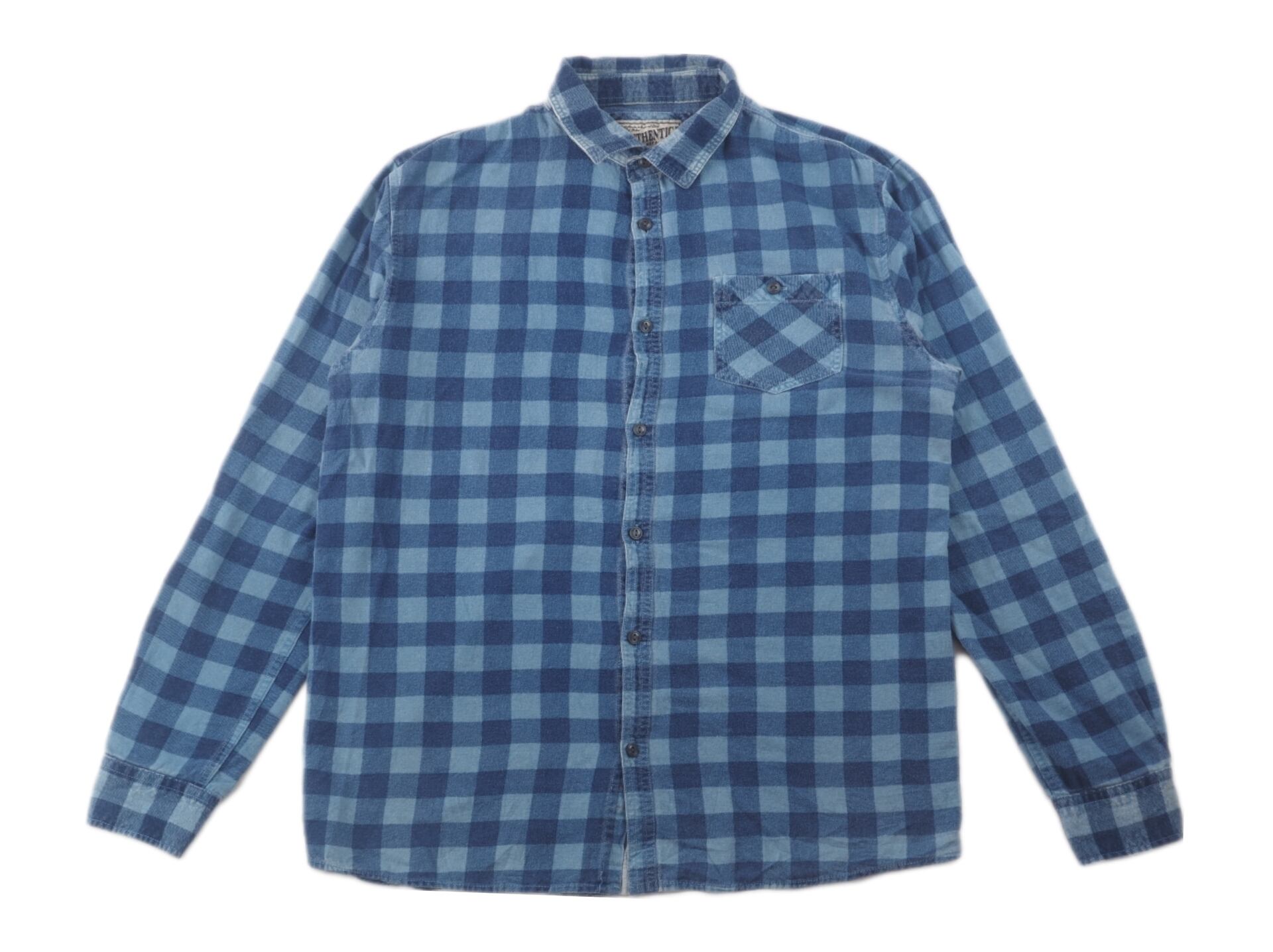 細かい青チェックのプリントネルシャツ。裾はボックスカットで、ヴィンテージライクな1着。プリントネルは洗えば洗うほど雰囲気が出て良いです。コットン素材で扱いやすく、肌触りも良いので、これからの時期におすすめのアイテムです。