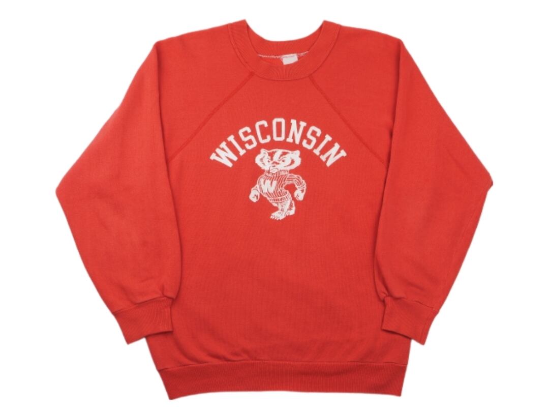 60年代のヴィンテージスウエットが入りました。人気の赤いボディにウィスコンシン州のプリントが施されており、その上には魅力的な虎のデザインが描かれています。ヴィンテージならではの良質な生地感と、フロッキープリントが特徴で、着心地も抜群です。おすすめの1着です。