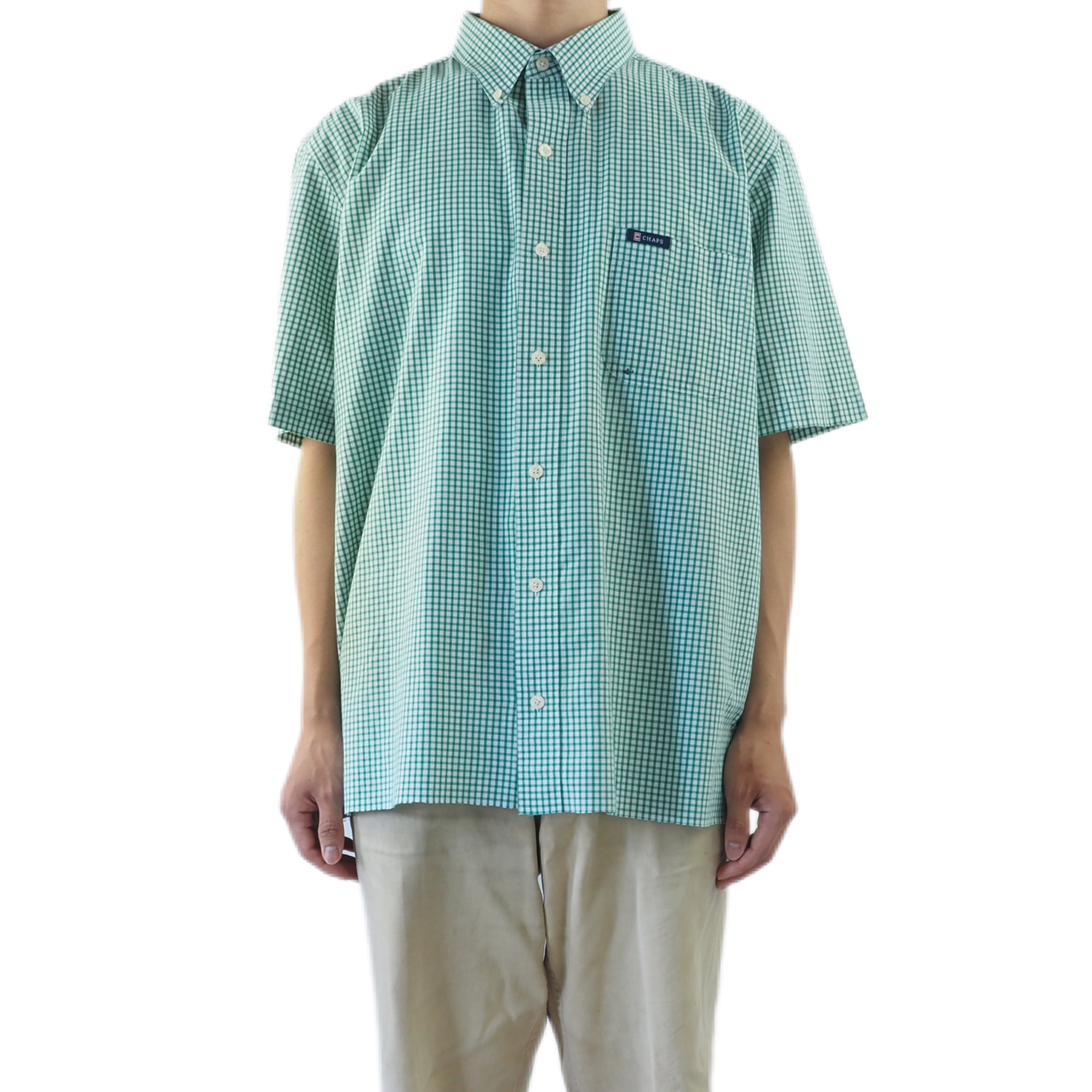 Chapsのチェック柄ボタンダウンシャツです。緑のチェック柄がグッドなデザインのシャツ。ラルフローレンの安価ラインとして登場したブランドで、本家よりも若干チープな感じですが、そこが逆に良い。カジュアルな雰囲気があって、程よい抜け感が出ます。前の所有者により、裾がカットオフになっており、良いボックスシルエットになっています。これを着て海外シティボーイになっちゃいましょう。