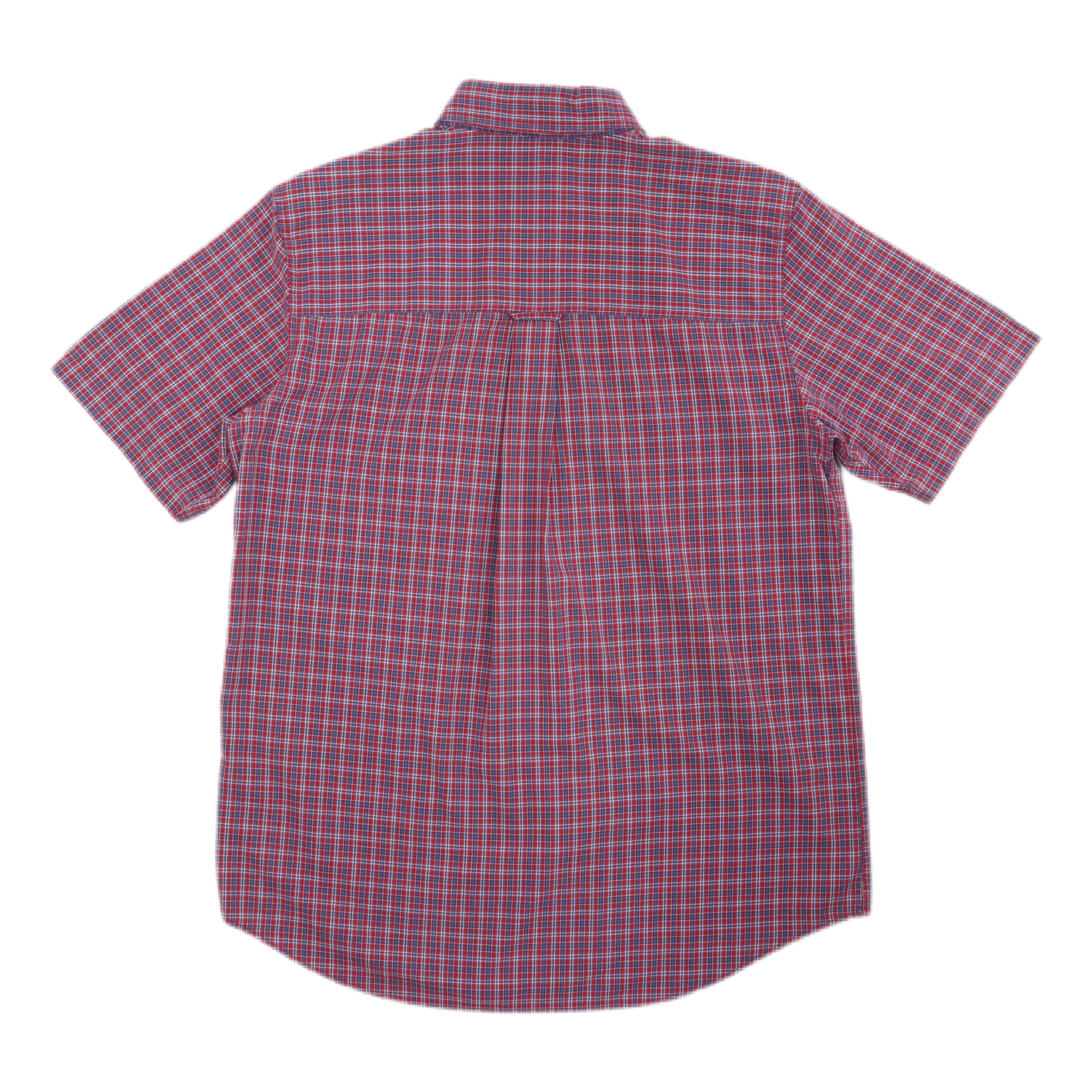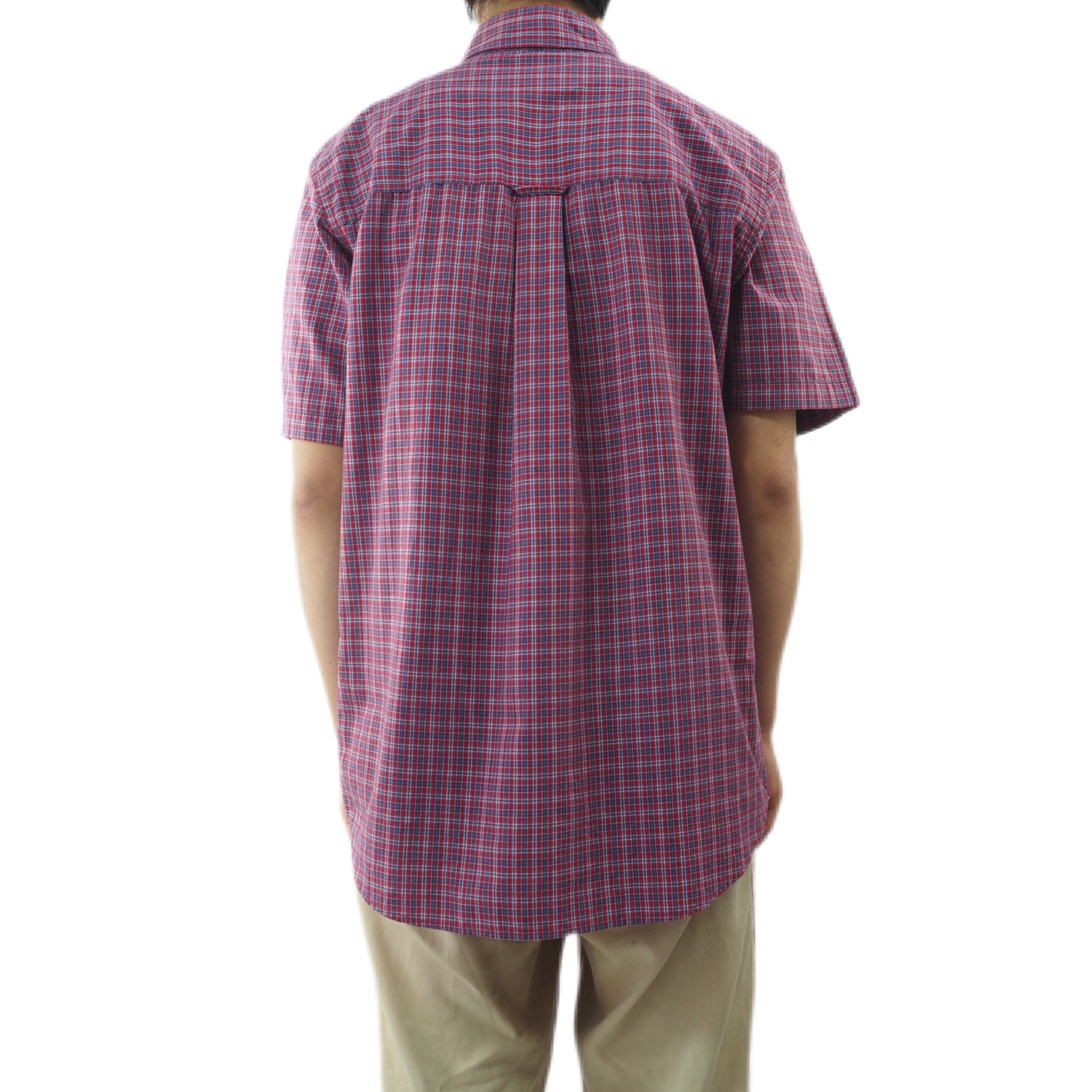 Chapsのチェック柄ボタンダウンシャツです。渋い赤と青のチェックがグッドなデザインのシャツ。ラルフローレンの安価ラインとして登場したブランドで、本家ラルフローレンのシャツよりもカジュアルな雰囲気があります。裾をカットオフにして海外ボーイ風にするのも良し、そのまま着ても、シャツインして着てもグッド。非常に使い勝手の良いシャツです。