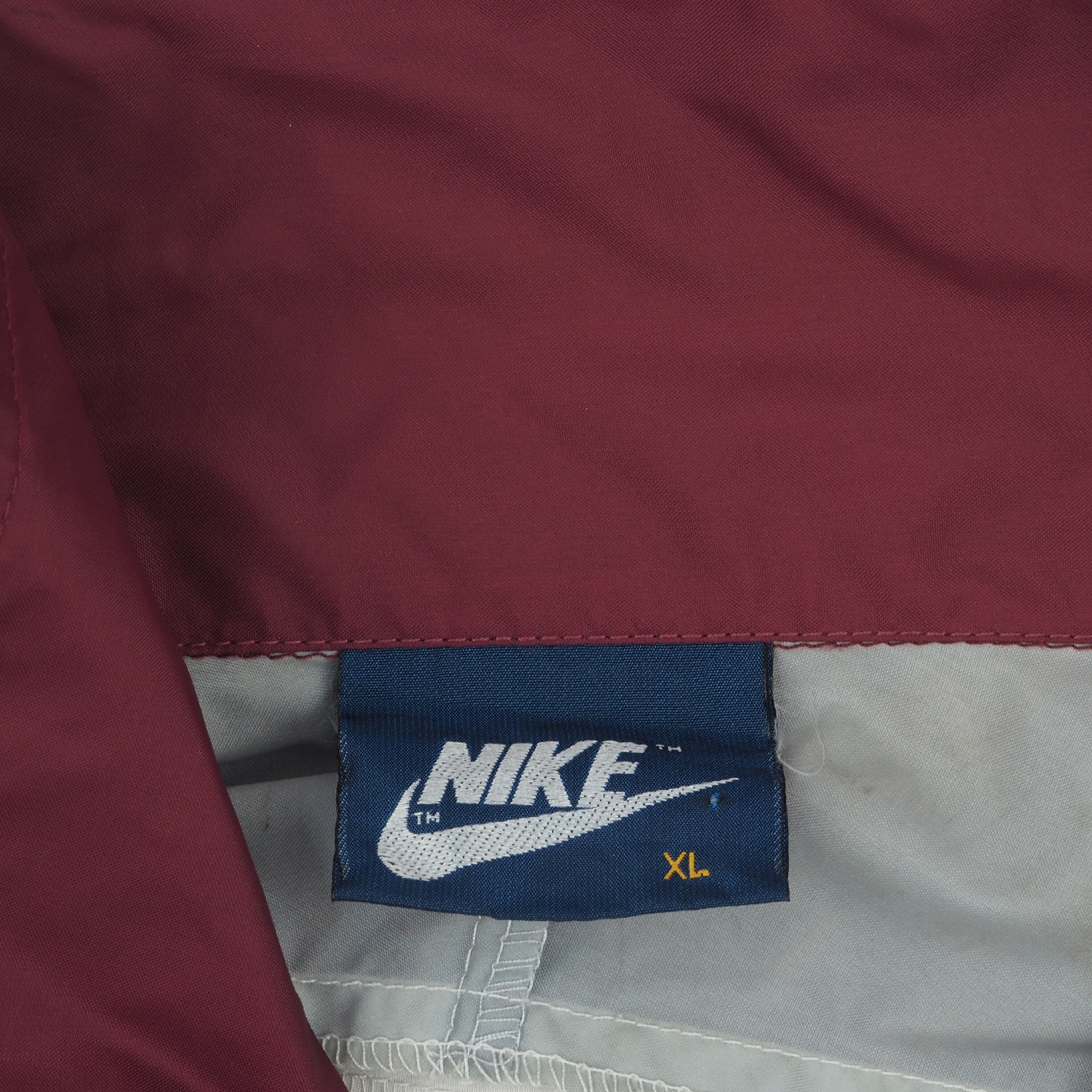 80年代NIKEのナイロンジャケットです。エンジの色合いがグッドなナイロンジャケット。胸のワンポイントのロゴと肩から腕にかけてのグレーのラインも良いデザイン。身幅広め、短丈のシルエットでジャストサイズで着ればスタイルがよく見えます。ハーフジップのタイプで、フロントにポケットというディテール。これからの時期に着用したいアイテムです。