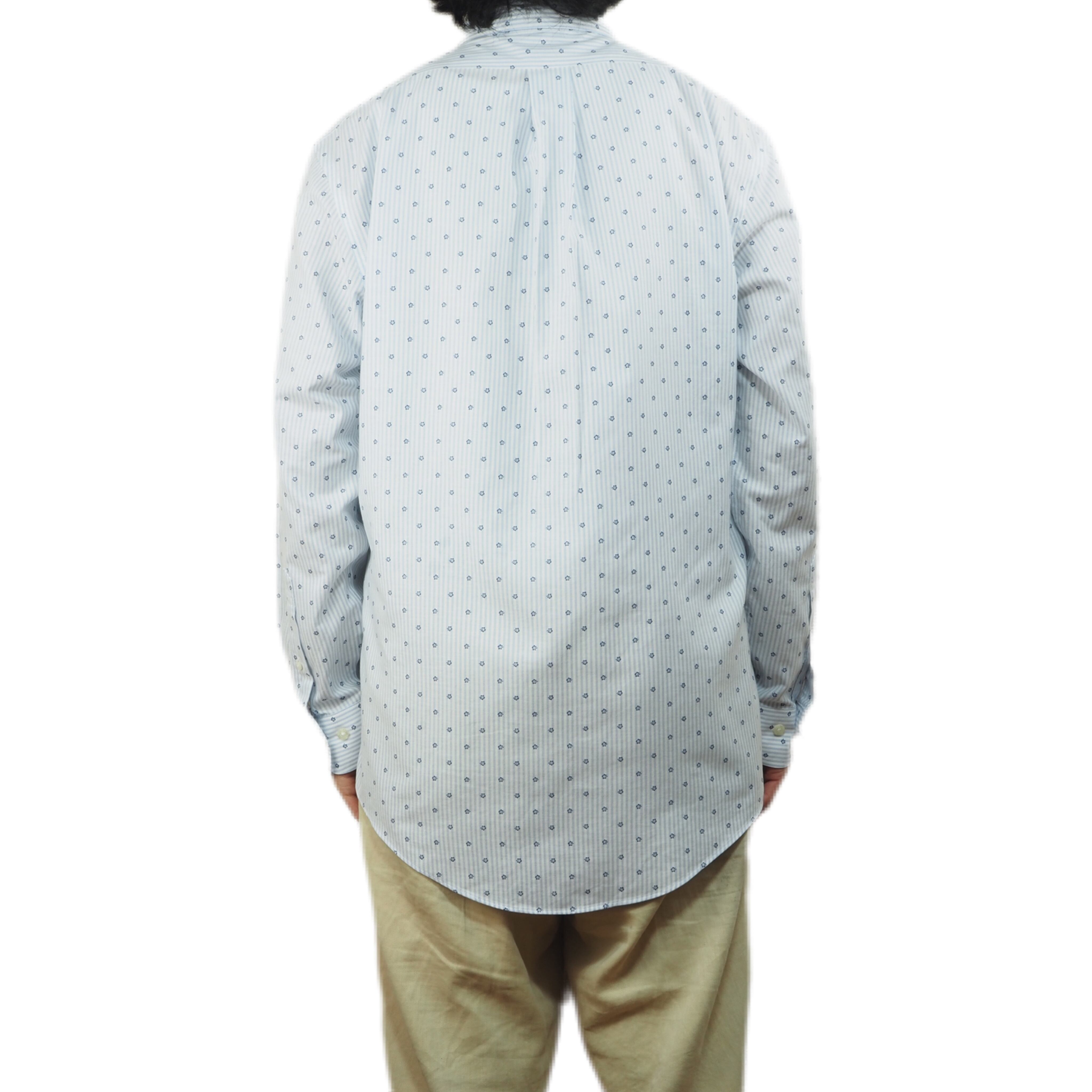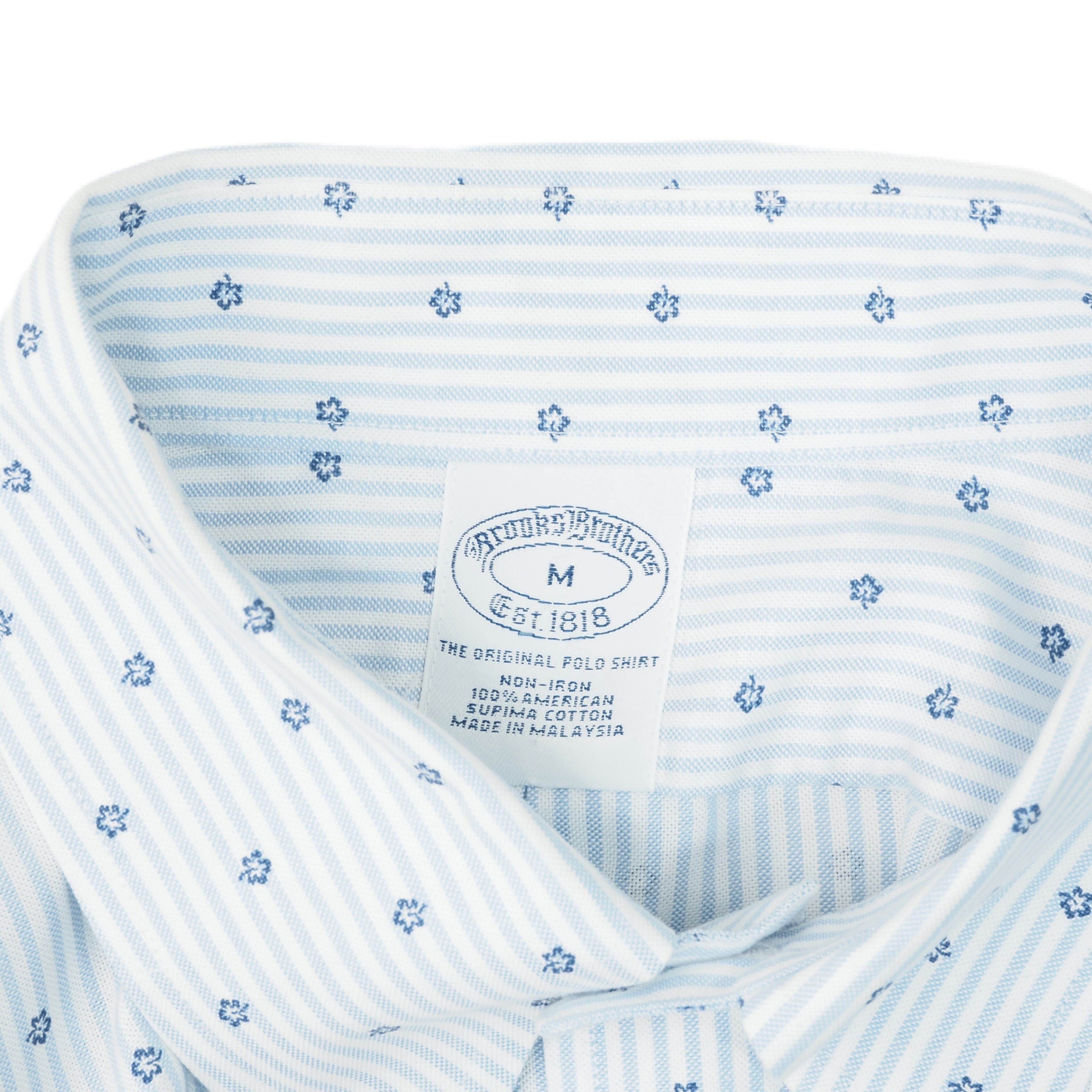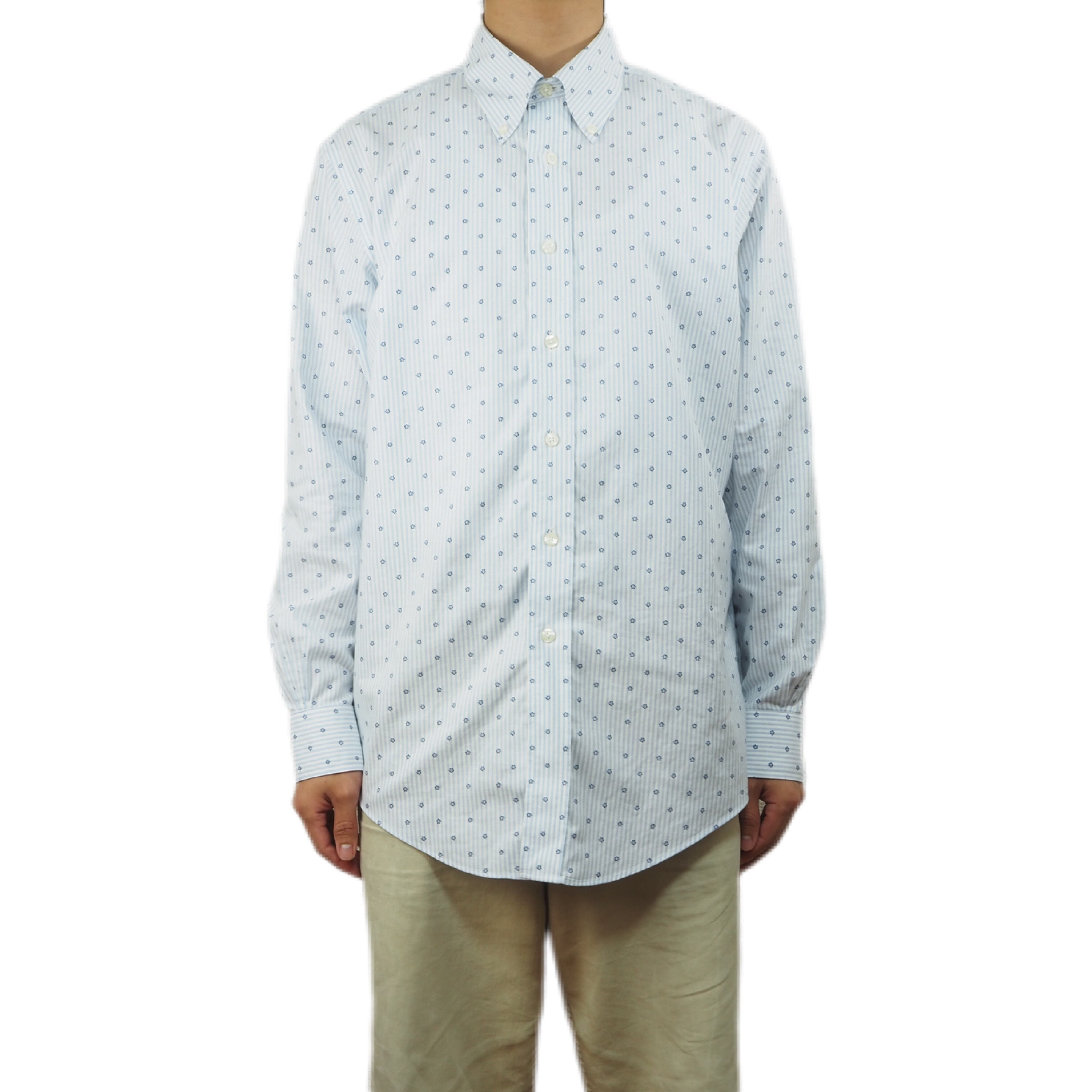 00年代ブルックスブラザーズのボタンダウンシャツ。花柄のパターンで淡いブルーのカラーリングが特徴的なシャツ。ファブリックはスーピマコットンで、タフで滑らかな生地感。普段Mサイズを着る人でジャストなサイズ感です。