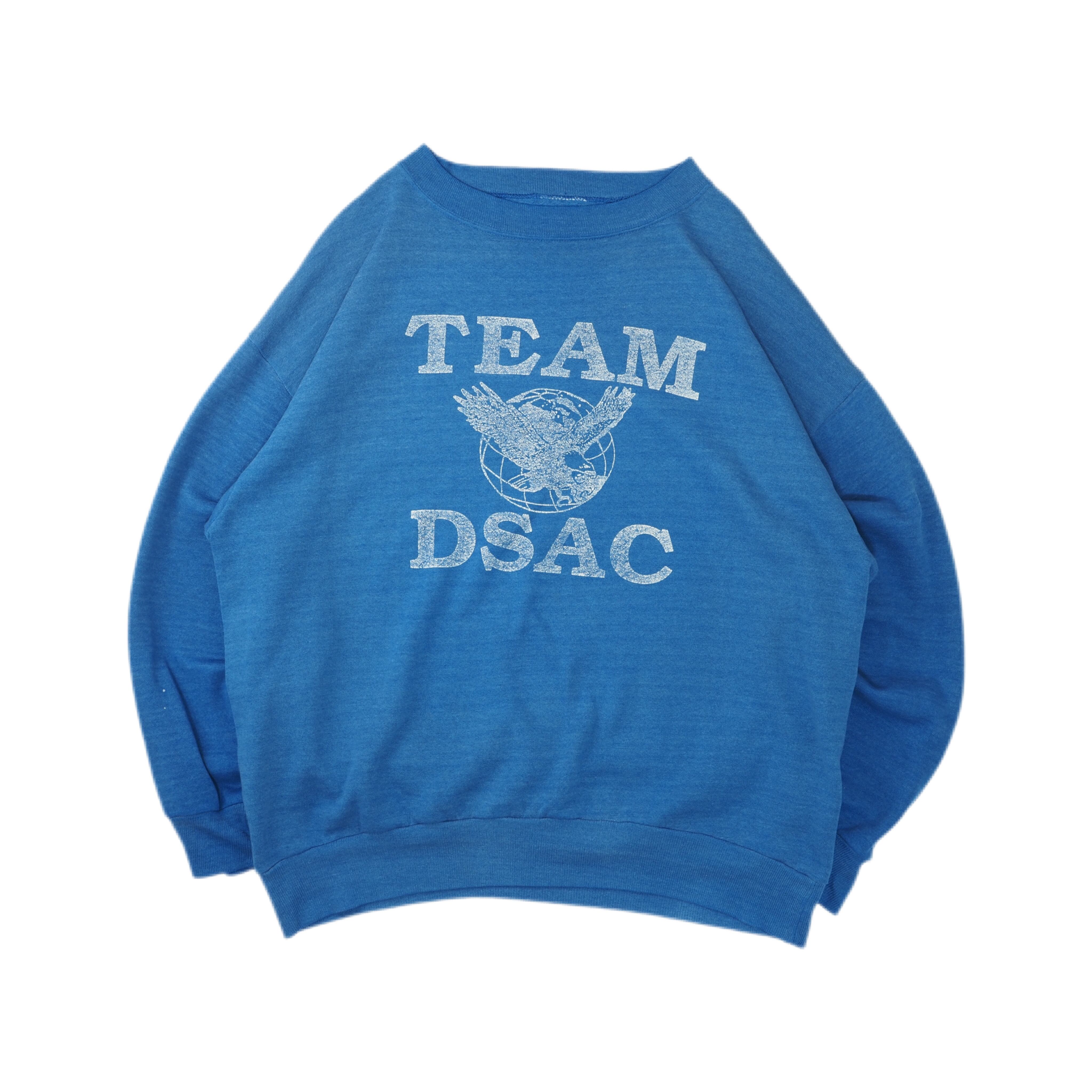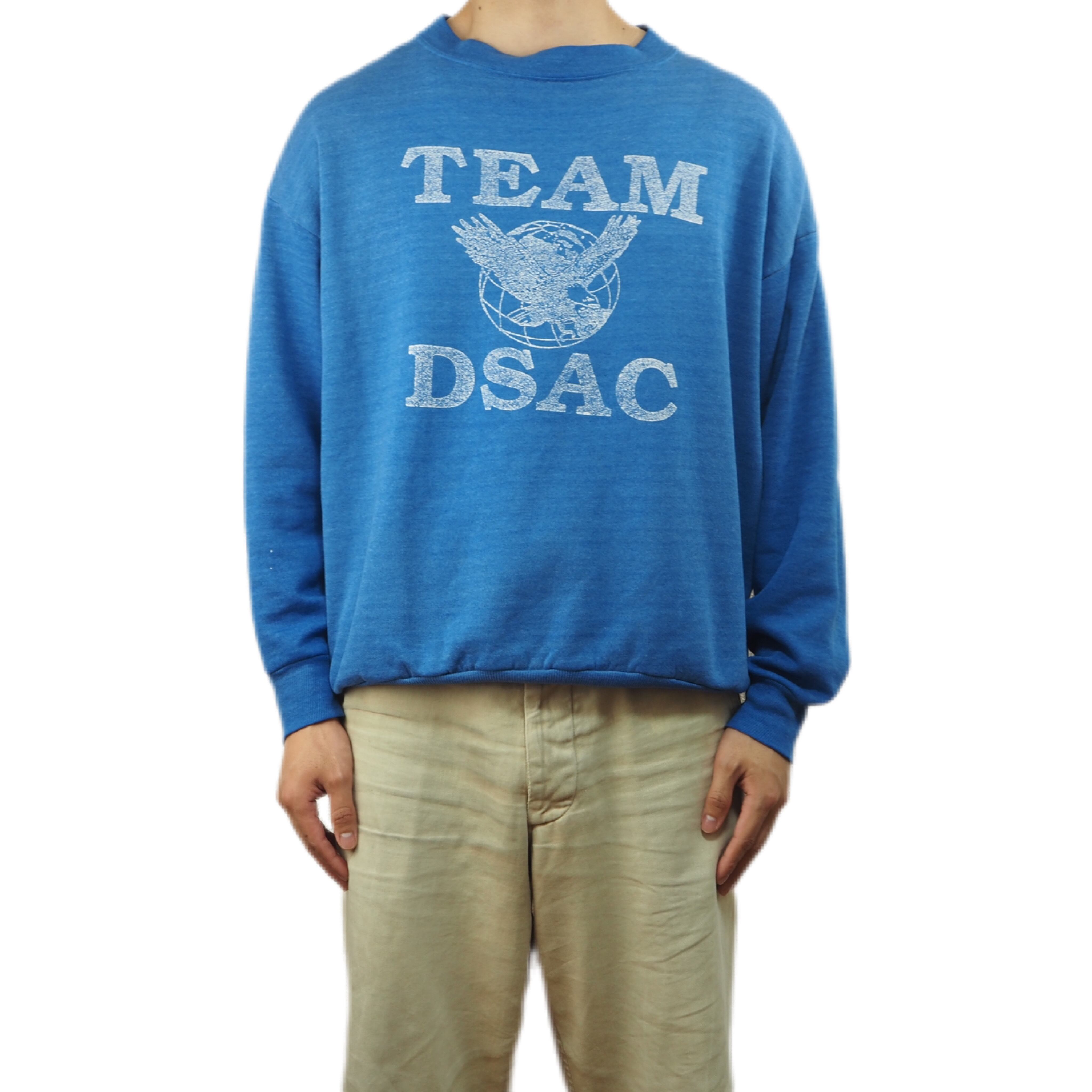 80年代のスウェット。このスウェットのやばいところといえば、スポーツチームのスウェットということ。ミリタリーやカレッジなどのプリントはよくありますが、スポーツチームものは見た事がありません。スウェットを着てスポーツをすることがないからです。私は初めて見ました。ファブリックはポリエステル混紡でしょうか、柔らかく軽い生地感。プリントはラバープリントで、雰囲気抜群のスウェット。シルエットはボックスシルエットで、サイズ的には普段Mサイズを着る自分でジャストという感じです。