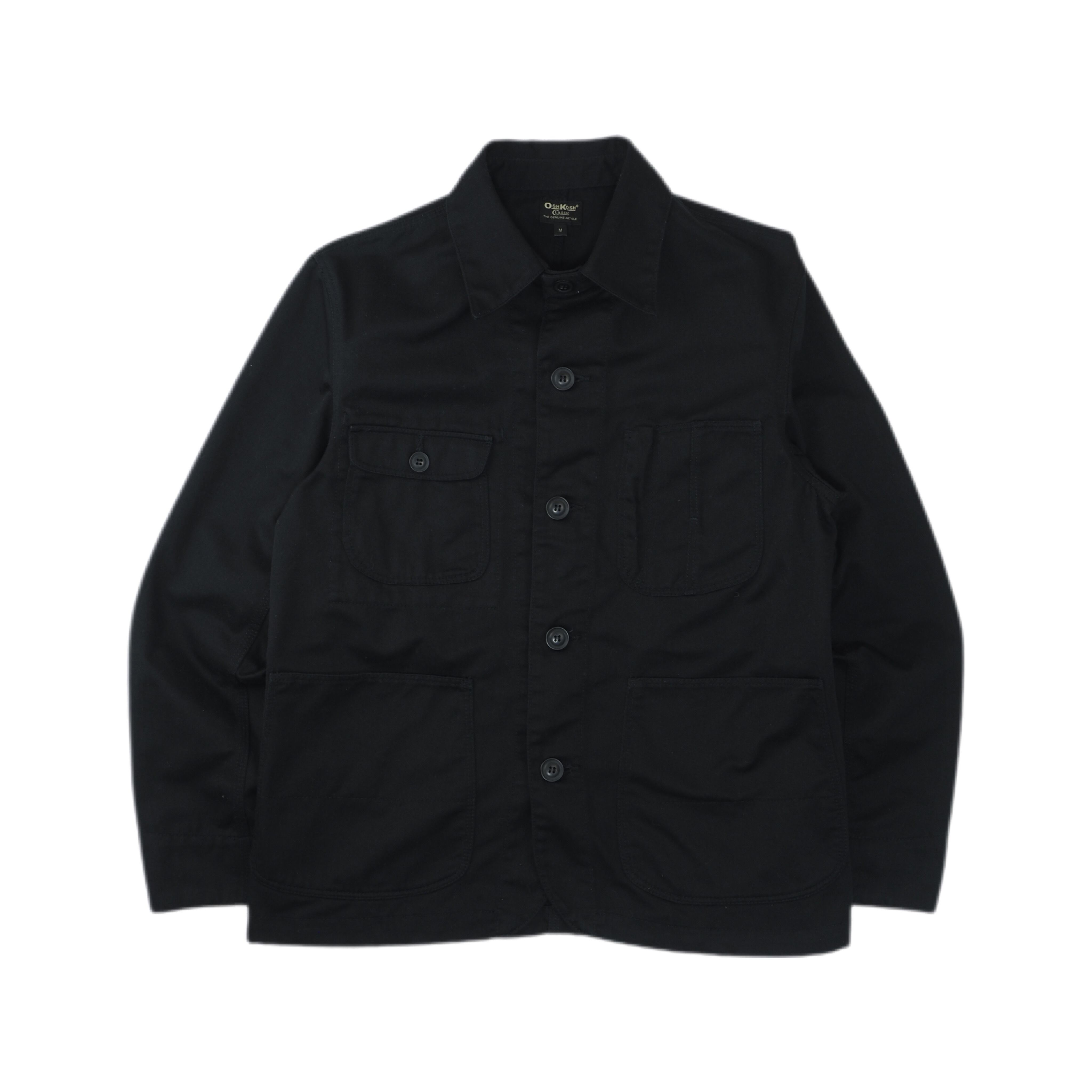 Oshkoshのワークジャケットです。特徴的なのは1920〜40年代のワークウェアに見られるガチャポケ仕様のポケット。カバーオールのようなディテールを備えつつ、シルエットはシャツに近く、スッキリしたデザインが魅力。ヴィンテージにはなかなかないブラックのカラーもポイントで、ワークウェアのような無骨さはなく、現代的なスタイルに取り入れやすい1着です。